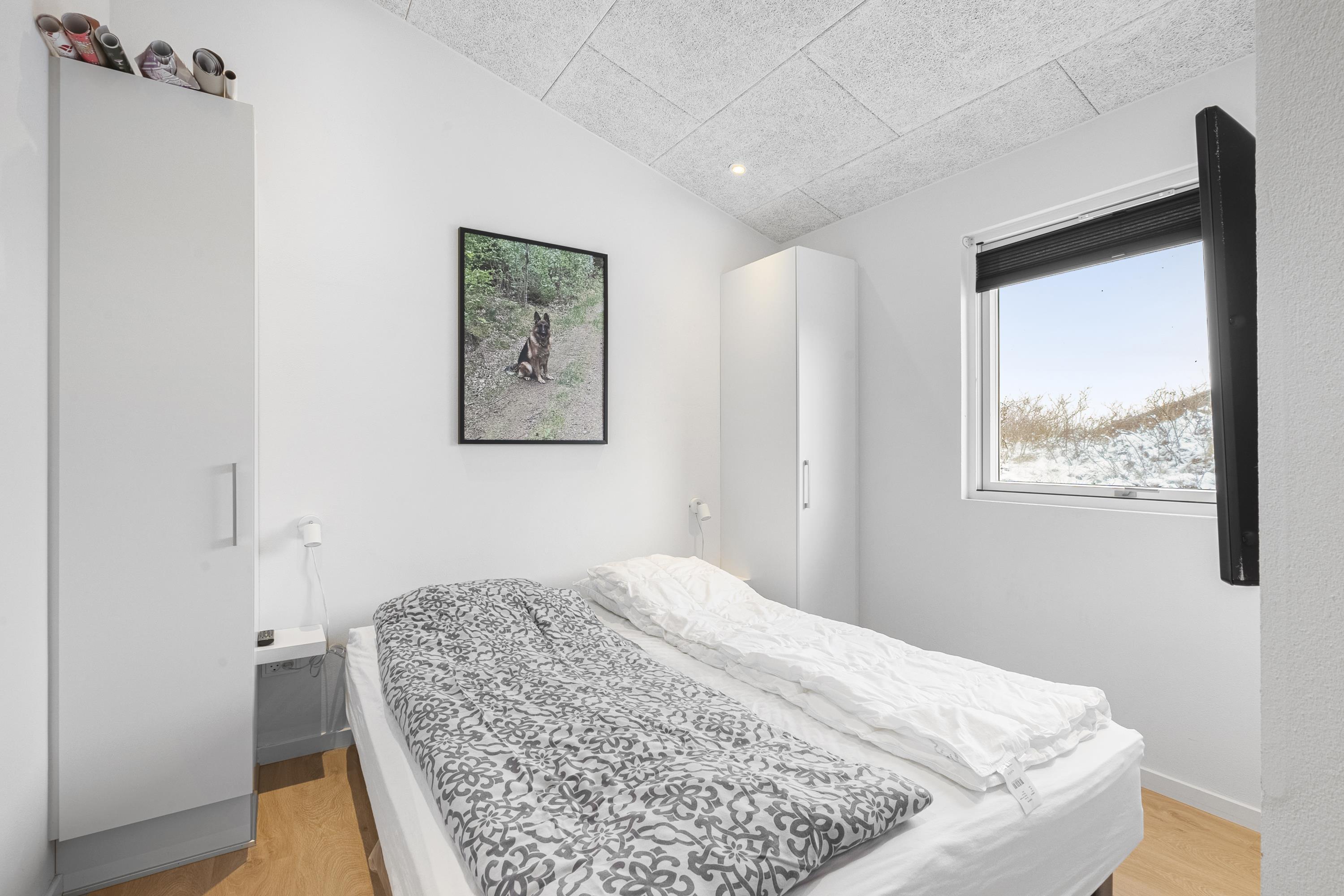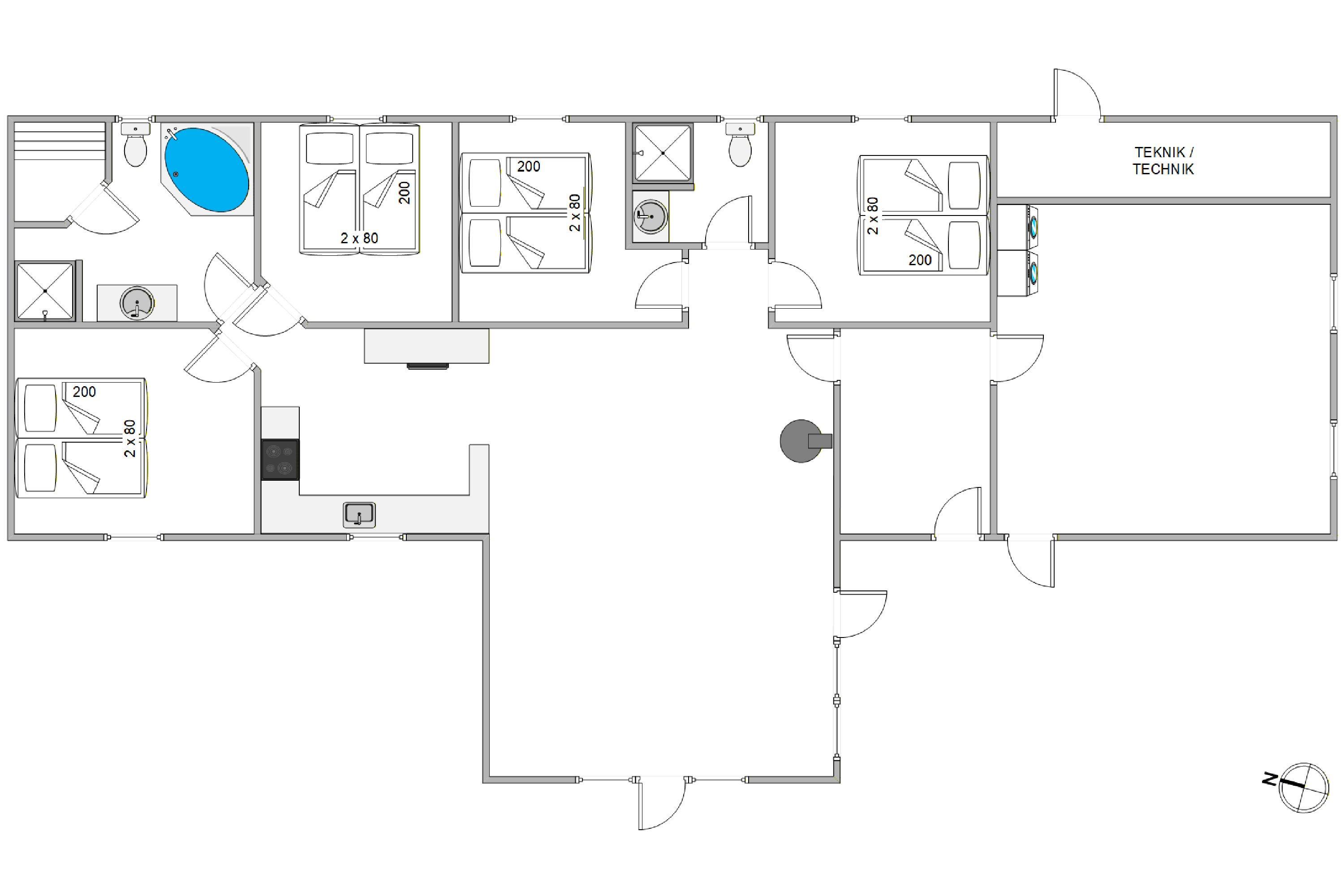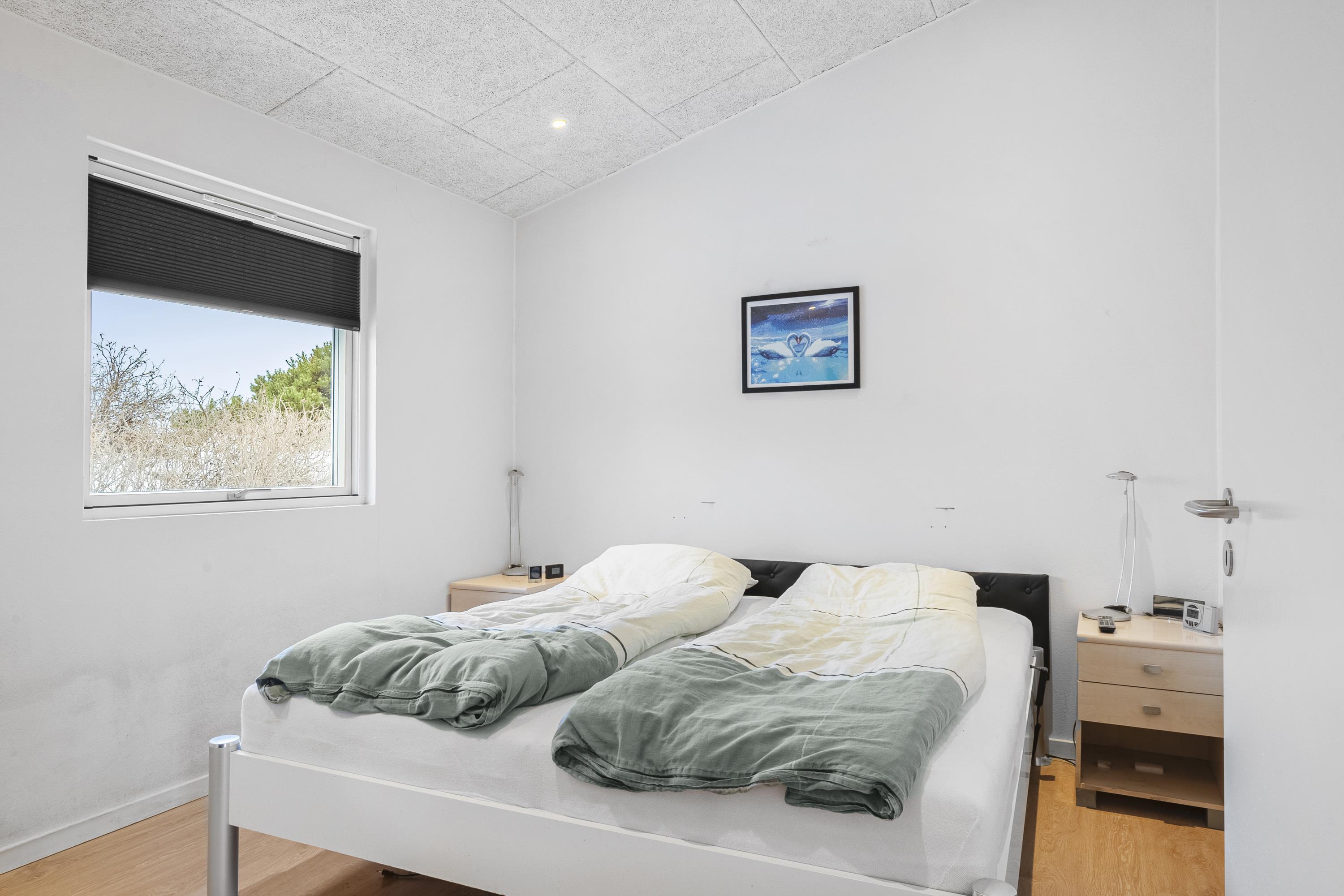 Sommerhuset er indrettet med 4 soveværelser og 8 enkeltsenge, så I nemt kan fordele jer, uanset om I rejser som 2 familier eller en større vennegruppe. Med 2 badeværelser undgår I kø om morgenen, og den gennemgående gulvvarme giver ekstra komfort på kølige dage. 1 af badeværelserne er udstyret med både sauna og tømmespa, så I kan slappe af og forkæle jer selv efter en dag fuld af aktiviteter. En luft-til-vand-varmepumpe sikrer et behageligt indeklima, og når aftenen falder på, kan I tænde op i brændeovnen og skabe den klassiske sommerhusstemning med varme og hygge.