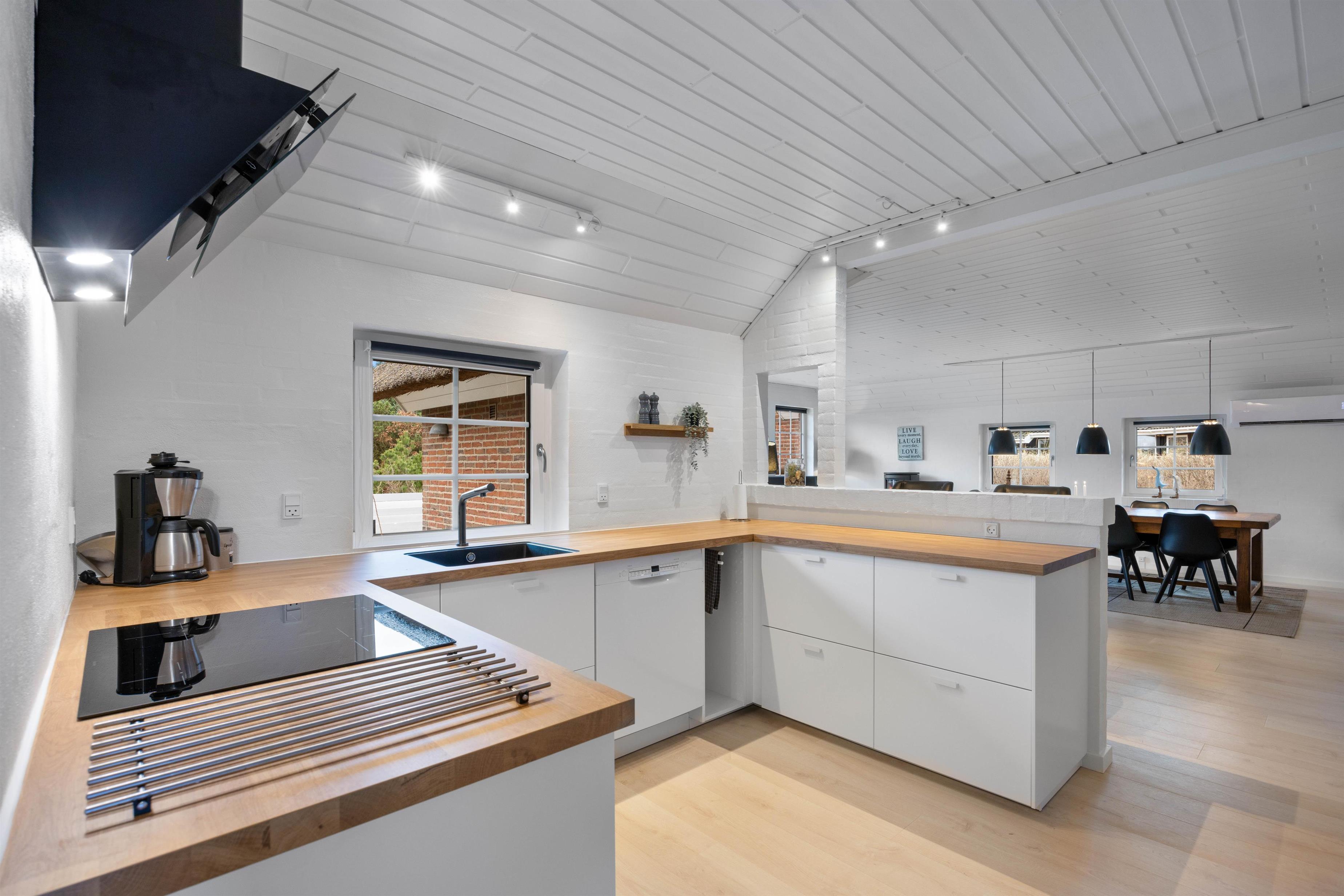 Det veludstyret køkken hvor der plads til at samles om madlavningen, ligger i åben forbindelse med det store opholdsrum, der også er smagfuldt indrettet med bløde møbler og et godt stort spisebord. Her er der plads til at være sammen om en god middag. Hvis I dog får brug for at trække jer og være for jer selv, er der også plads til dette, eftersom Sommerhuset er godt indrettet med fire, lyse soveerum og et dejligt der ligger op til masser af afslapning og velvære.