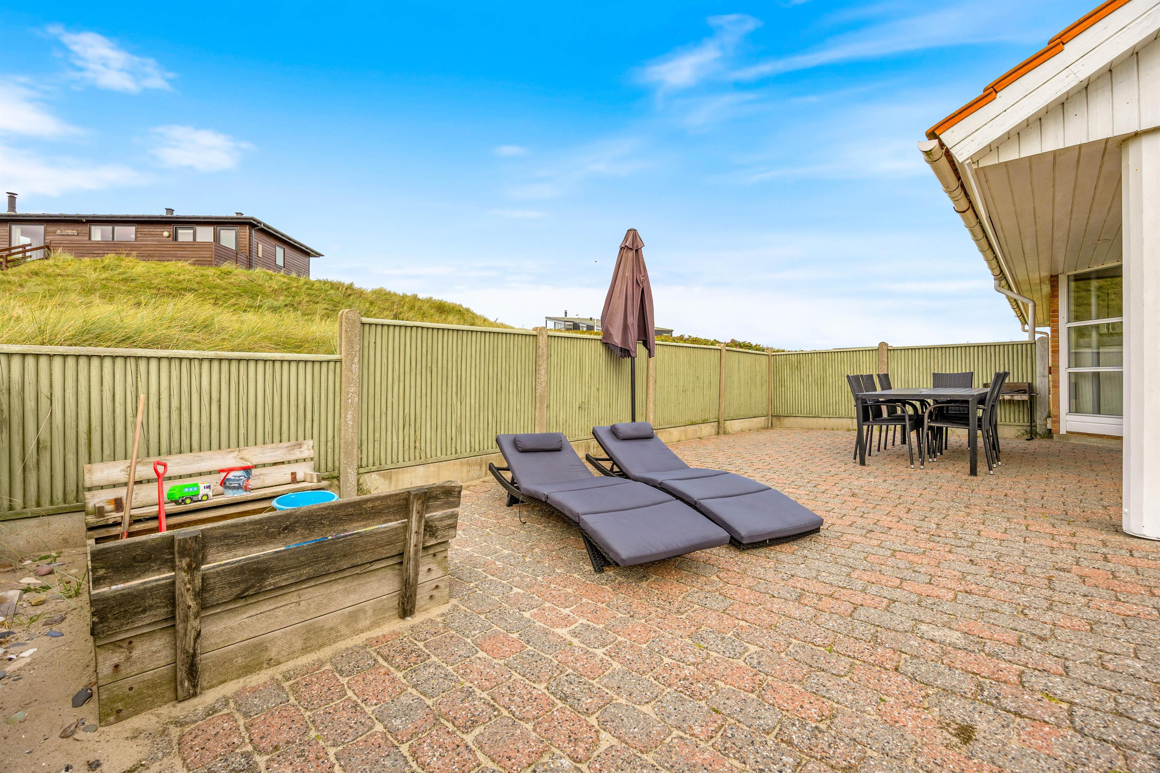 Huset har en stor, delvist afskærmet terrasse hvor man bare kan nyde duften af Vesterhavet, som kun ligger 150 meter væk. Udeområdet indbyder til masser af sjov og afslapning. En afskærmet terrasse komplet med grill og havemøbler venter på jer, så I kan nyde de varme sommeraftener under åben himmel. Børnene vil elske sandkassen på den naturlige grund, og hvis I har søde firbenede familiemedlemmer, er de også velkomne - dog er maksimalt to husdyr tilladt.