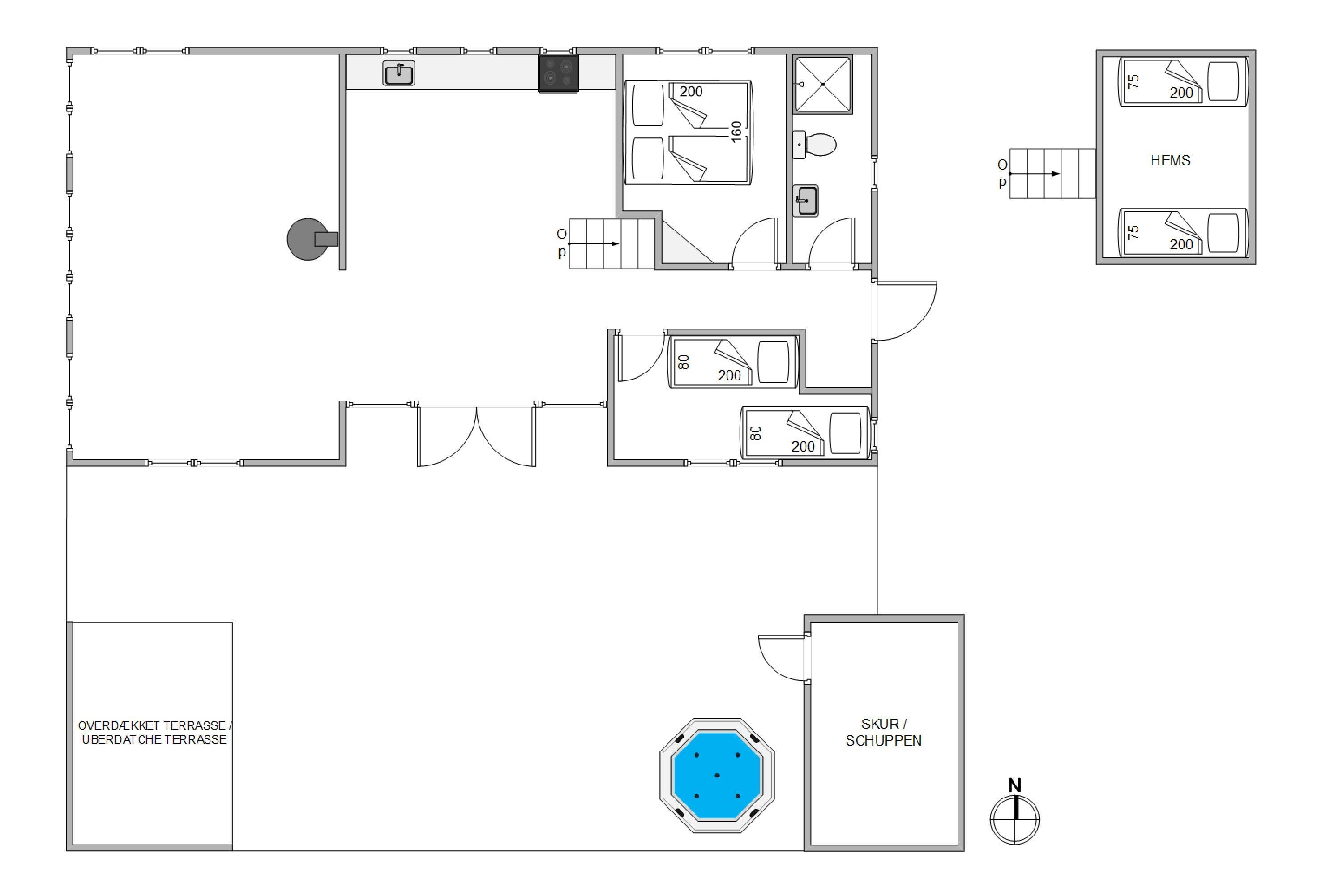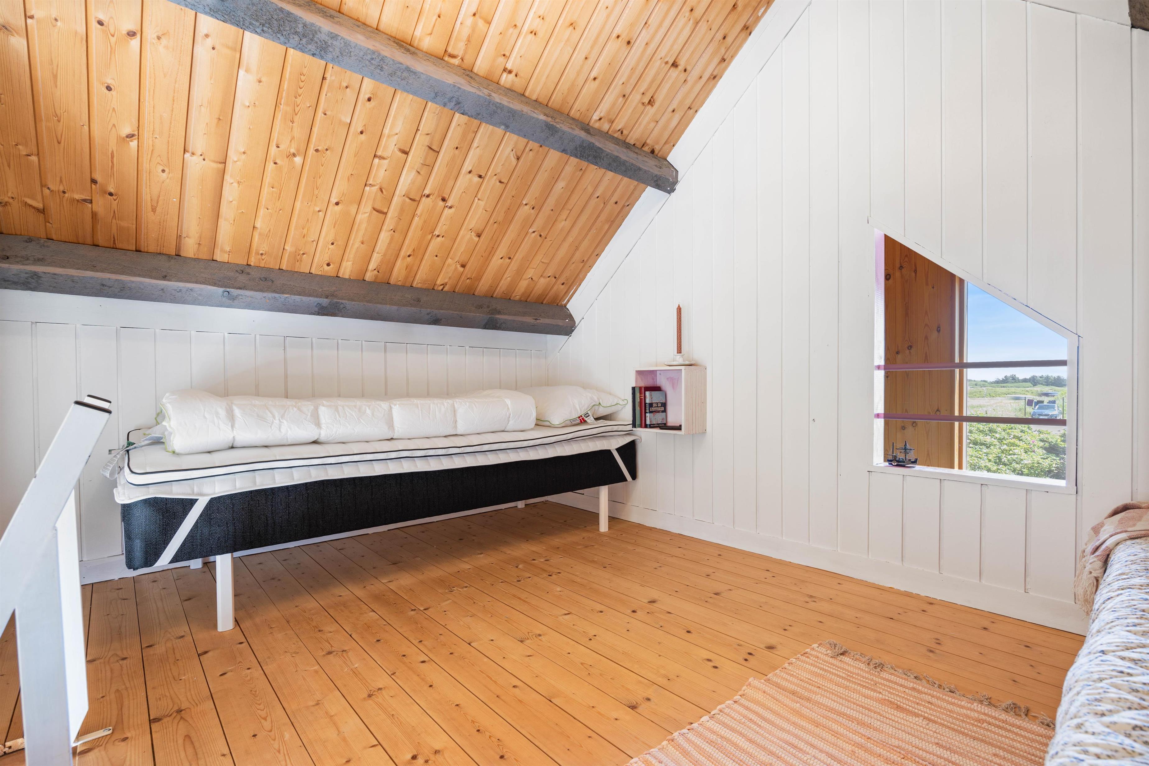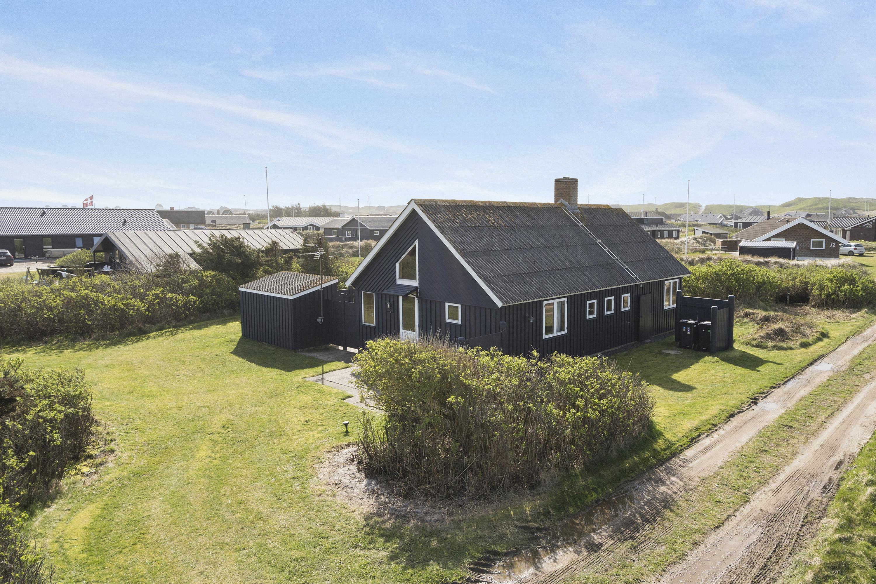 Det 76 m2 store sommerhus har plads til op til seks personer og et kæledyr. De store vinduer sørger ikke kun for et godt lysindfald, men giver jer samtidigt en skøn udsigt til klitterne. I kan derfor roligt sætte jer til rettet i stueområdet, hvor I sammen kan nyde roen og slappe helt af. Det er også i stueområdet, hvor I finder husets brændeovn, der altid garanterer følelsen af varme og hygge. Sæt jer godt til rette foran brændeovnens knitrende flammer og nyde roen. Slut dagen af foran tv'et eller med en sjov spilleaften. Huset indeholder i alt to soveværelser, hvoraf det ene er med en dobbeltseng og det andet med to enkeltsenge. Derudover finder I to sovepladser på hemsen, hvor der samtidig er fuld ståhøjde. Desuden har I hele sommerhuset adgang til gratis og hurtigt fiber-internet.