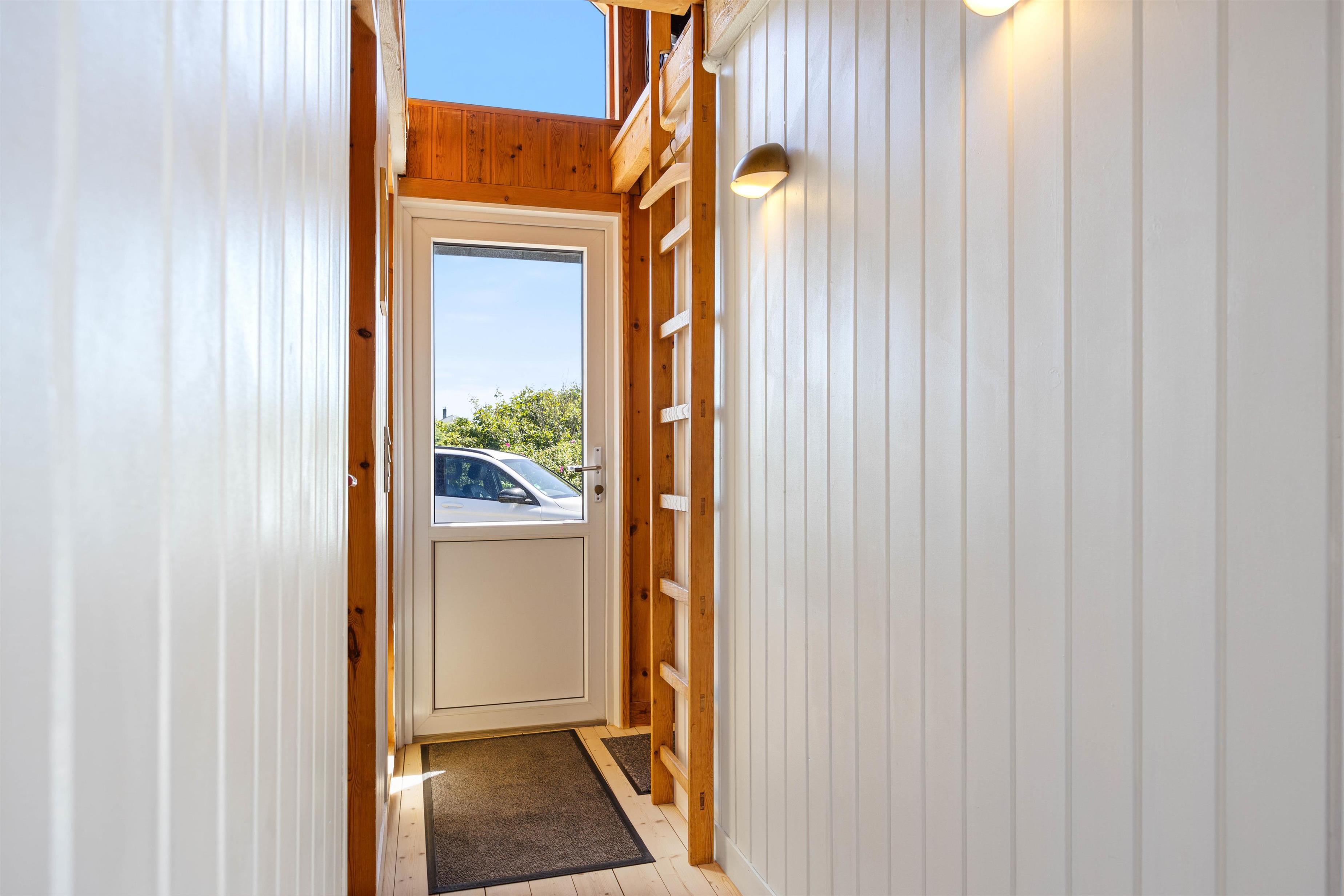 Sommerhuset på Sand Holms Vej 16 har en fantastisk beliggenhed. Sommerhuset befinder sig på en lukket sidevej, hvor naturen er lige uden for døren og det brusende Vesterhav næsten lige i baghaven. Sommerhuset er især velegnet til den lille familie der ønsker sig en afslappende familieferie. I alt er der plads til 6 personer, og så er der et enkelt husdyr tilladt. Feriehuset på Sand Holms Vej 16 har en smuk græsklædt grund, der er perfekt til leg eller kvalitetstid med familien. Den ene af de to terrasser er indhegnet hele vejen rundt hvilket giver god afskærmning og masser af privatliv.