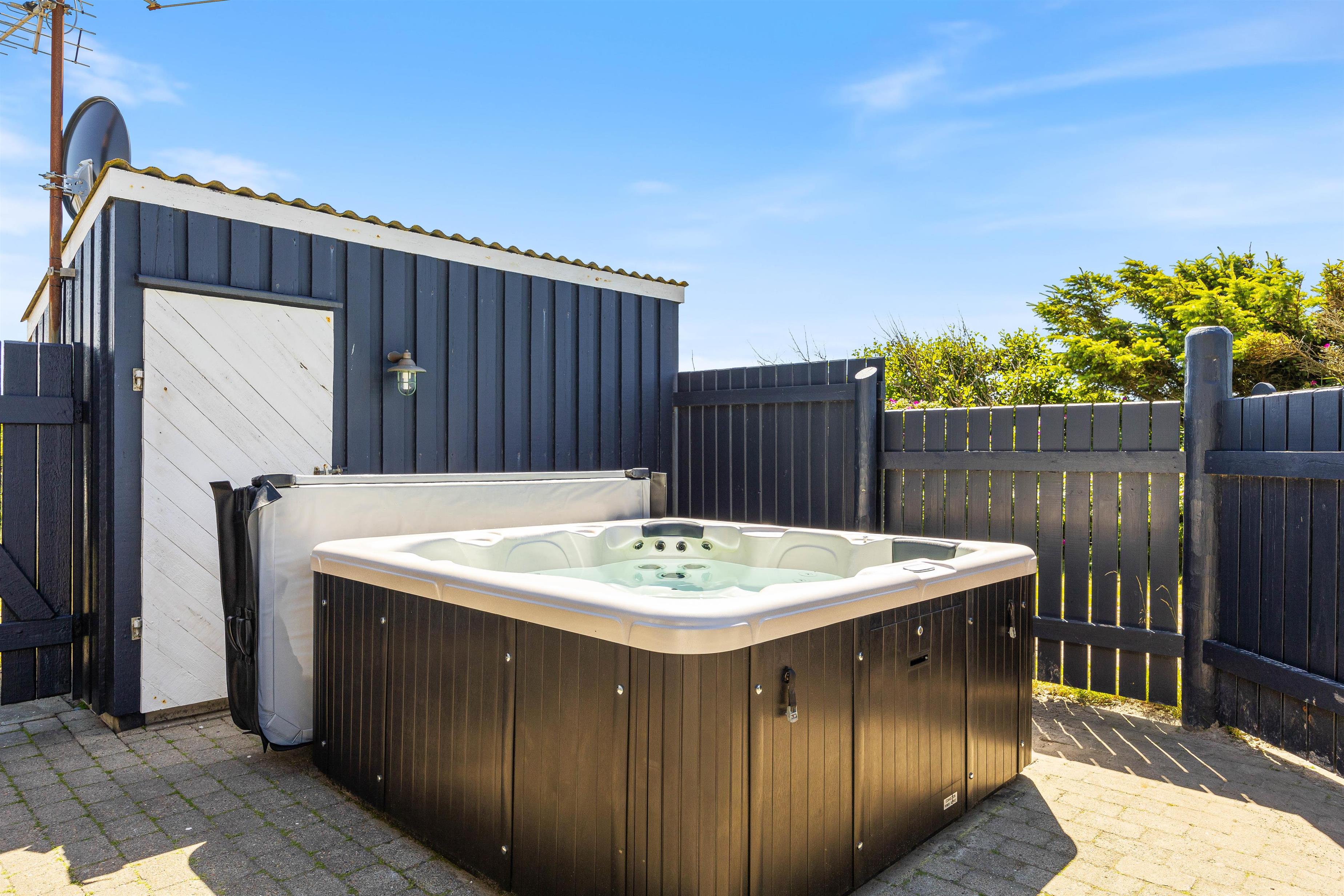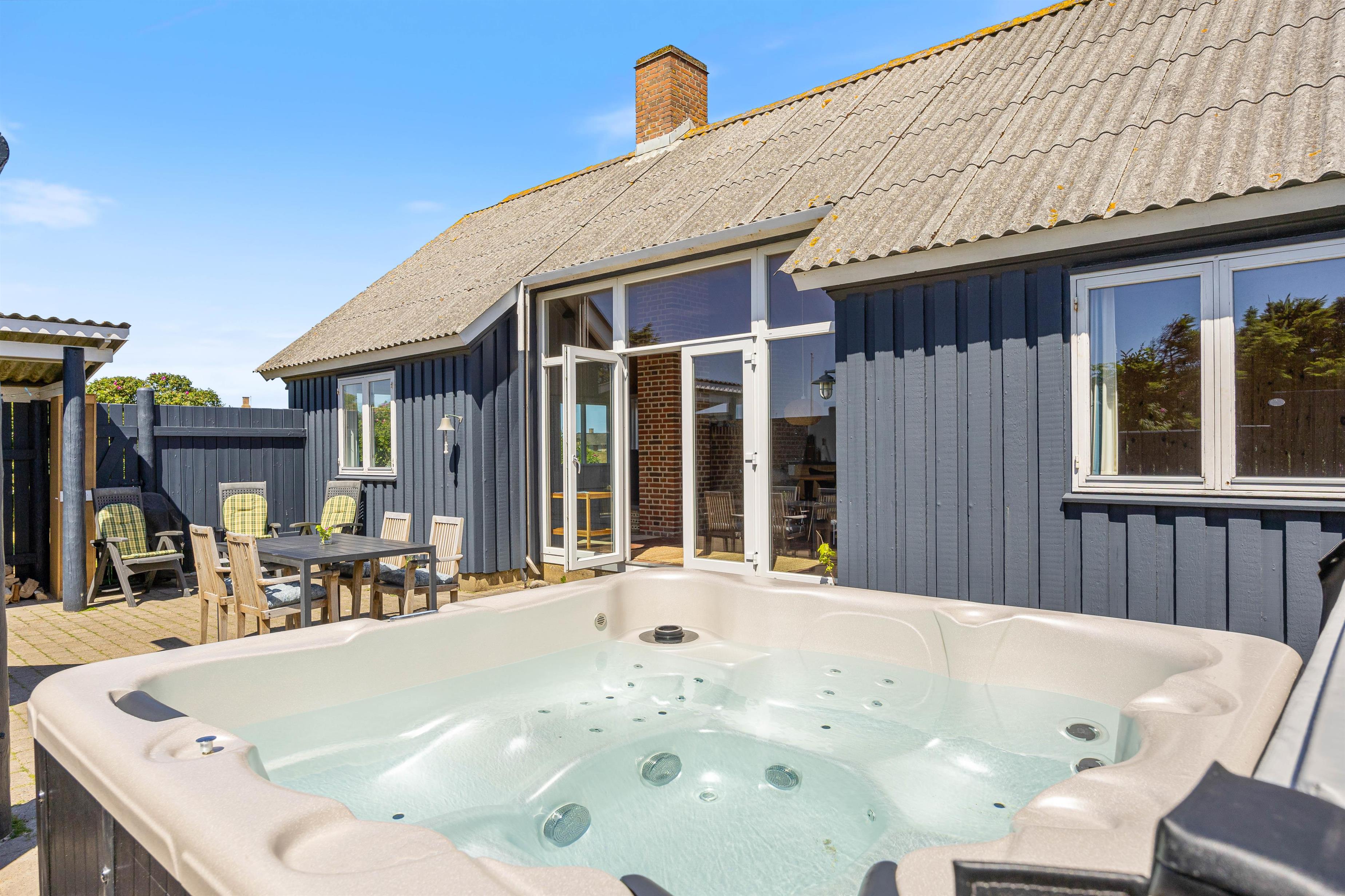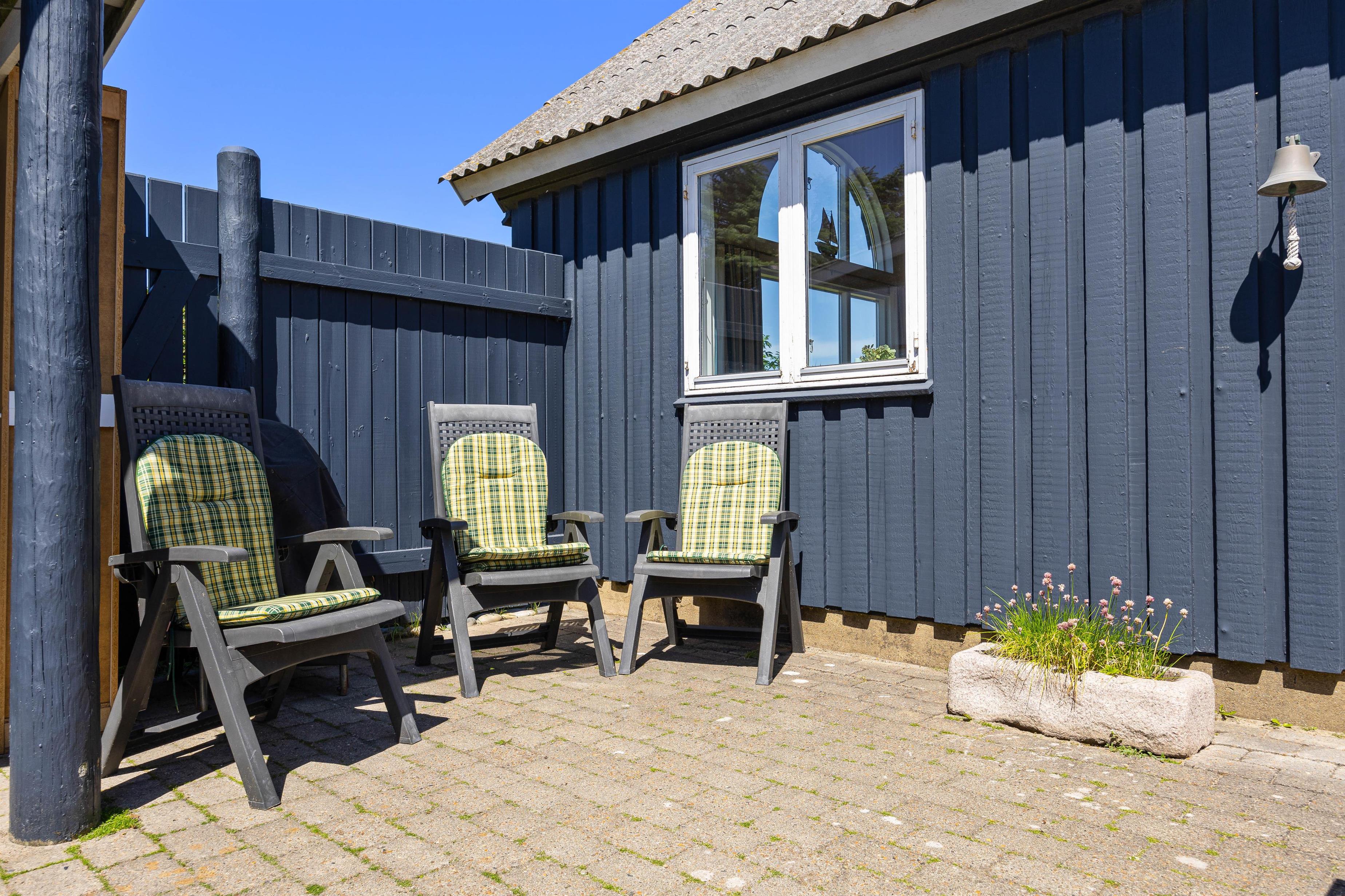 Den lukkede terrasse giver masser af plads og privatliv. Havemøblerne indbyder til at blive hængende og slappe af i det fri. Især hvis vejret tillader, kan I for alvor nyde denne terrasse eller nyde en velfortjent pause i udespaen. I kan eventuelt benytte jer af grillen og lave en hyggelig grillaften. Den åbne terrasse ligger direkte ved indgangen til feriehuset, hvor er kan I nyde morgensolen