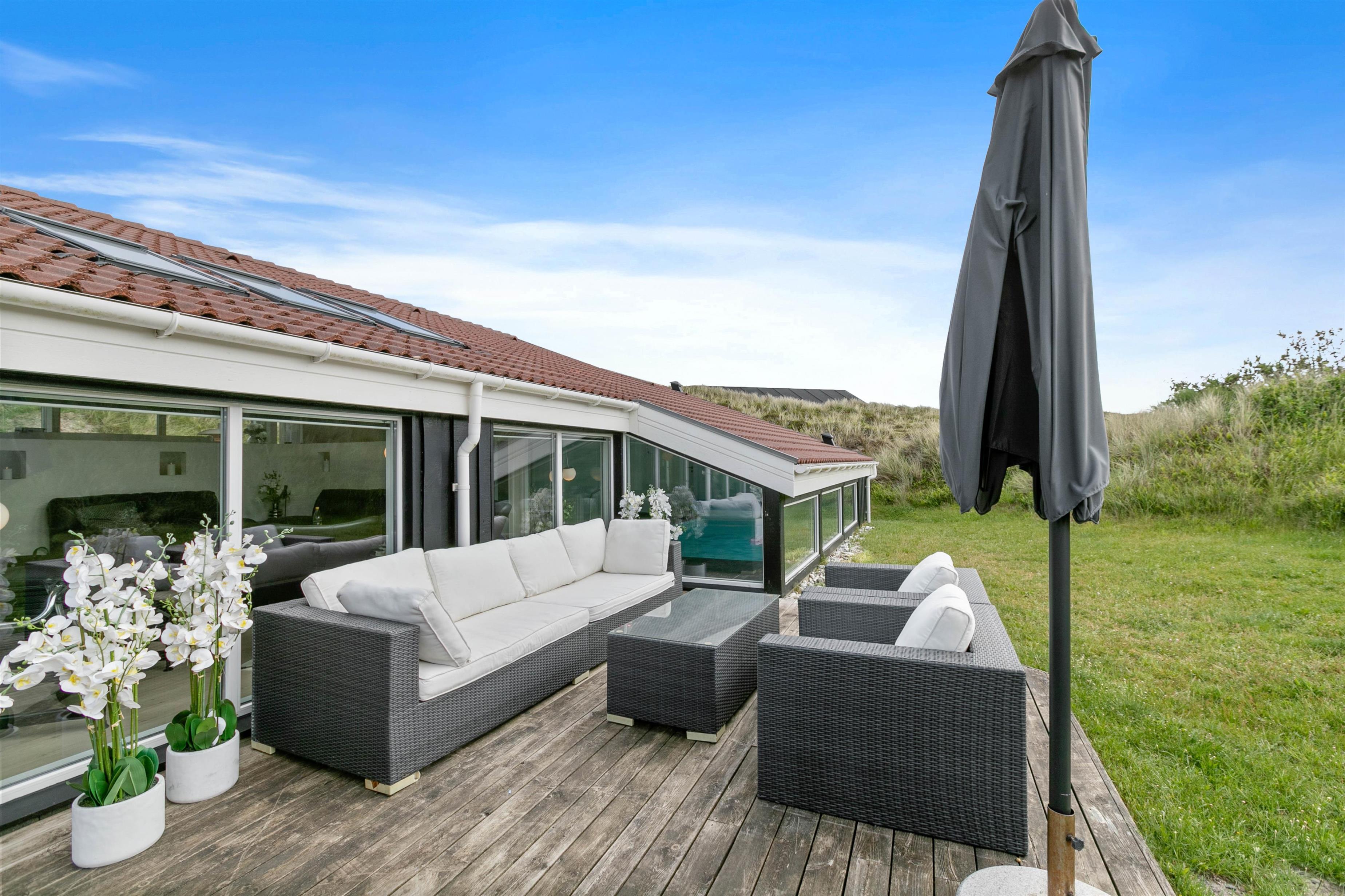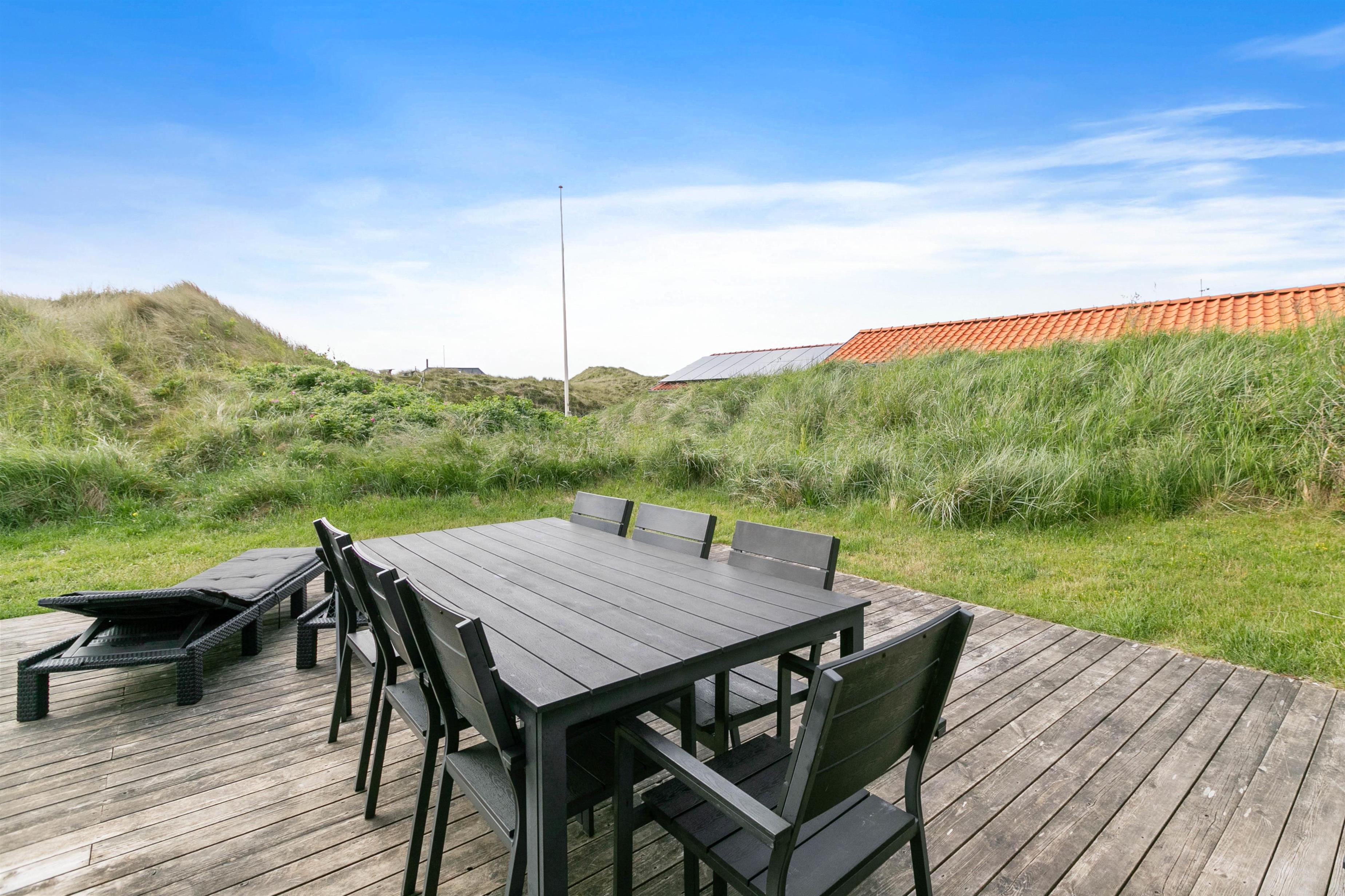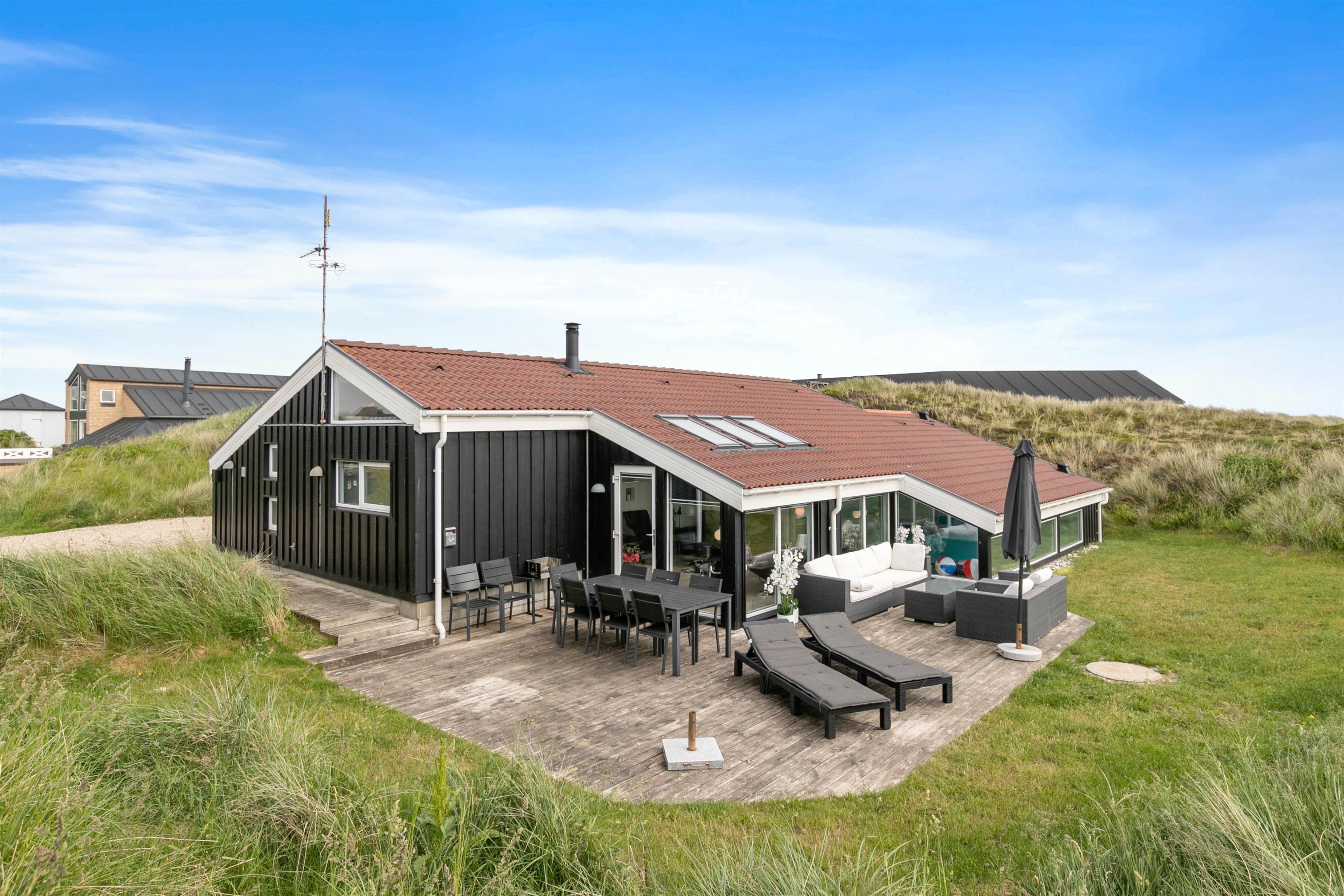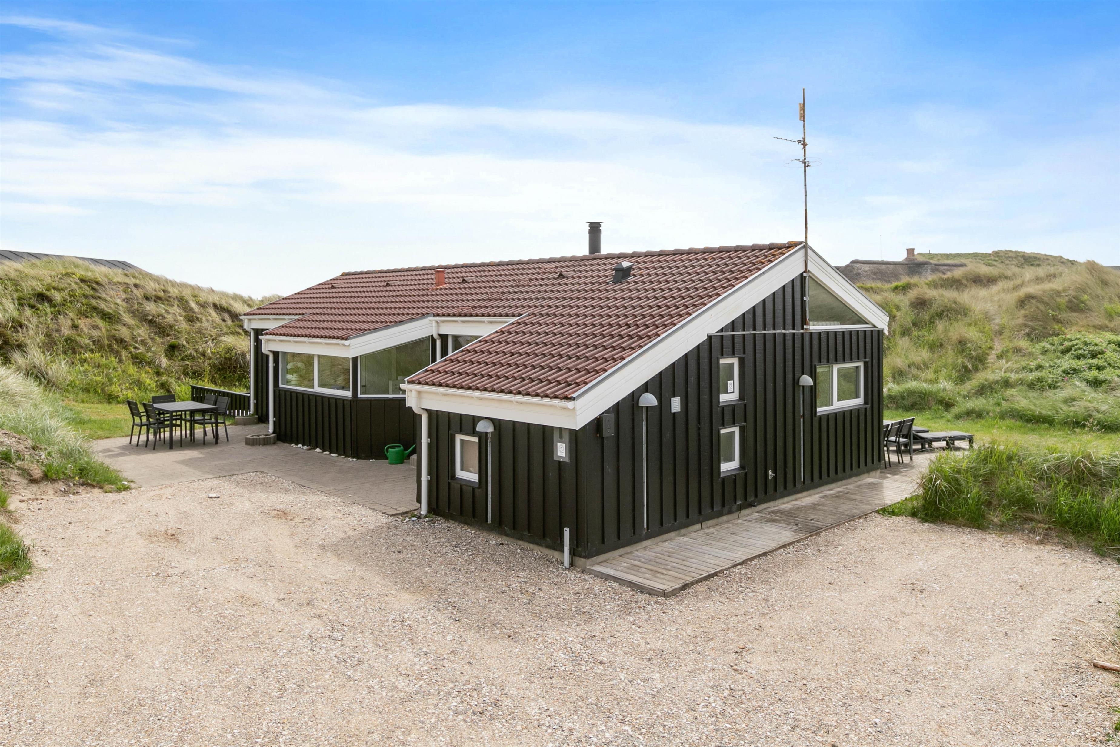 På denne klitgrund kan du lytte til Vesterhavets bølger og nyde havluften. Kun 300 meter fra den imponerende strand ligger dette feriehus midt i klitterne. Den 1312 m2 store klitgrund har en åben terrasse, der indbyder til afslappende grillaftener. Børnene vil elske sandkassen i haven, og derudover kan du nemt oplade din elbil på ladestationen ved feriehuset.