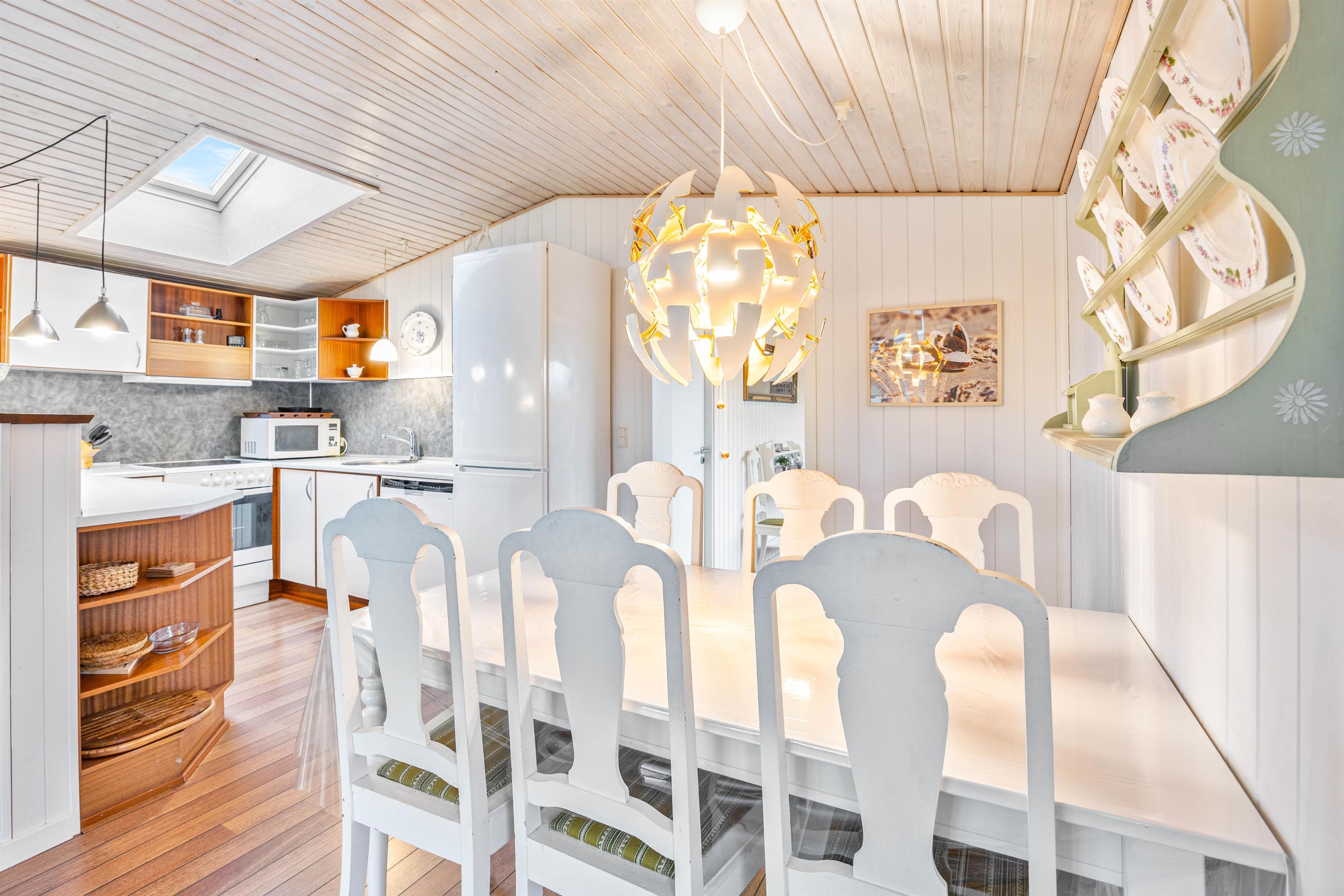 Sommerhusets hjerte er det kombinerede stue- og køkkenalrum. Her kan I samle hele flokken til en masse skønne feriestunder med kortspil, afslapning på sofaen og lækre middage rundt om spisebordet. Brændeovnen sørger med sine knitrende flammer for at sende feriestemningen helt til vejrs på sene aftener såvel som regnfulde dage.