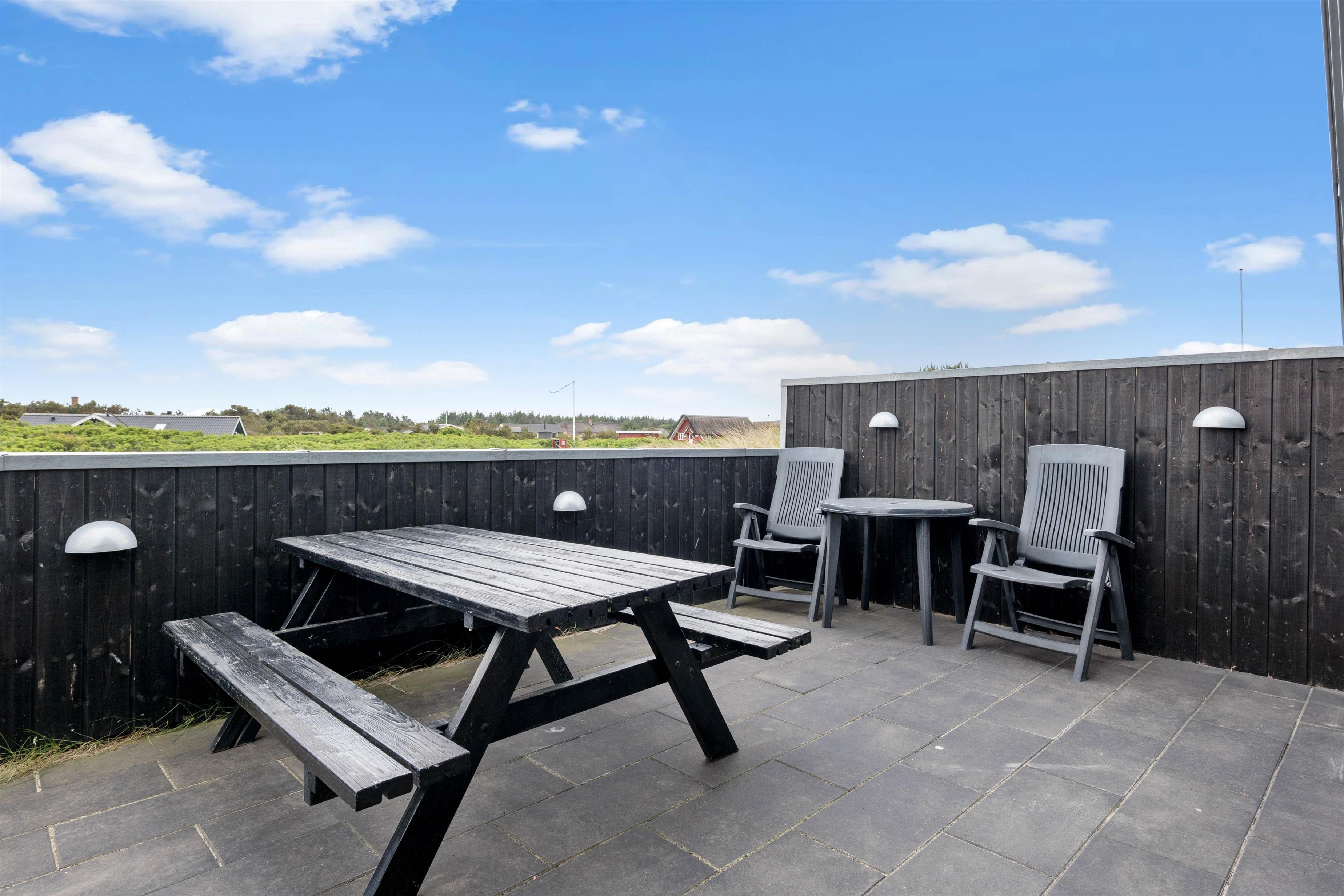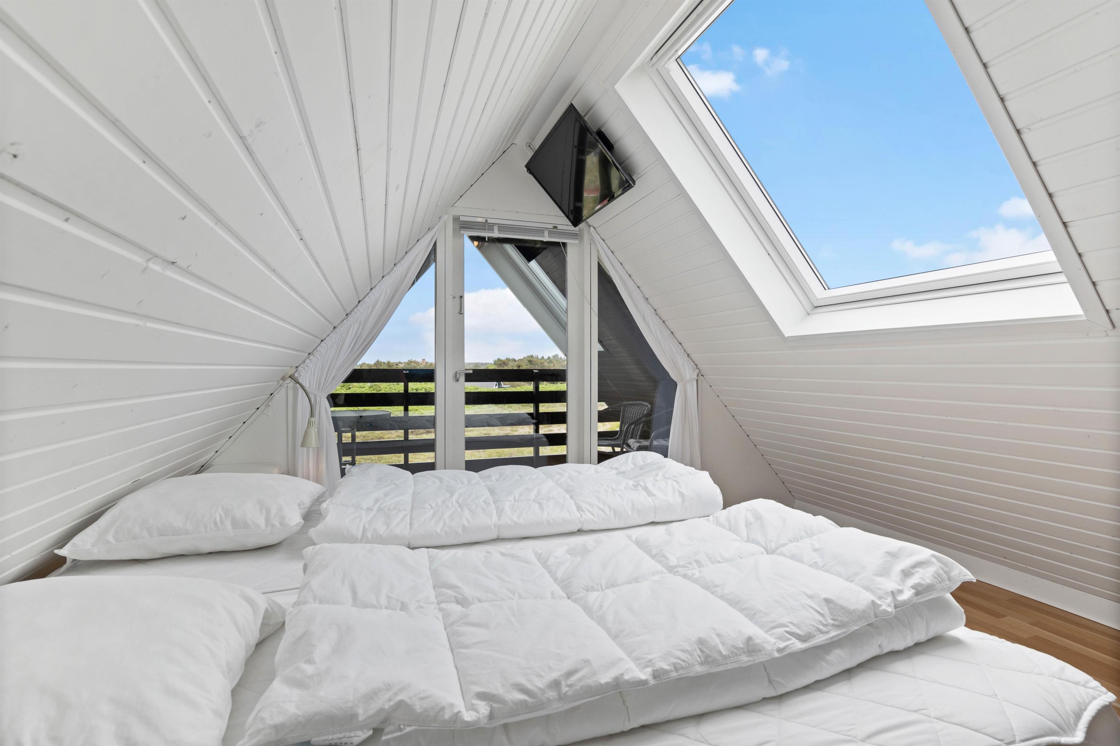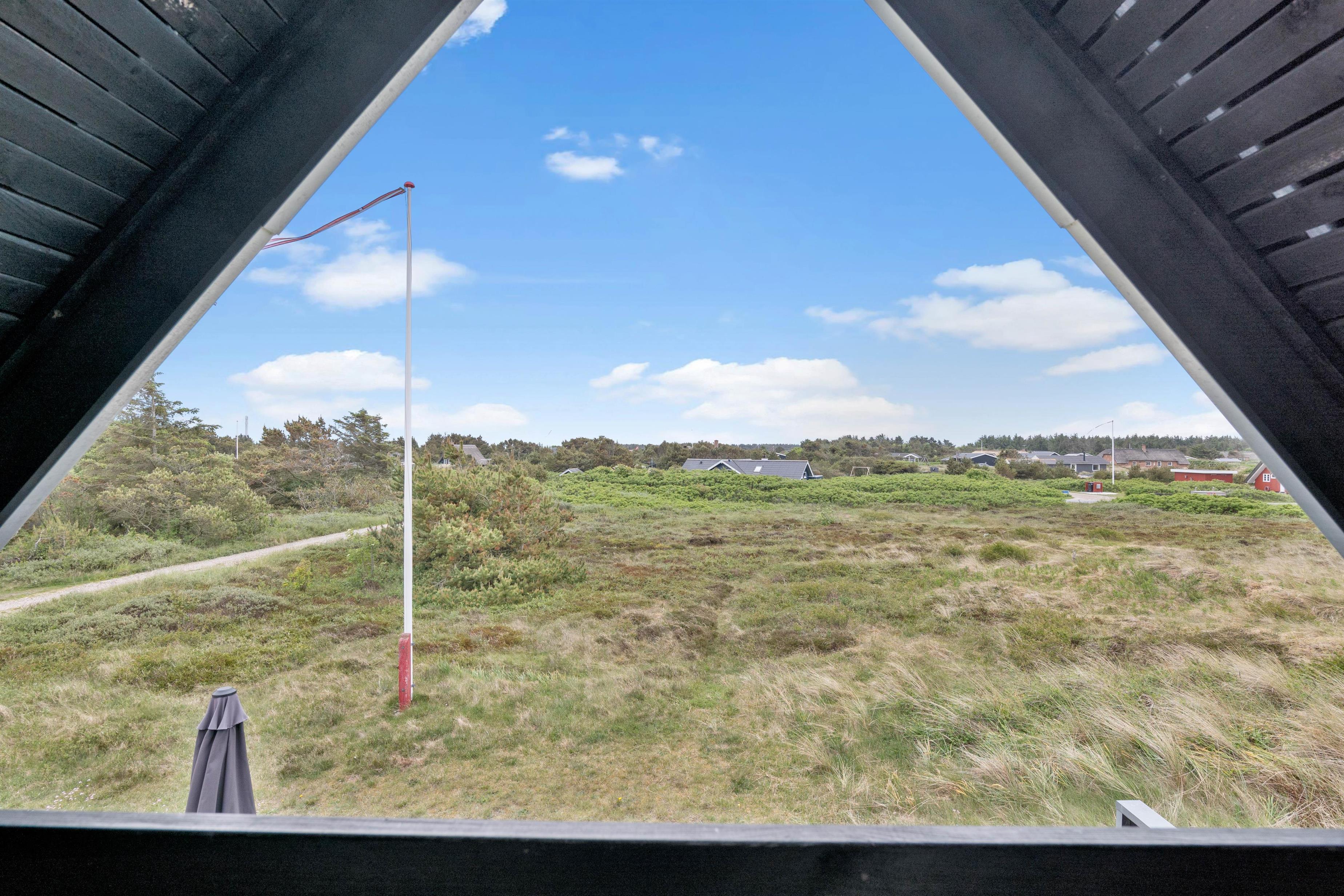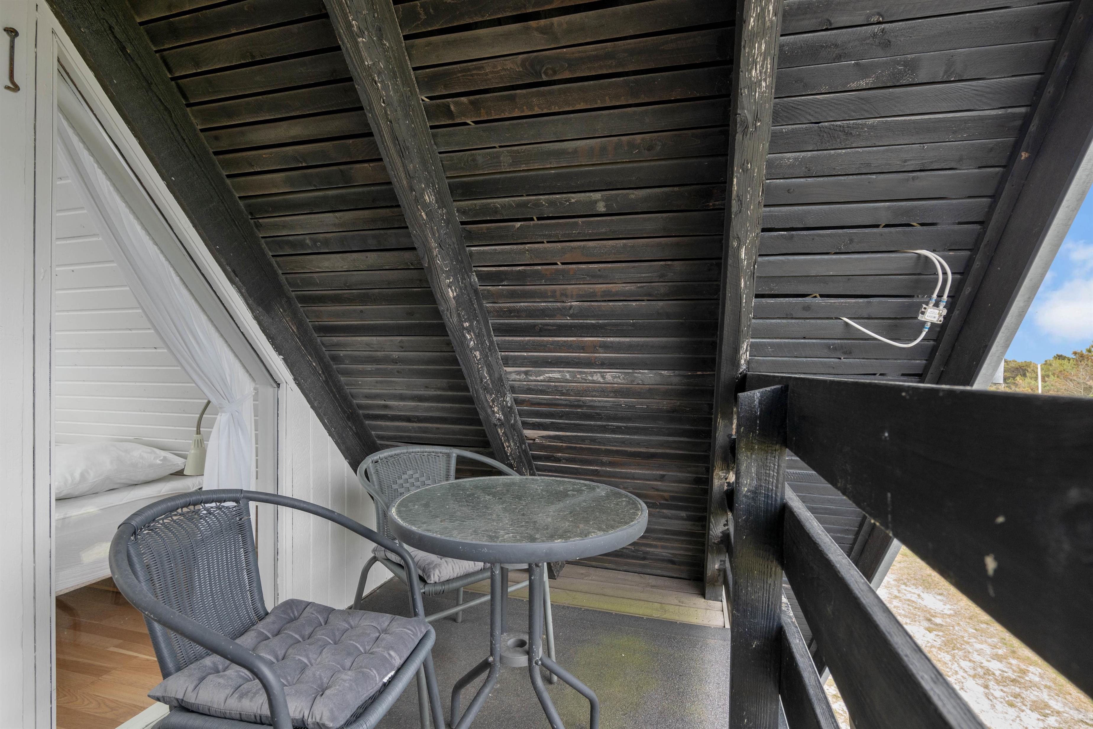 Det hyggelige sommerhus sætter rammerne for en enkel og afslappende ferie i smukke omgivelser, og fra balkonen på første etage kan I nyde udsigten ud over det unikke, klitbeklædte sommerhuslandskab.