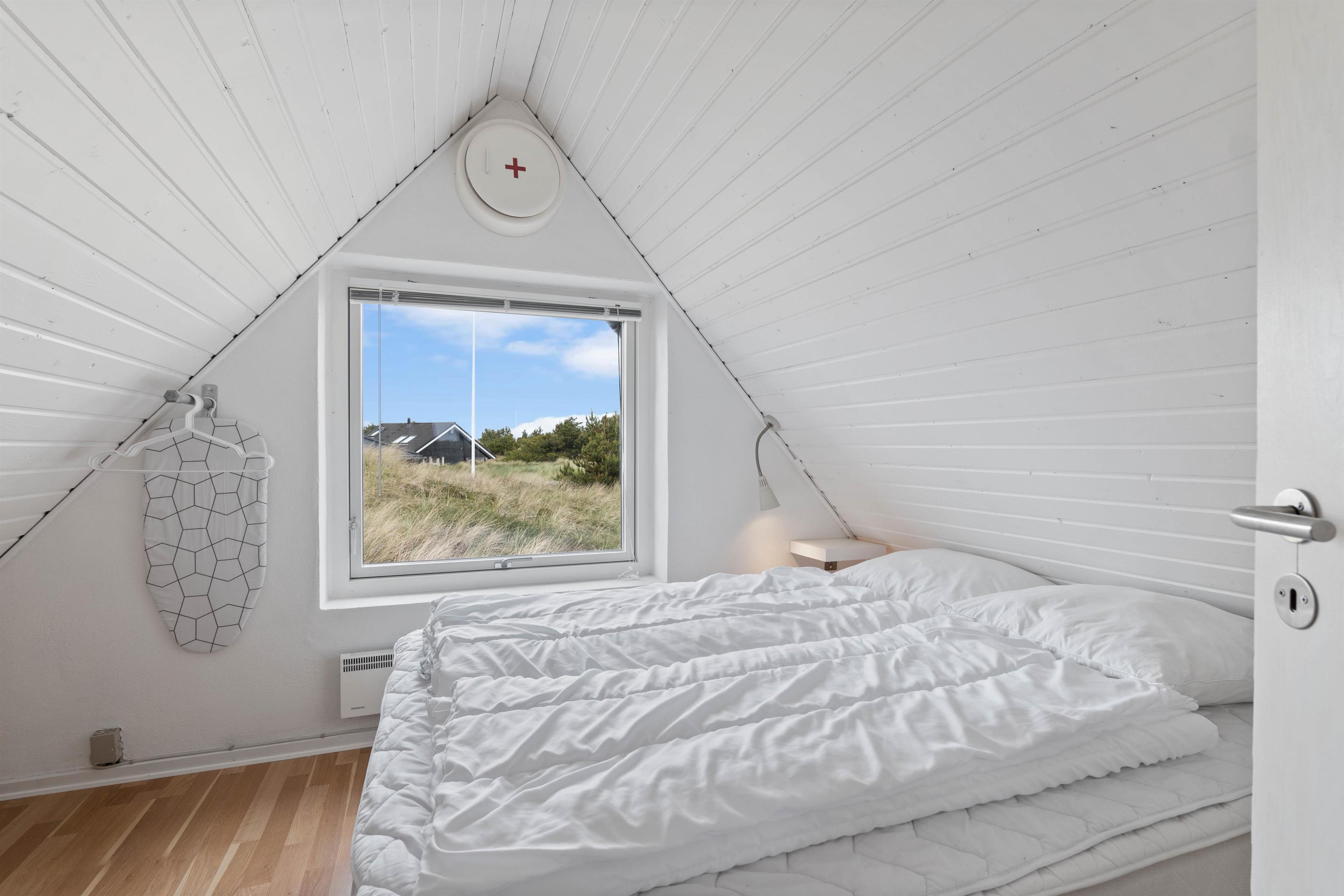 I Søndervigs populære ferieland ligger dette hyggelige sommerhus til seks personer. Sommerhuset er indbydende indrettet med lyse farver, brændeovn og opvaskemaskine. Fra balkonen på første etage er der flot udsigt over det vestjyske klitlandskab. Her er op til to hunde også hjerteligt velkomne her.
