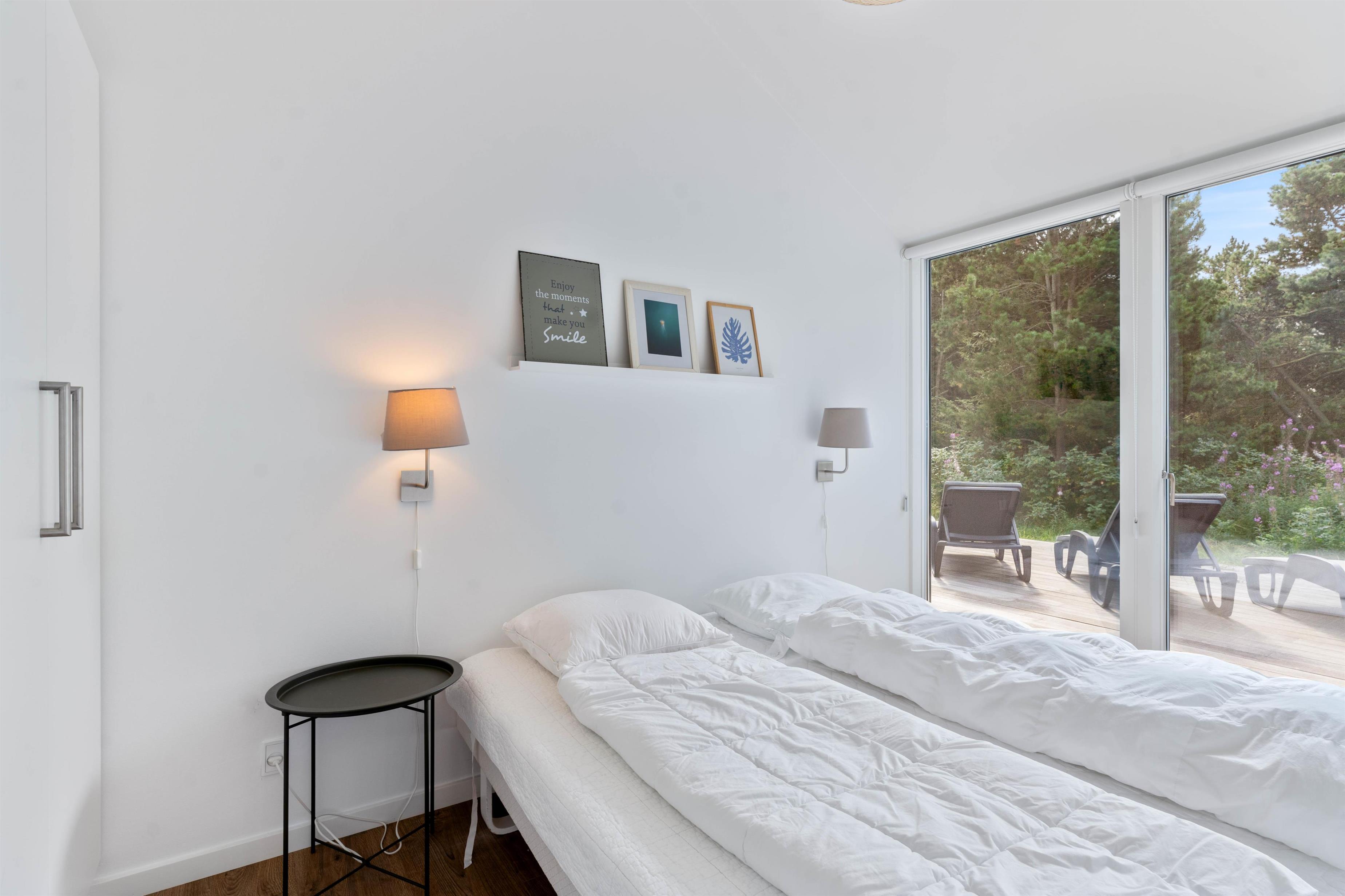 Lækkert kvalitetshus ikke langt fra Søndervig centrum. Det er bygget i 2 afdelinger, hvilket er ideelt, hvis man har store børn med eller man er 2 par. Det ligger på en fredelig naturgrund med masser af læ. Indretningen er smagfuld og indbydende, og huset er desuden udstyret med et aktivitetsrum.
