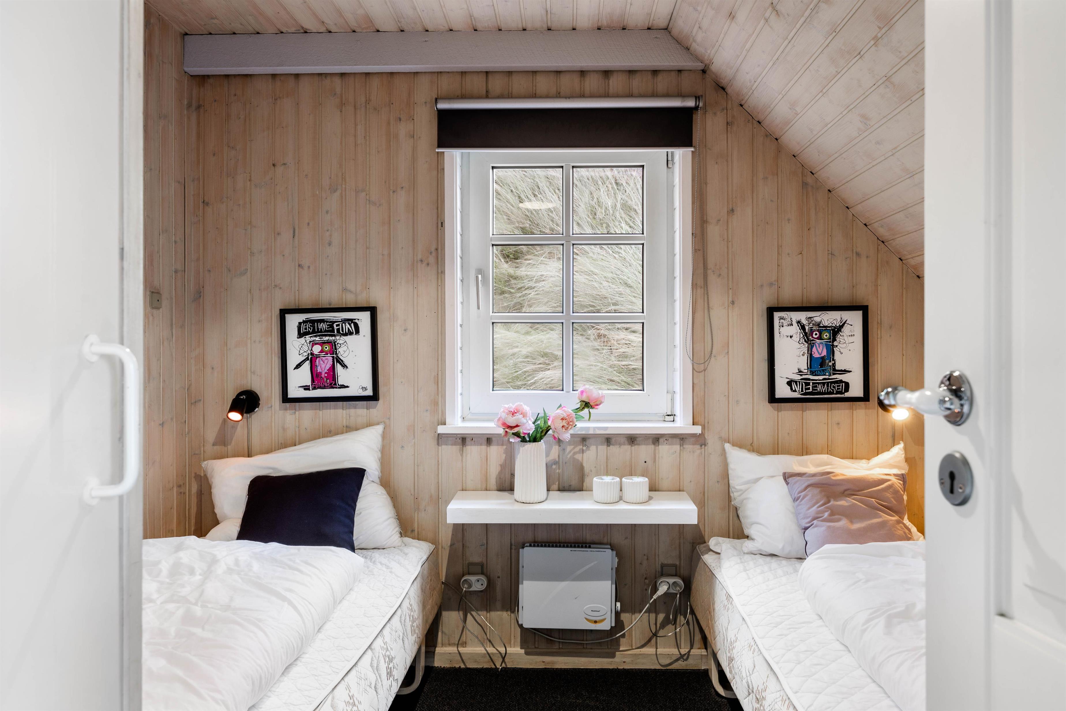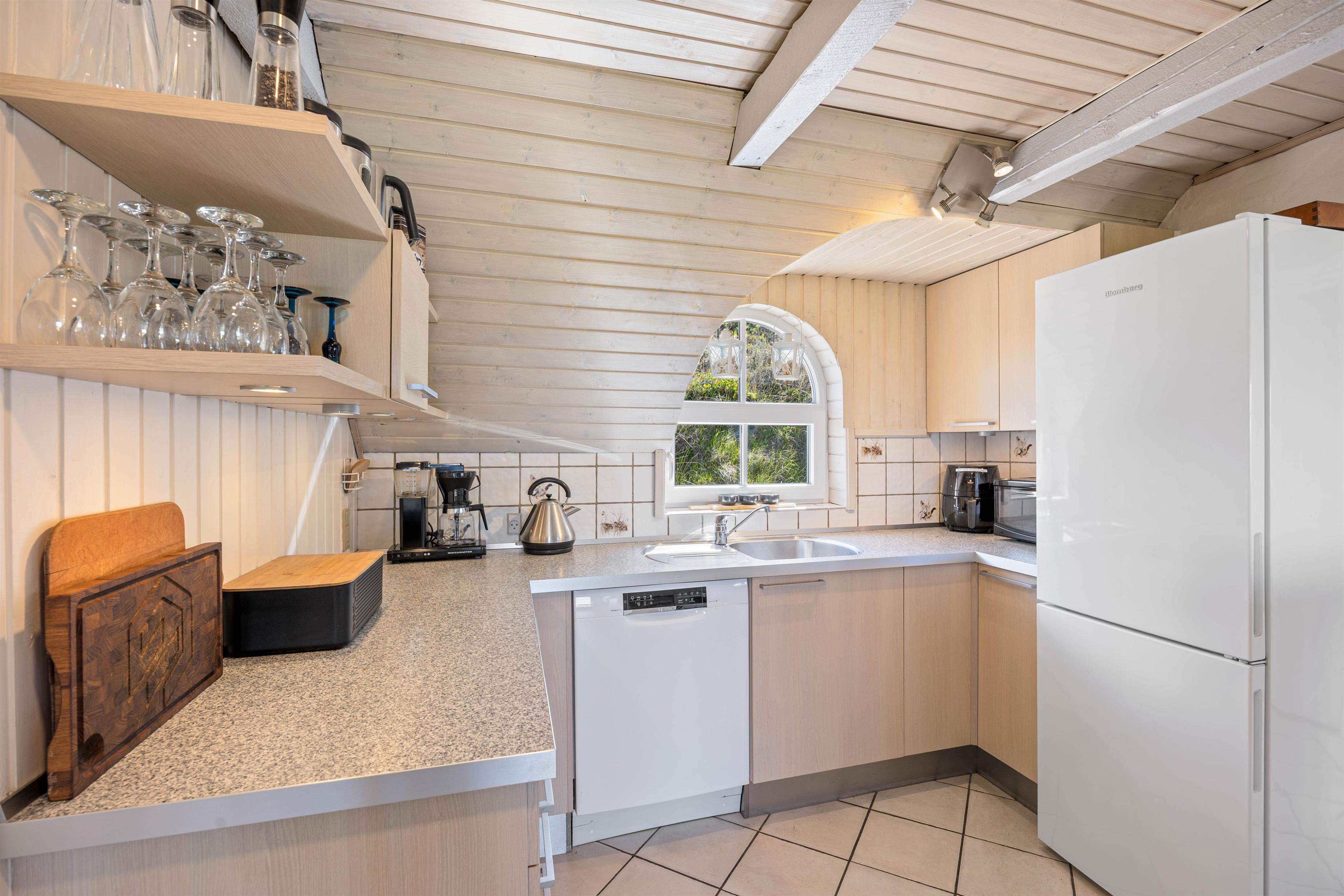 Indenfor er huset indrettet med et flot og personligt aftryk. De synlige loftsbjælker er holdt i en mørk farve, som giver et flot modspil til husets ellers moderne indretning. Det søger for en dejlig varme, der indbyder til hygge og rigtig feriestemning. Huset har desuden på et veludstyret køkken, 3 lyse soverum og et dejligt badeværelse, som er blevet totalrenoveret i 2021. Her kan I nyde den skønne sauna og lade batterierne op efter en lang dag i den friske luft.