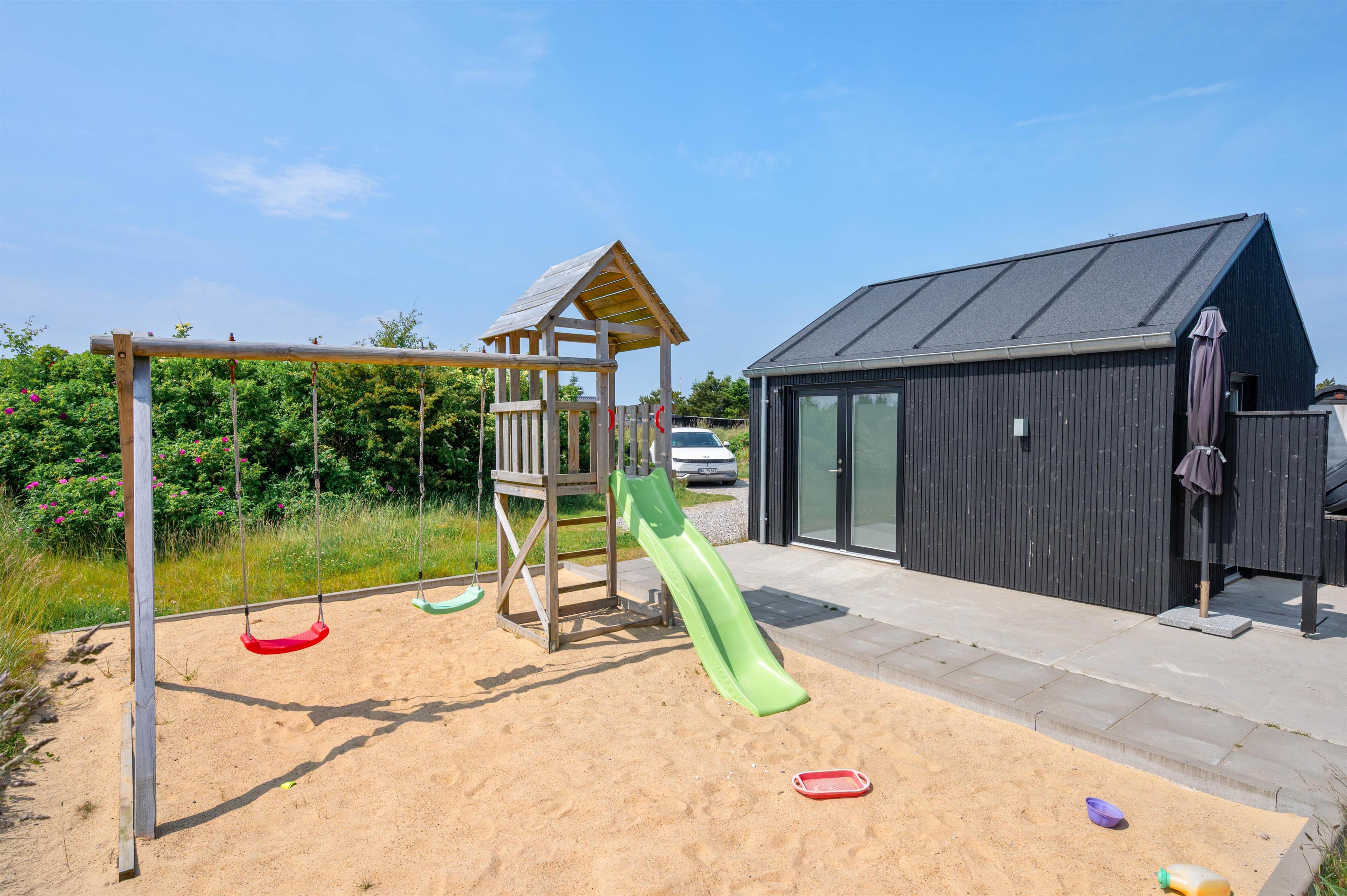 I sommerhuset på P Snejkers Vej 21B i Søndervig vil I føle jer hjemme, allerede når I træder indenfor. Det flotte sommerhus, der er bygget i 2023, rummer nemlig en moderne indretning, der bliver komplimenteret af det skønne lysindfald.