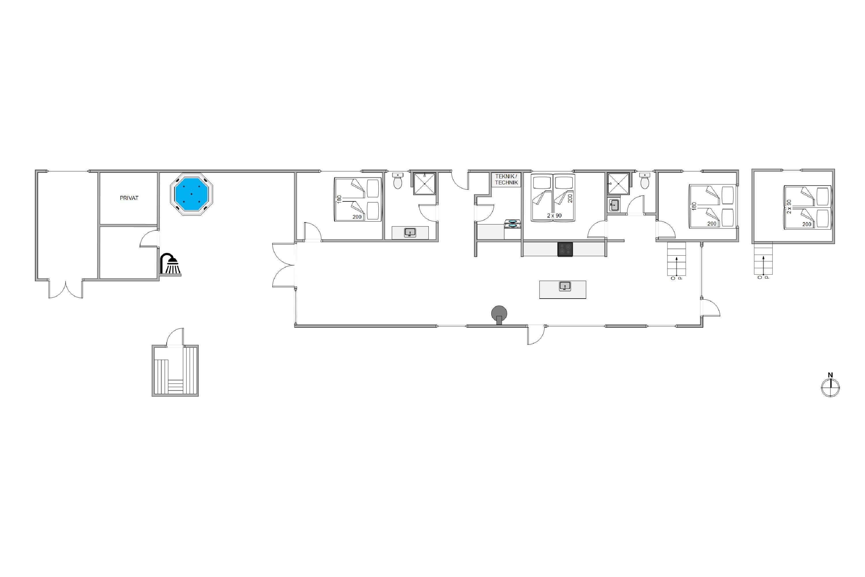 Der er hele 2 badeværelser i feriehuset, og derfor kan I starte jeres feriedage helt uden at skulle stå i kø. Begge badeværelser er udstyret med gulvvarme, og derfor slipper I for kolde fødder fra morgenstunden.