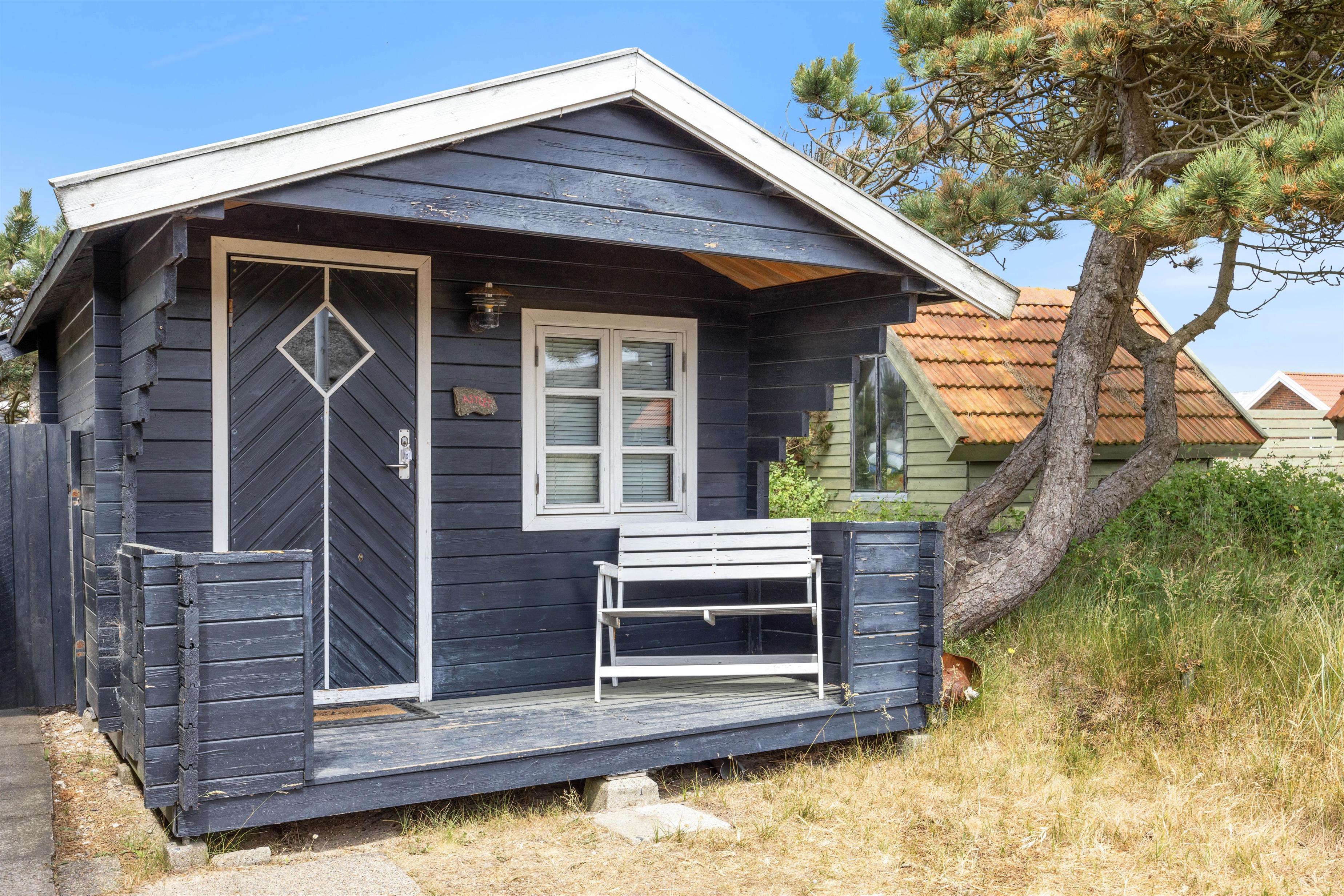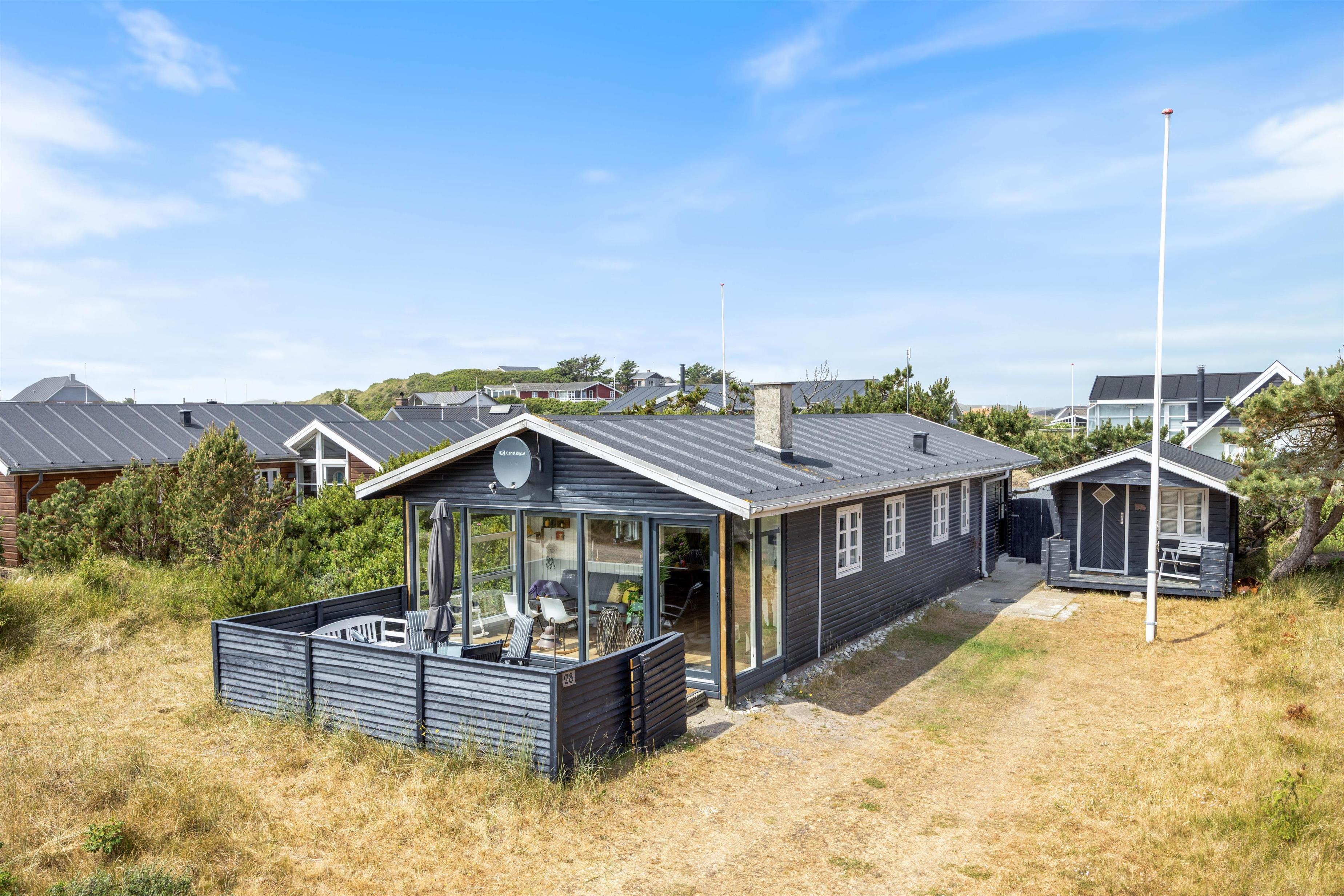 På Molsvej 28 inviterer dette hyggelige sommerhus med udestue og brændeovn inden for til en hyggelig ferie i Søndervig. Med plads til op til fem personer er sommerhuset et oplagt valg til en lille familie eller et par. Feriehuset ligger kun 500 meter fra det smukke Vesterhav, og I er desuden velkomne til at have op til to hunde med på jeres ferie i sommerhuset.
