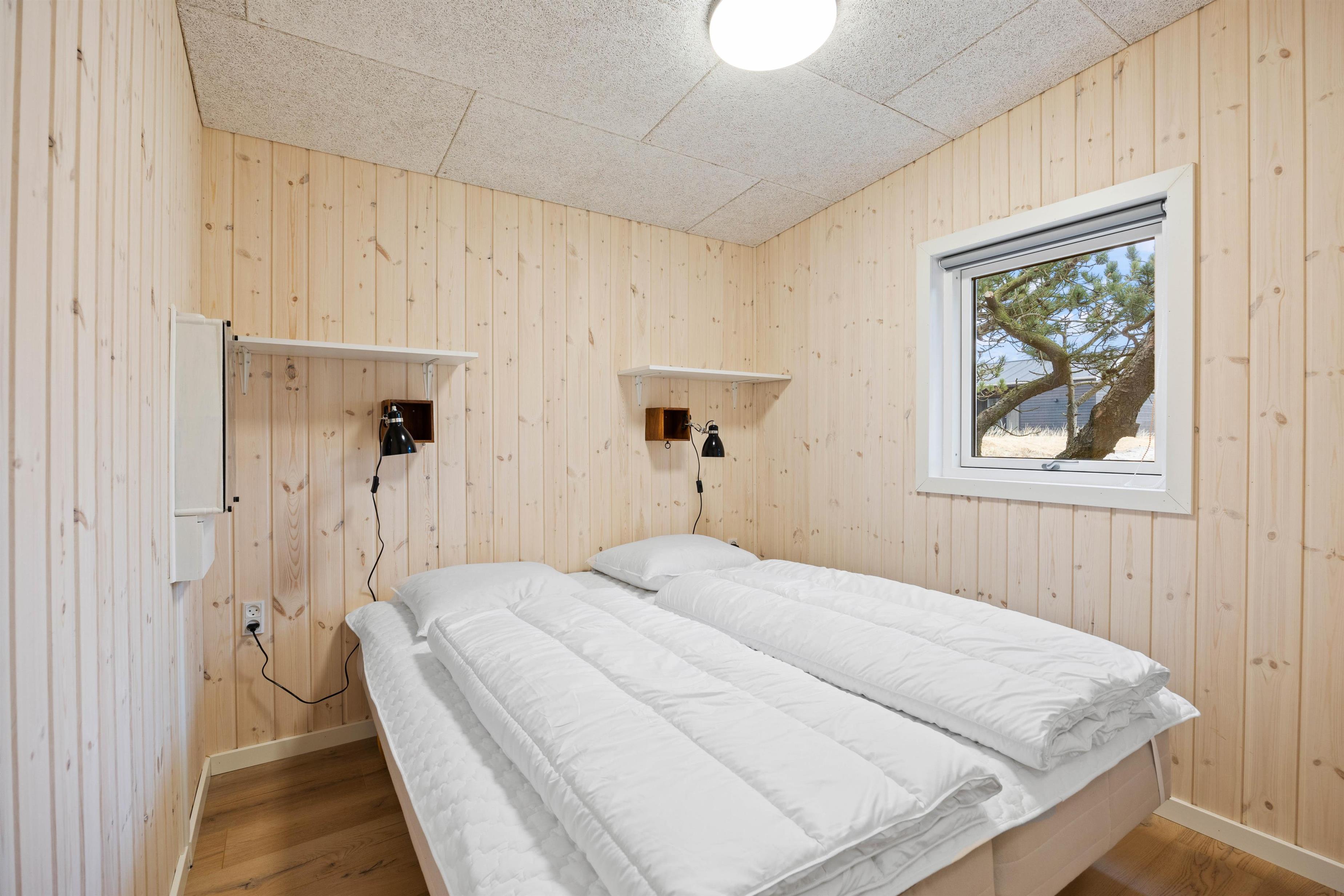 Når feriedagen så småt er ved at være slut, kan I søge mod de tre soveværelser i sommerhuset, der er indrettet med henholdsvis en enkelt dobbeltseng og tre enkeltsenge. Med en god nats søvn kan I samle ny energi til jeres næste feriedage i Søndervig.