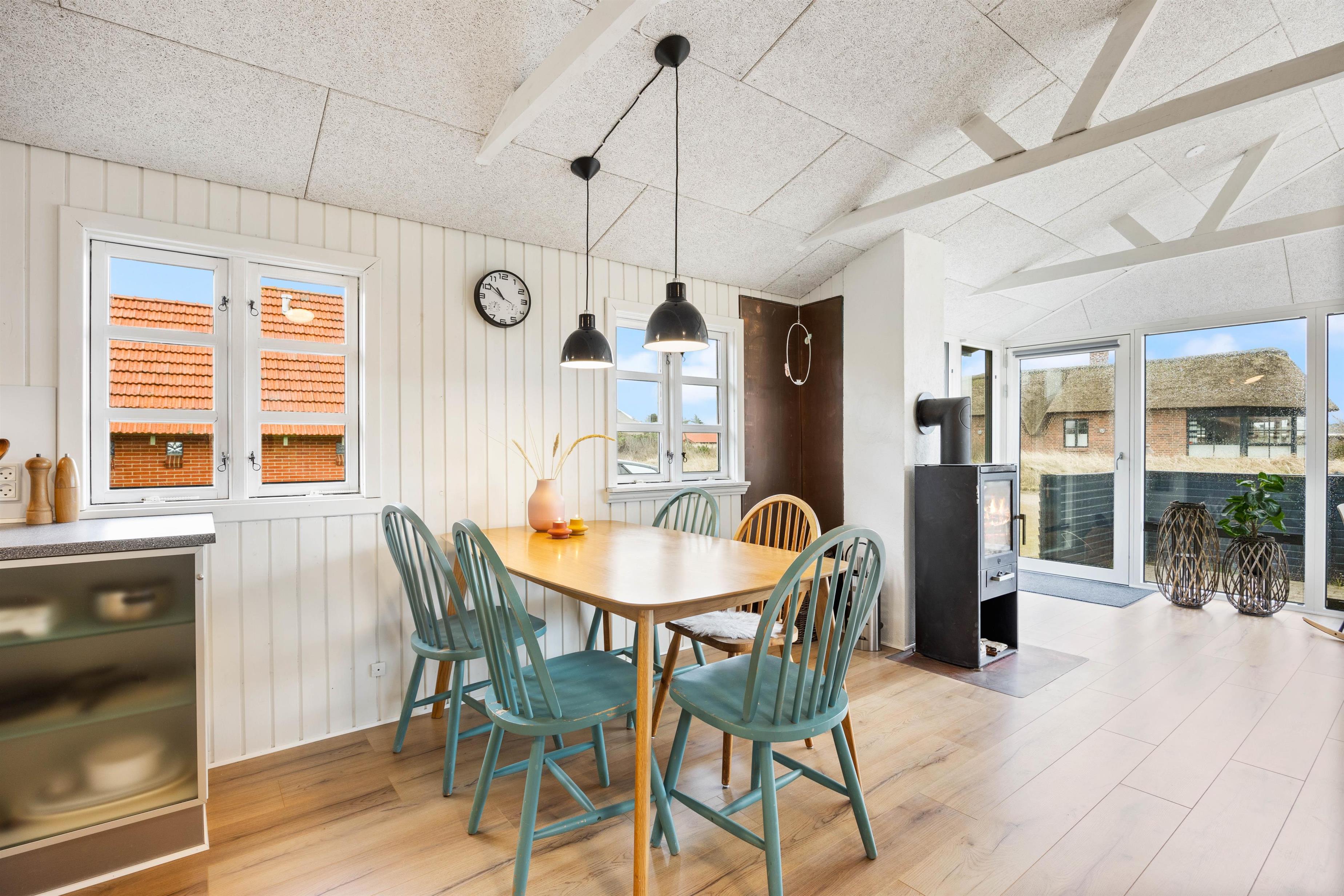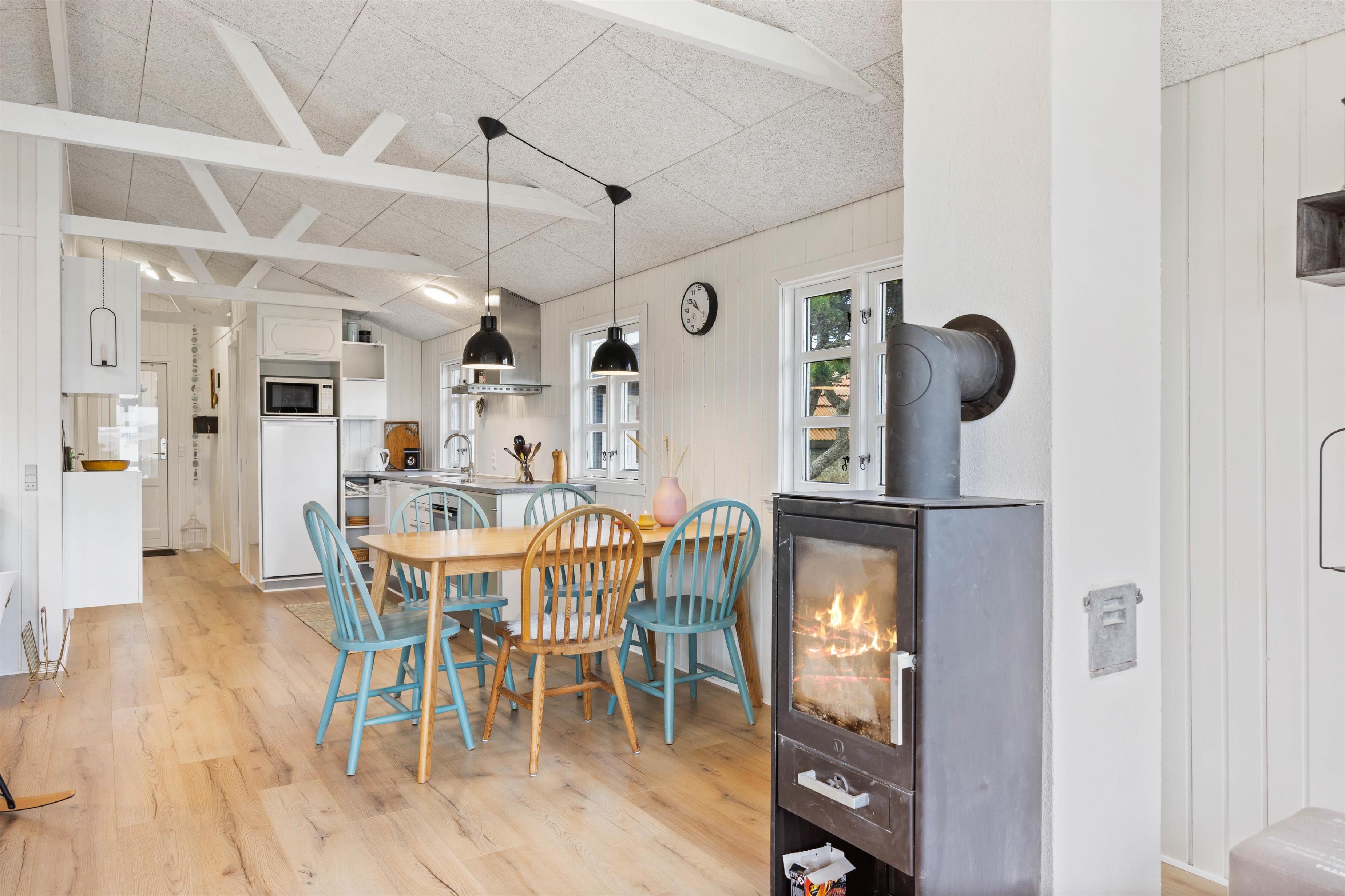 Mens I har gang i madlavning, spil og film i alrummet, sørger brændeovnen og dens knitrende flammer for, at den hyggelige feriestemning bliver fuldendt. Den energibesparende varmepumpe sørger for en konstant og behagelig varme. Fra alrummet kan I desuden træde ud i den lyse, hyggelige udestue, hvor I også har mulighed for at nyde nogle hyggelige stunder sammen i løbet af ferien.