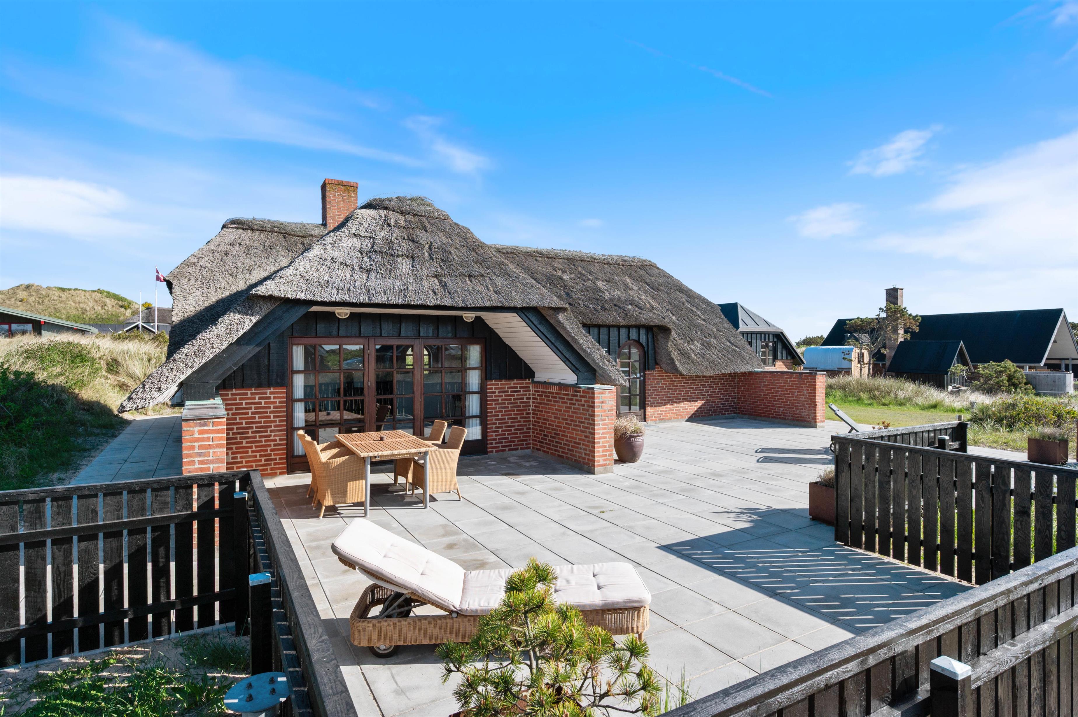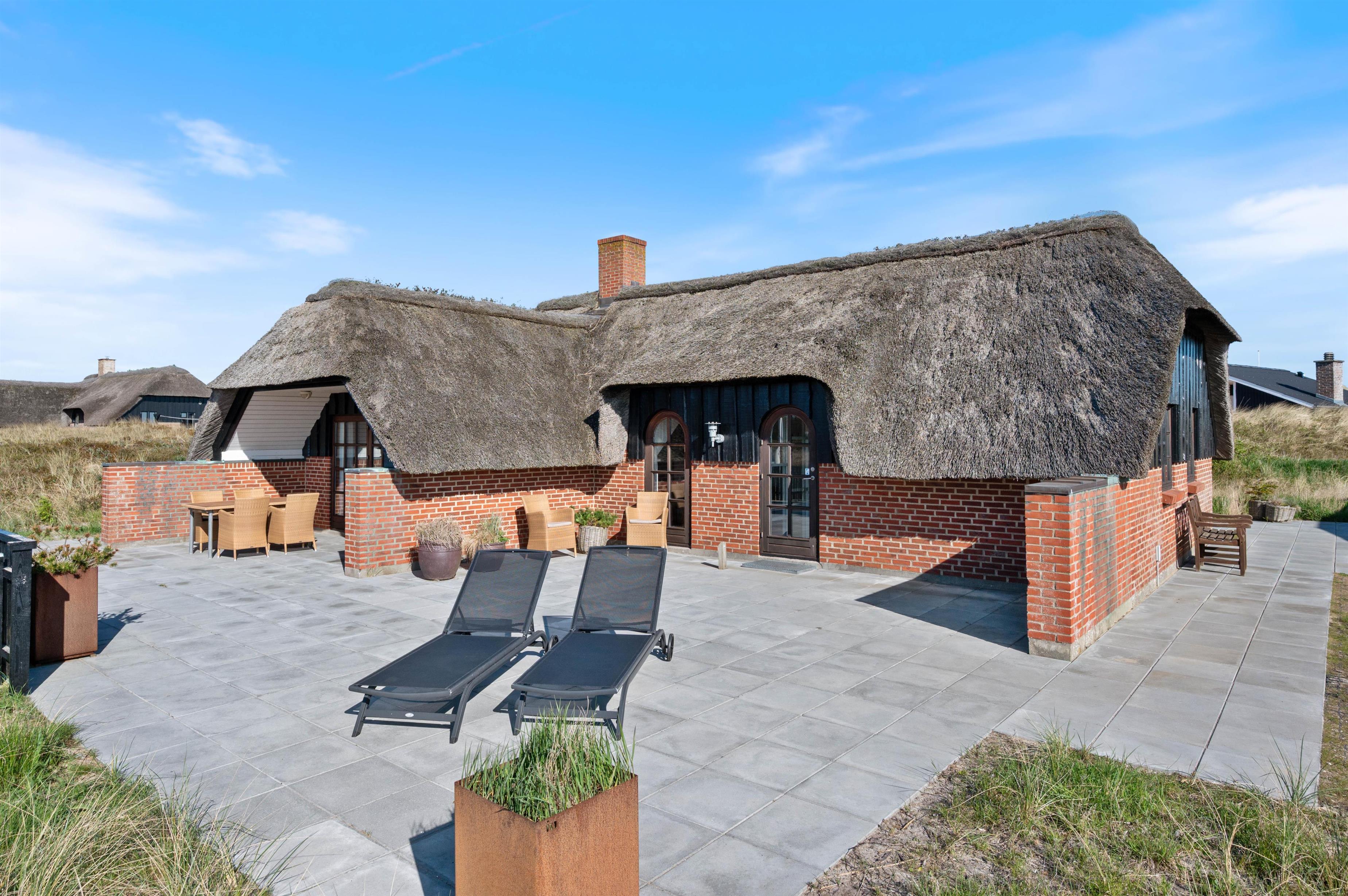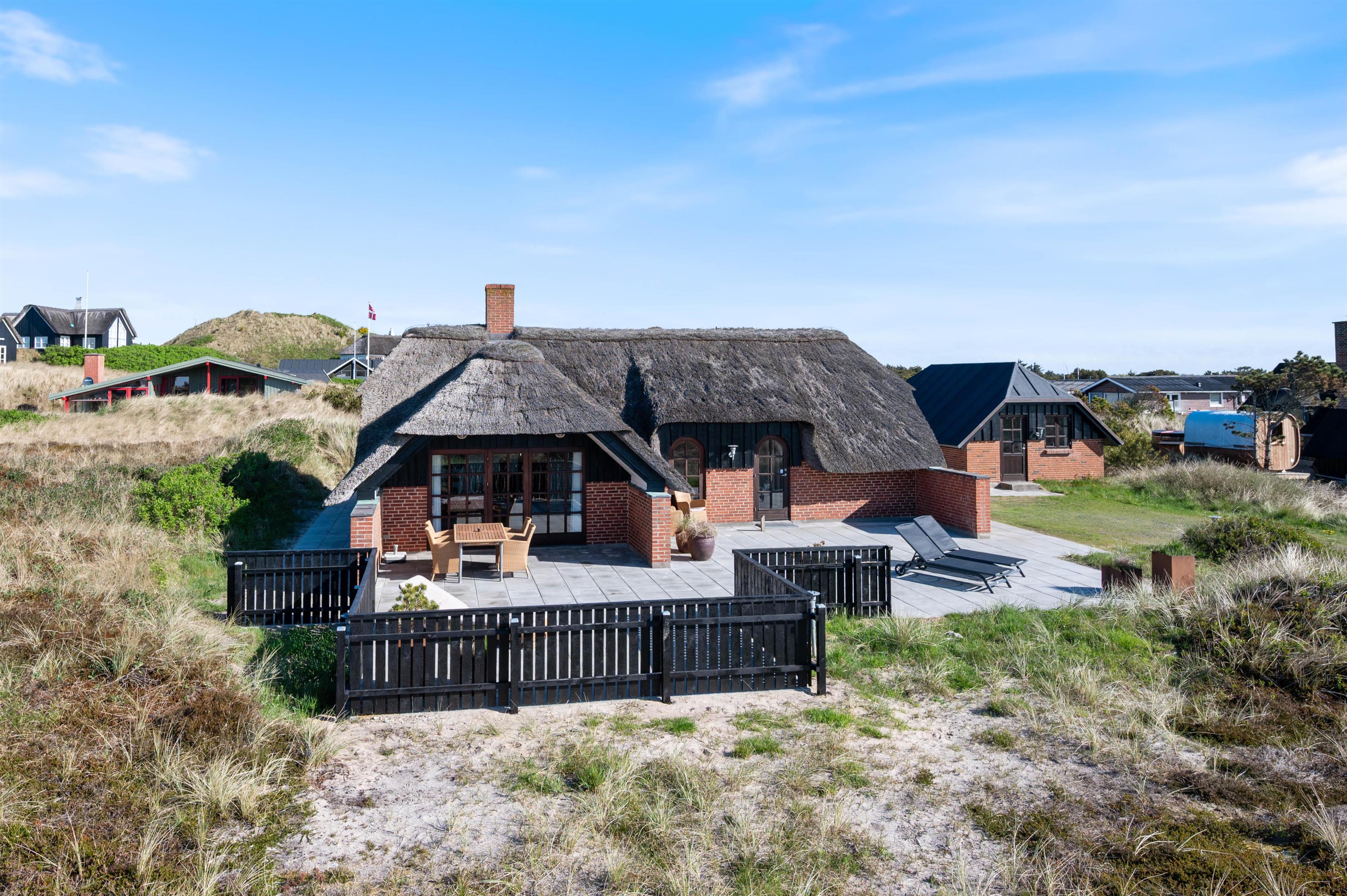 Midt i Søndervigs skønne klitlandskab, kun en gåtur væk fra både Vesterhavet og centrum, ligger dette hyggelige stråtagshus på Nordsøvej 318 til fem personer. Indretningen oser af hygge med flot interiør, brændeovn og helt nyt køkken og badeværelse, og der er masser af terrasseplads, så I kan nyde solen og den friske luft.
