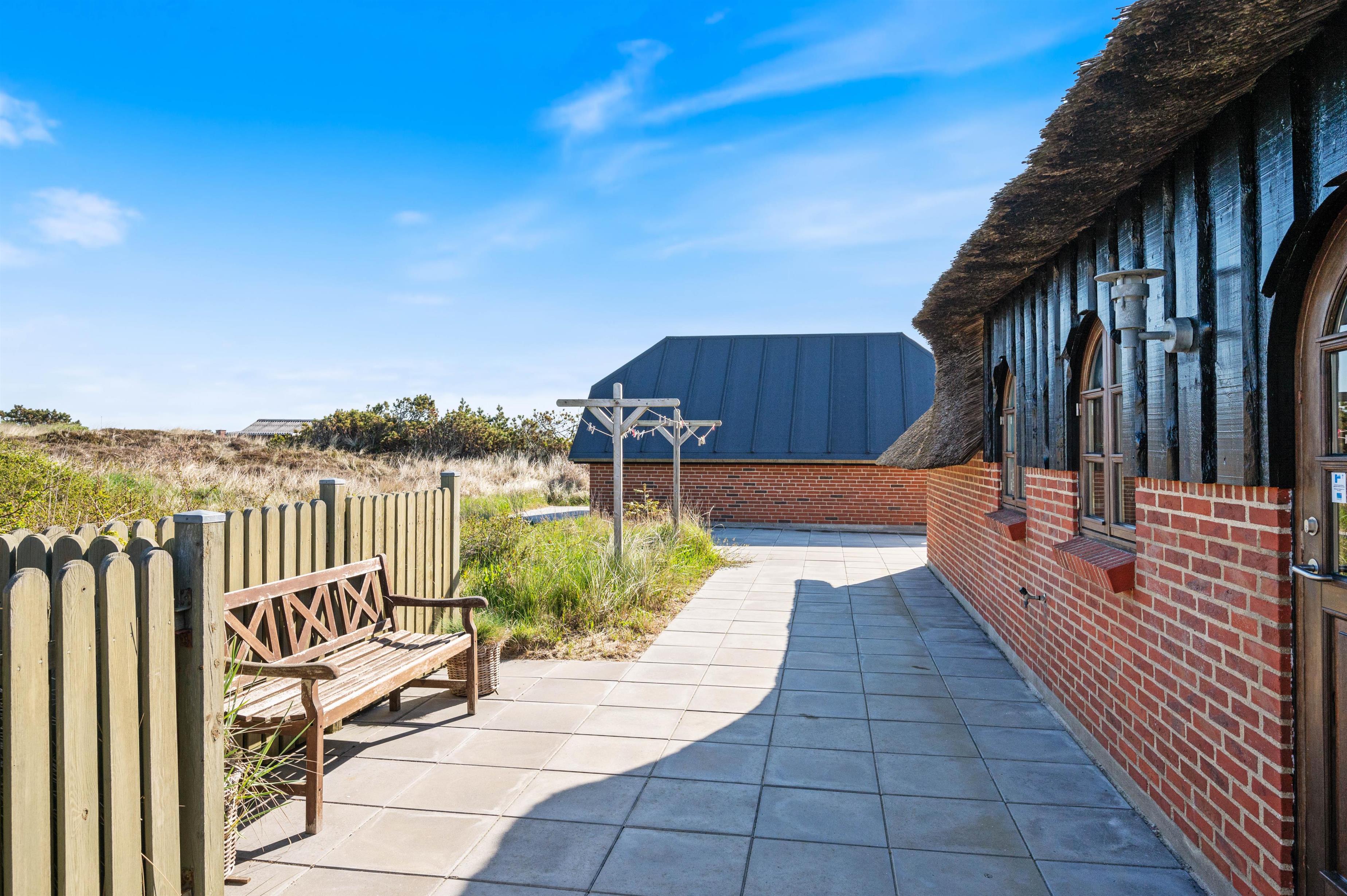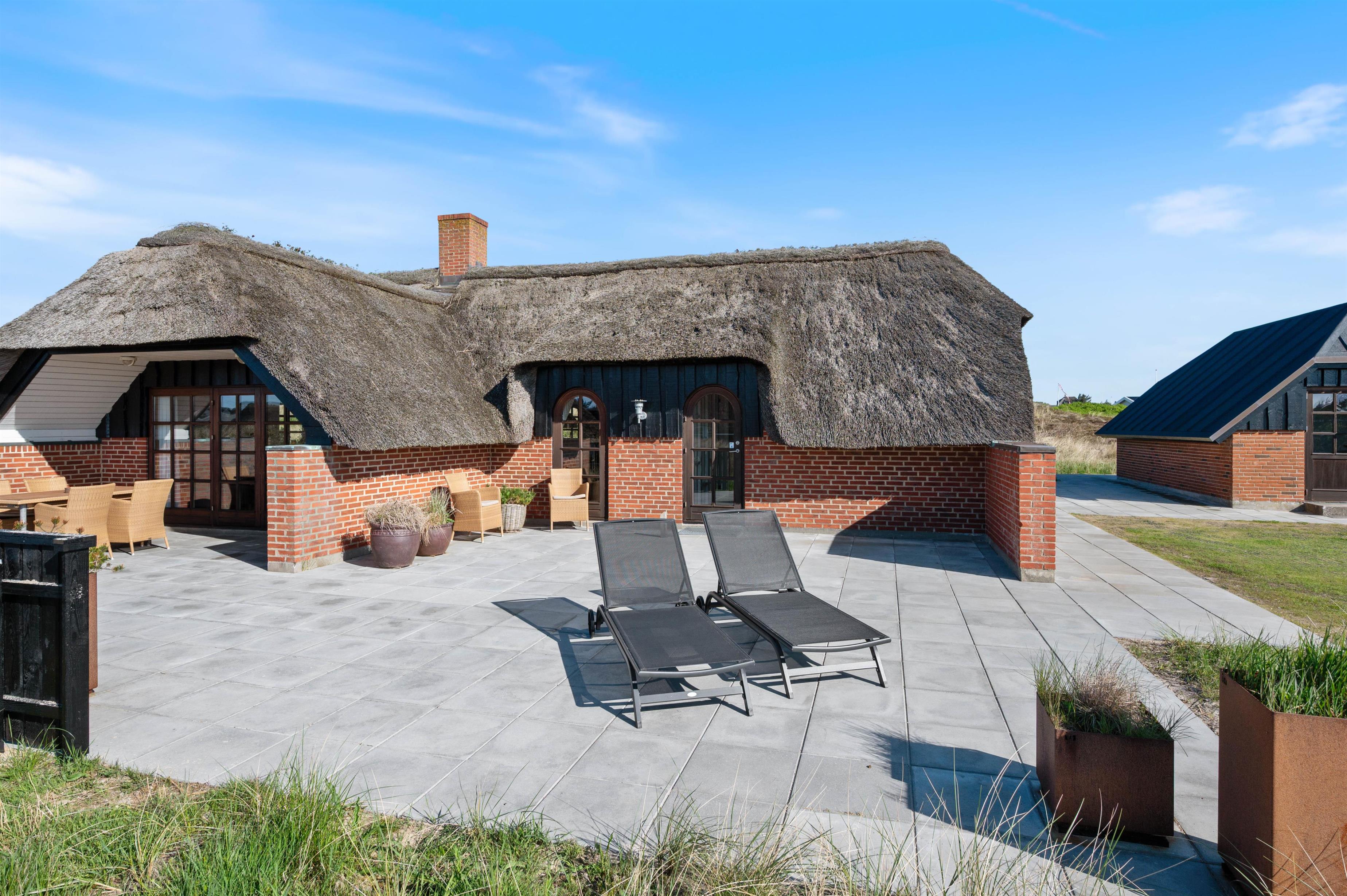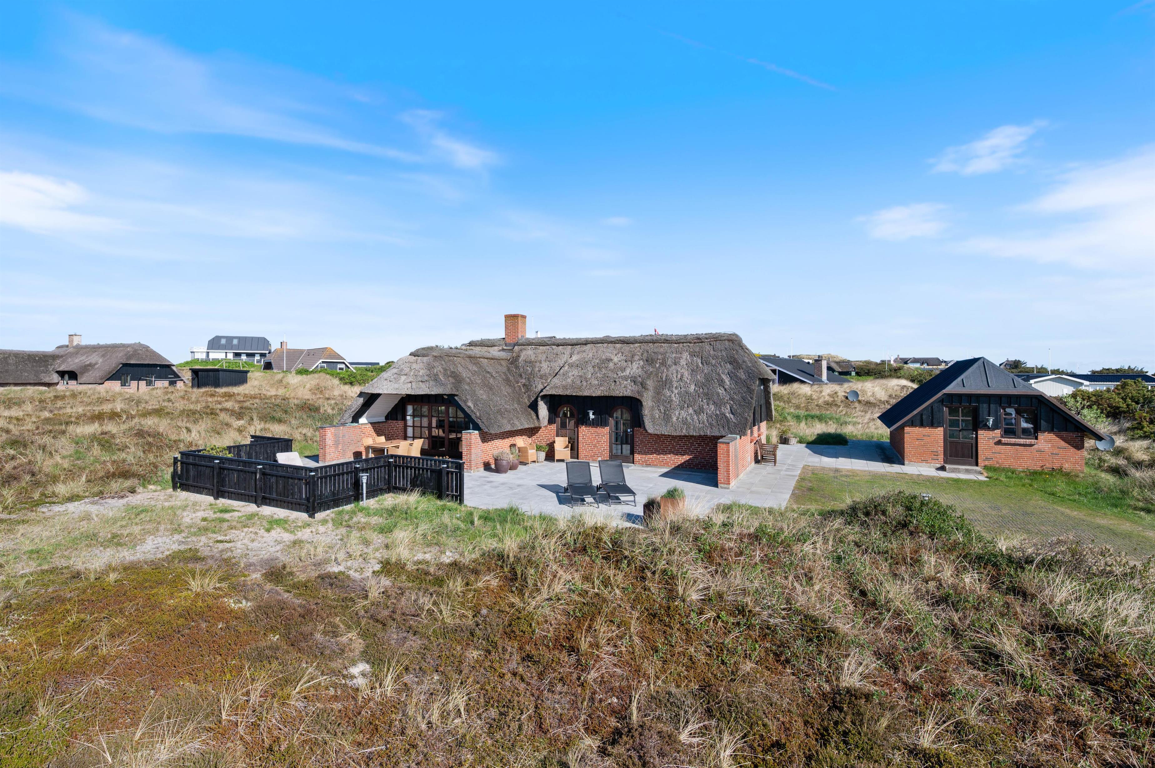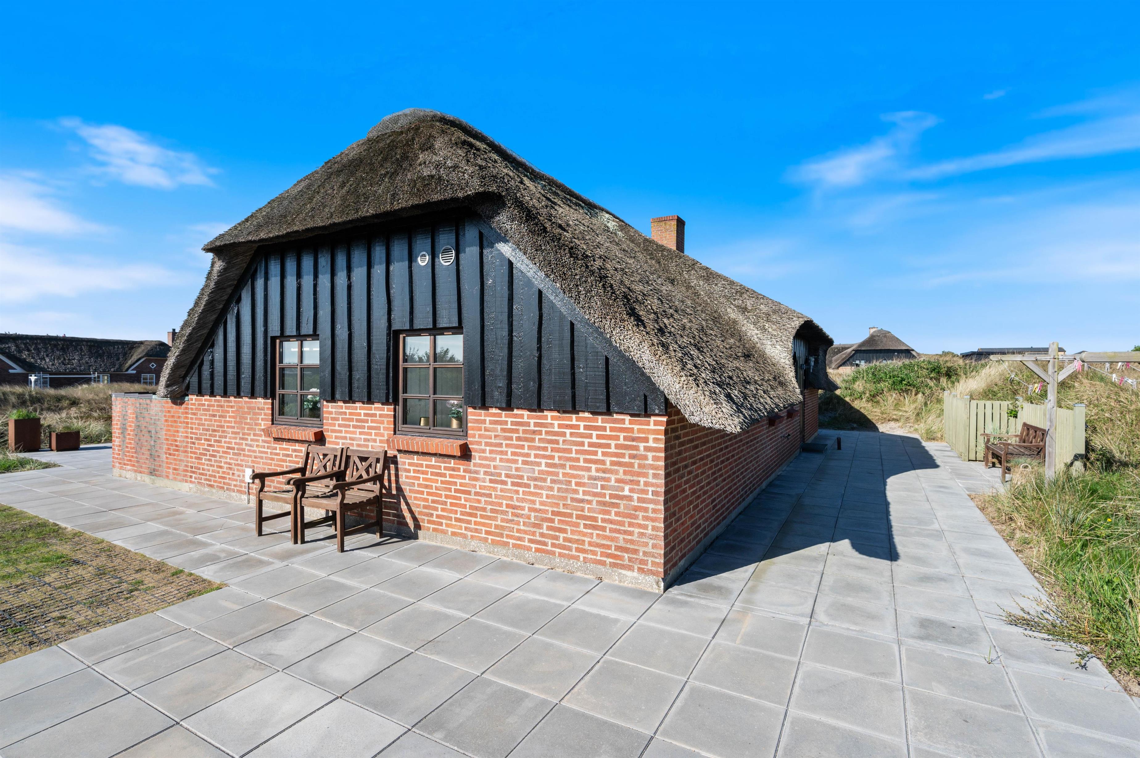 Midt i Søndervigs skønne klitlandskab, kun en gåtur væk fra både Vesterhavet og centrum, ligger dette hyggelige stråtagshus på Nordsøvej 318 til fem personer. Indretningen oser af hygge med flot interiør, brændeovn og helt nyt køkken og badeværelse, og der er masser af terrasseplads, så I kan nyde solen og den friske luft.