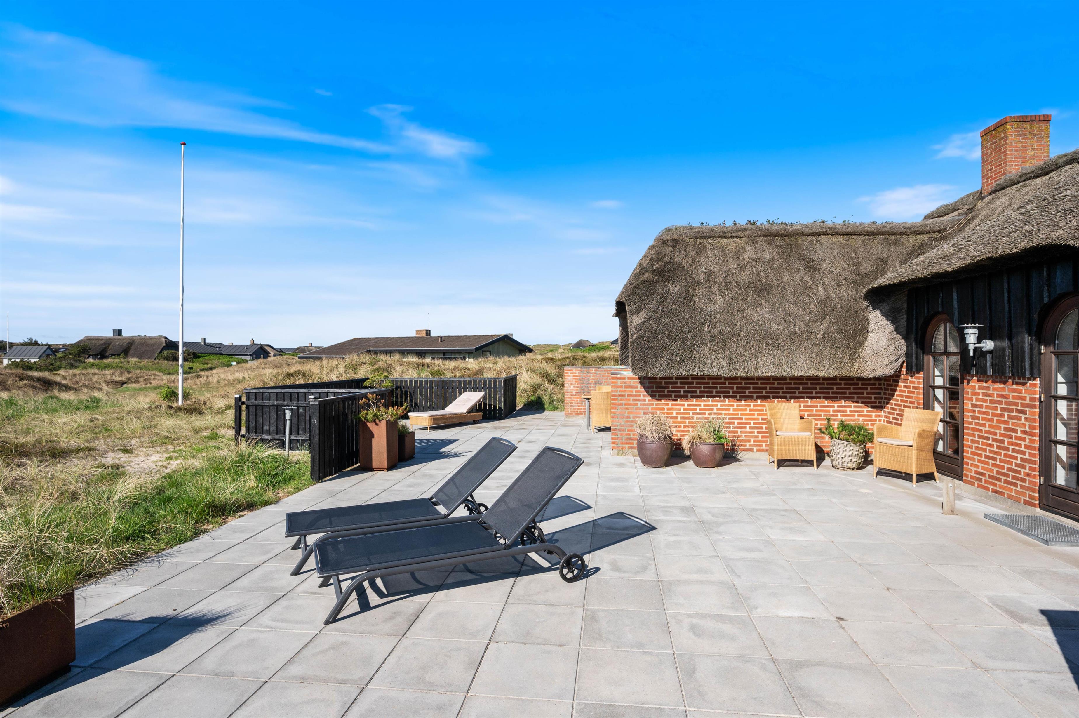 Det brusende Vesterhav befinder sig 500 meter fra feriehjemmet og inviterer til lange spadsereture langs vandet og bølgebadning i årets lune måneder. Fra klittoppen kan I også overvære de smukke solnedgange helt tæt på, når dagen går på hæld.