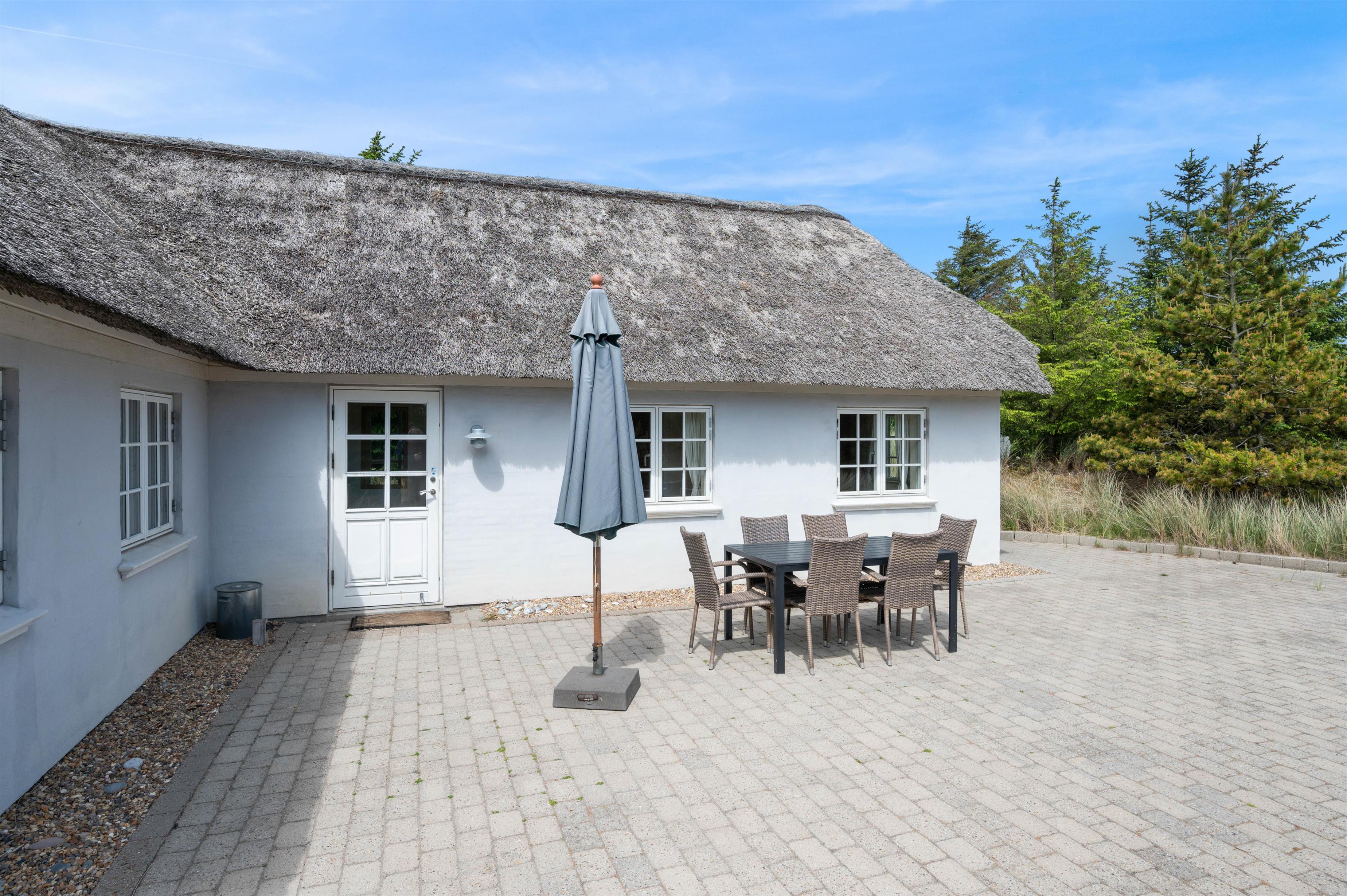 Trænger I til at få en pause fra hverdagens strabadser? Så er sommerhuset på Frans Julius Vej 52 et oplagt valg. I det stråtækte sommerhus med sauna kan I holde en afslappende ferie i rolige omgivelser for enden af en stille stikvej. Vesterhavet og stranden ligger kun 850 meter fra feriehuset. Jeres hund er selvfølgelig også velkommen. Ankommer I med el-bil, har i mulighed for at lade direkte ved sommerhusets ladestander. OBS. Husk eget ladekabel.