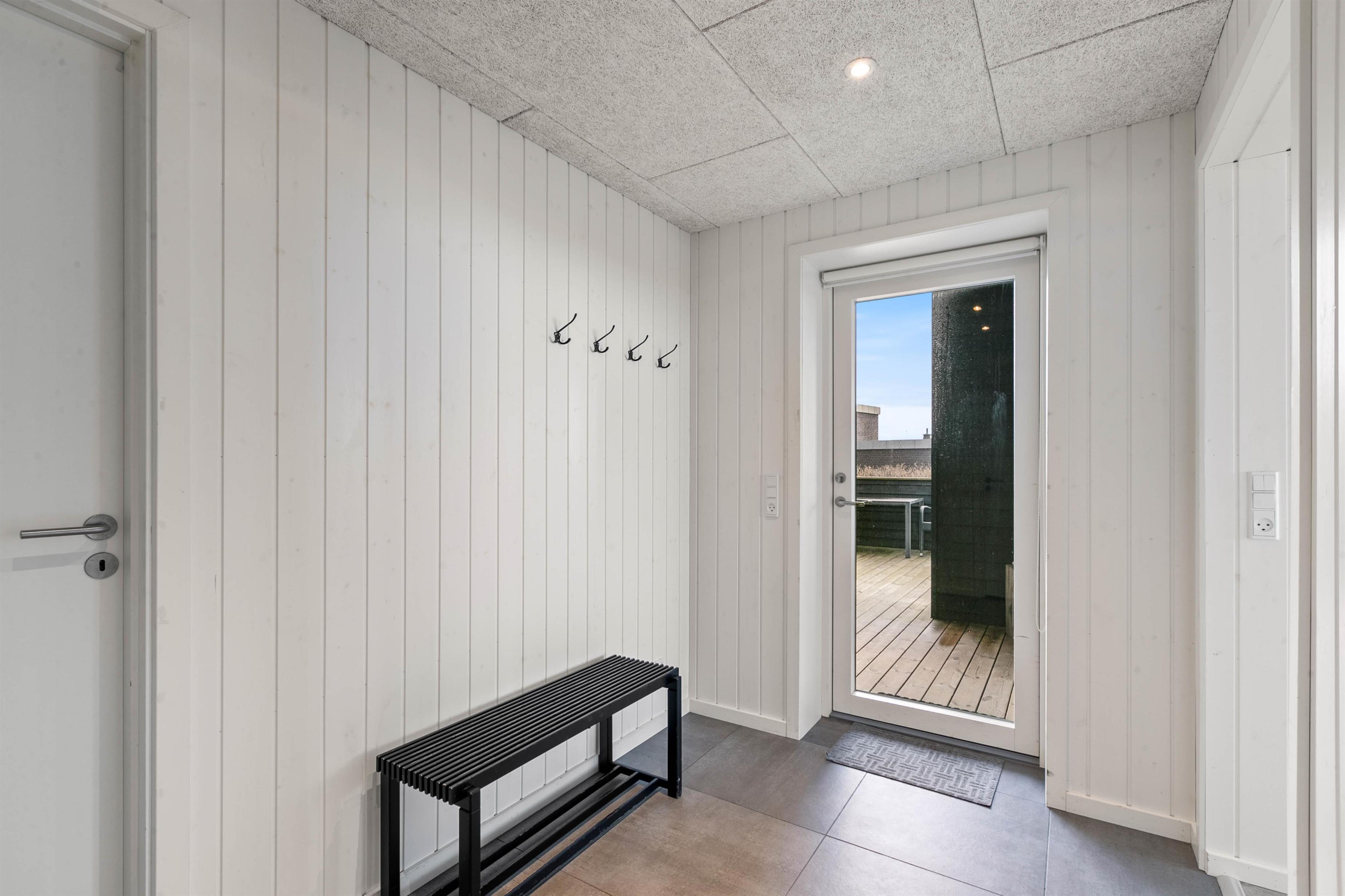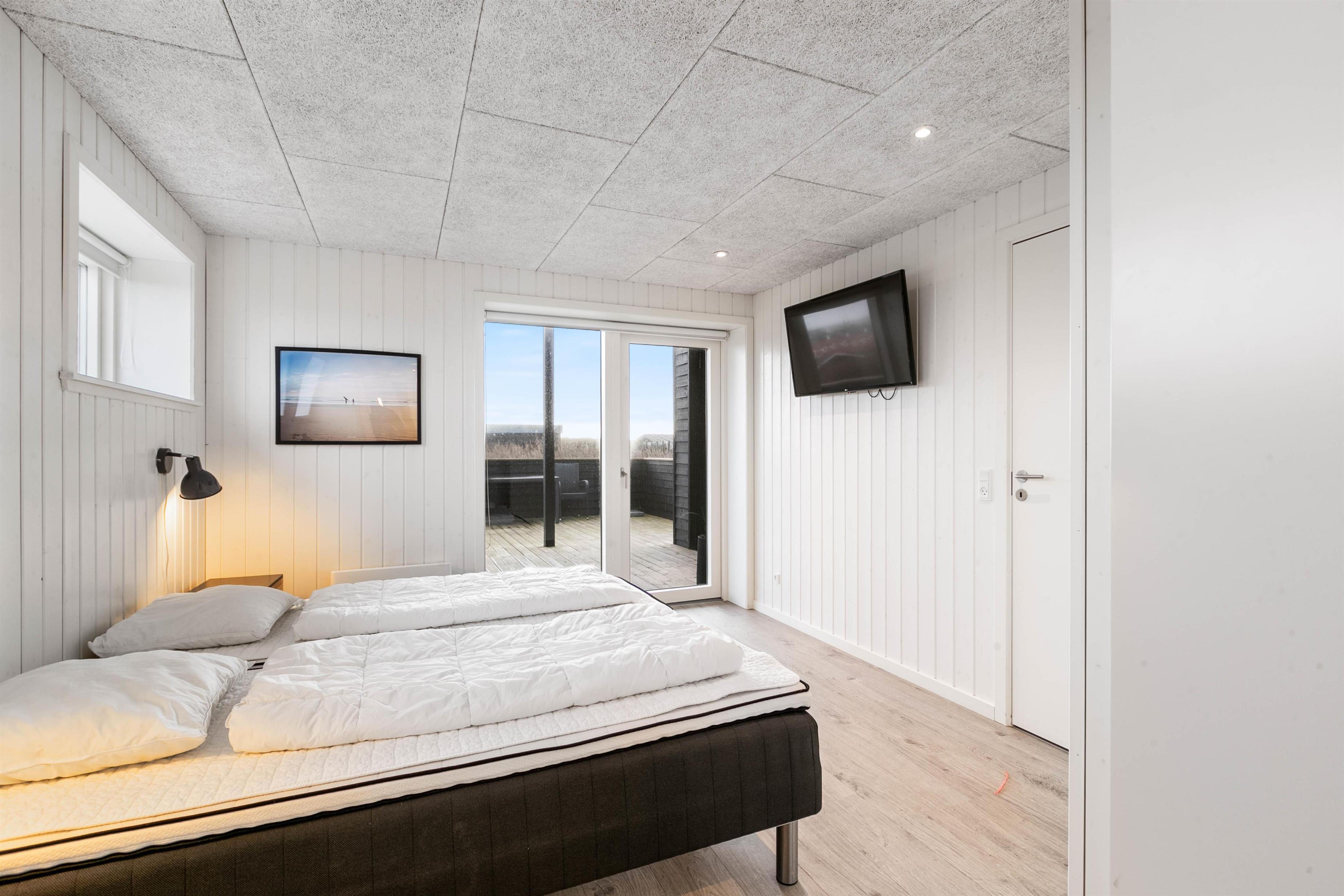 Kun 150 meter fra Vesterhavet ligger denne perle af et feriehus og venter på jer. Det femstjernede feriehus har i 2019 fået en totalrenovering, og indretningen byder på lyse og lækre materialer, flere terrasser med wellness - nyd en tur i den udendørs spa og i saunahuset. Beliggenheden er desuden helt fantastisk; ugenert og med både havkig og udsigt over Ringkøbing Fjord og Søndervig.