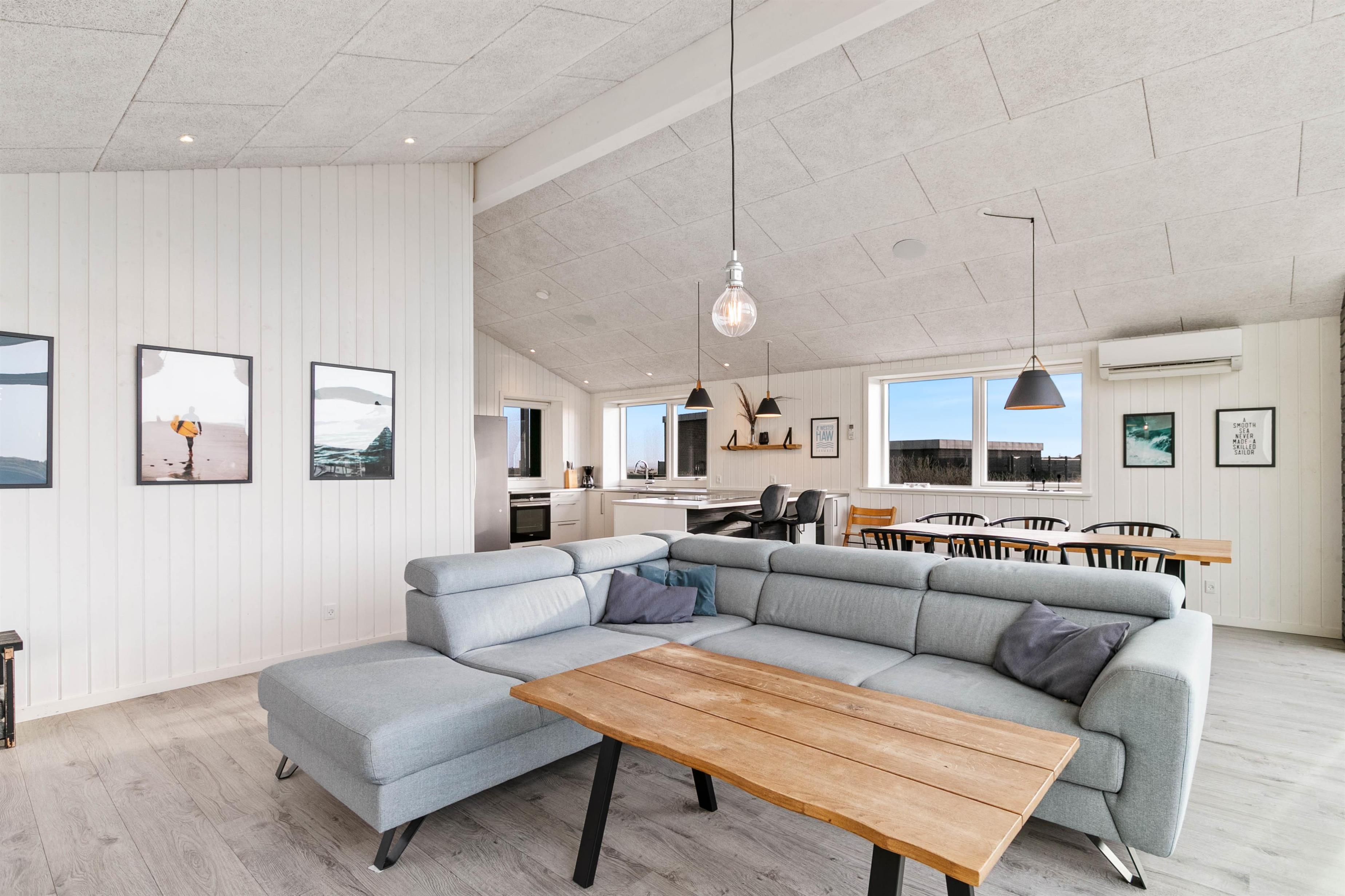 Store vinduer åbner det rummelige feriehjem endnu mere op og lukker den smukke natur indenfor, så I ligegyldigt vind og vejr kan nyde det unikke klitlandskab og den fantastiske udsigt.