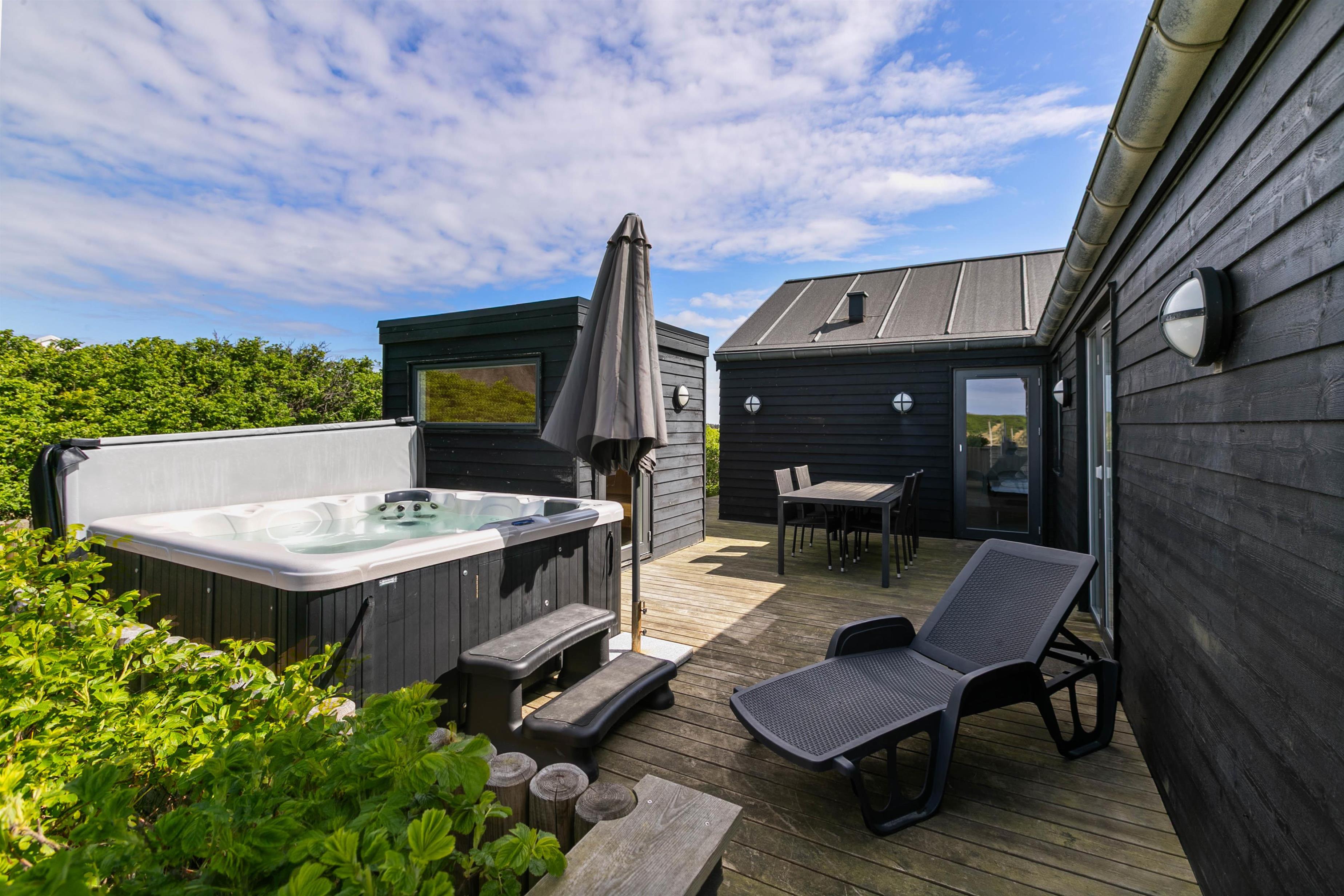 Med til feriehuset hører flere lækre terrasser til også en lukket terasse, så I trygt kan slappe af imens børnene leger rundt. Både havemøbler, liggestole og grill står klar til at give jer de skønneste feriestunder i den varme sommersol. Også i den kolde årstid er der grund til at søge ud og tilbringe tid på terrassen: Her har I nemligt jeres helt egen wellness-oase med både udendørs spa og et super lækkert saunahus!