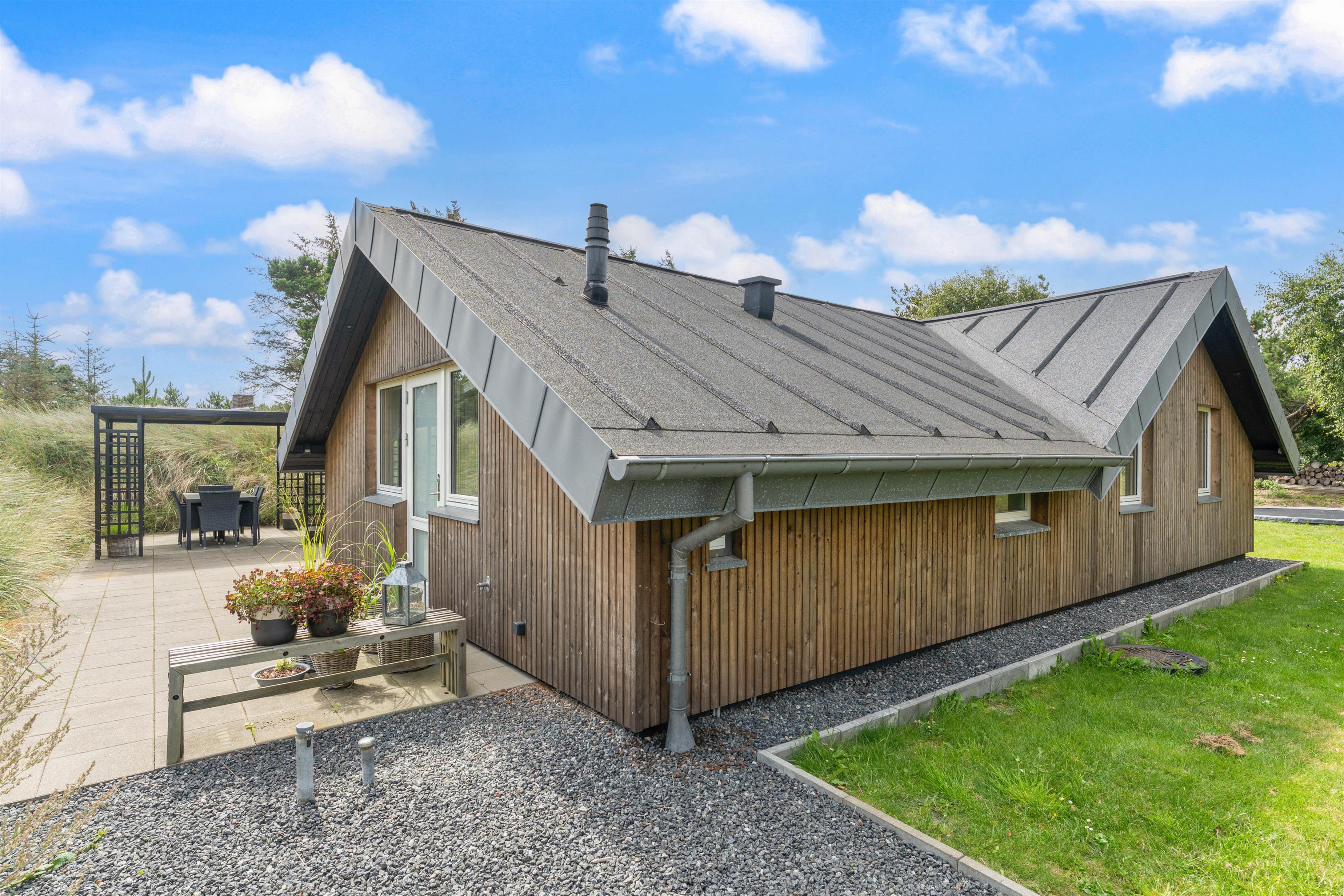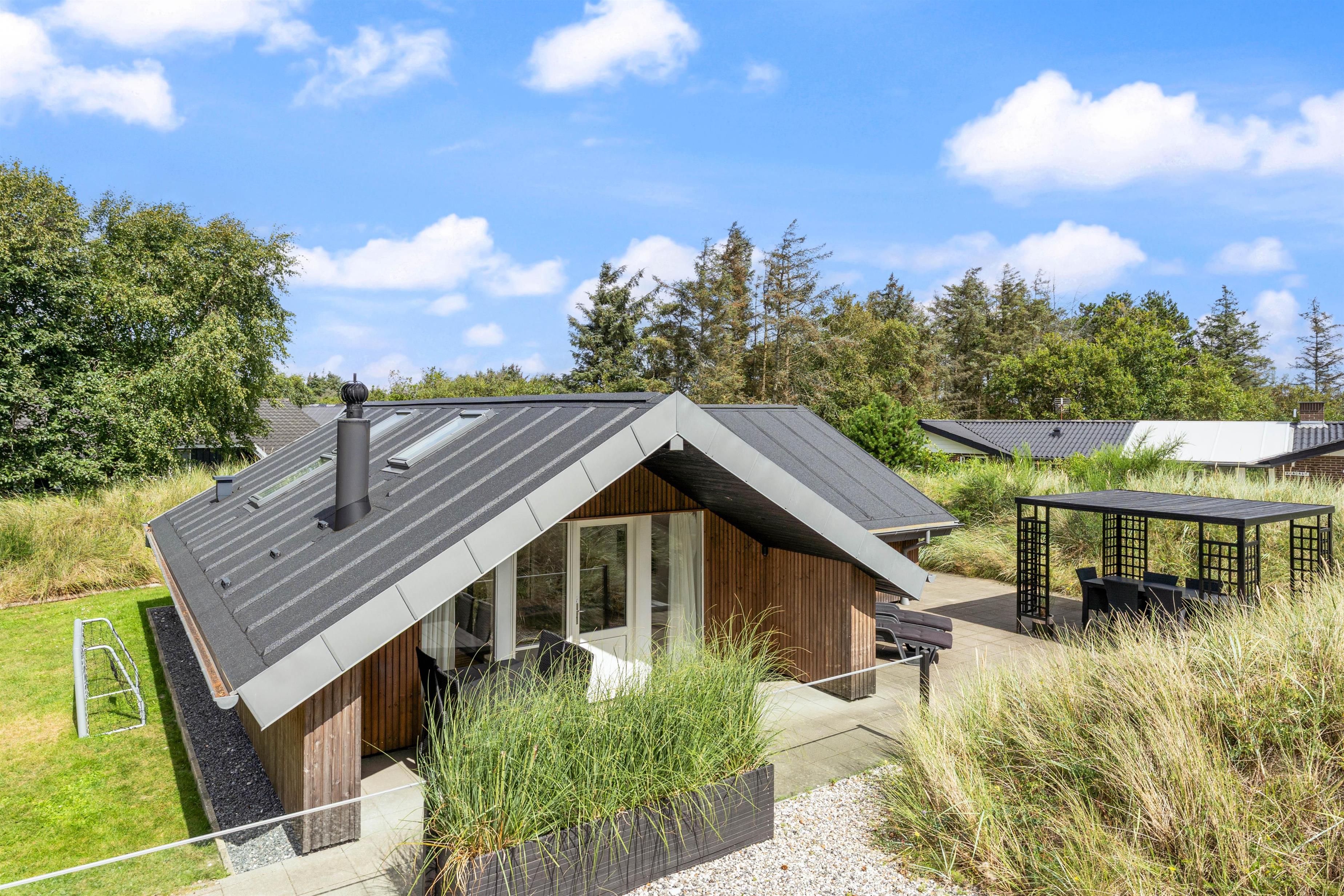 Vil I holde en afslappende ferie ved Vesterhavet i moderne omgivelser? Så skal I tage et kig på dette lækre sommerhus på Hjelmevej 15 i Søndervig. Dette skønne sommerhus inviterer til en dejlig ferie i skønne Vestjyske omgivelser for hele familien. Her er det også tilladt at medbringe op til 2 hunde. Den velholdte have er både indrettet med trampolin og fodboldmål.