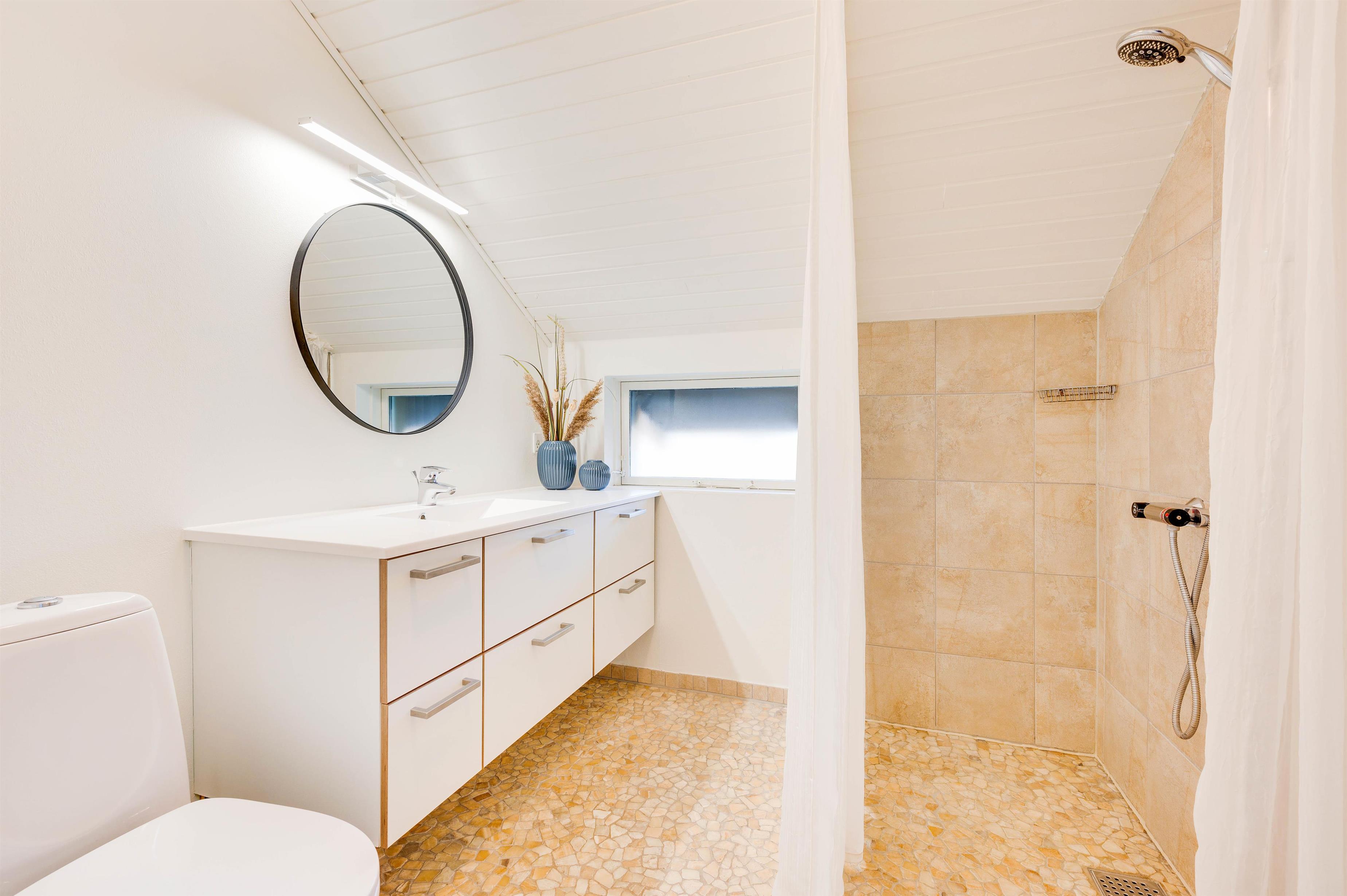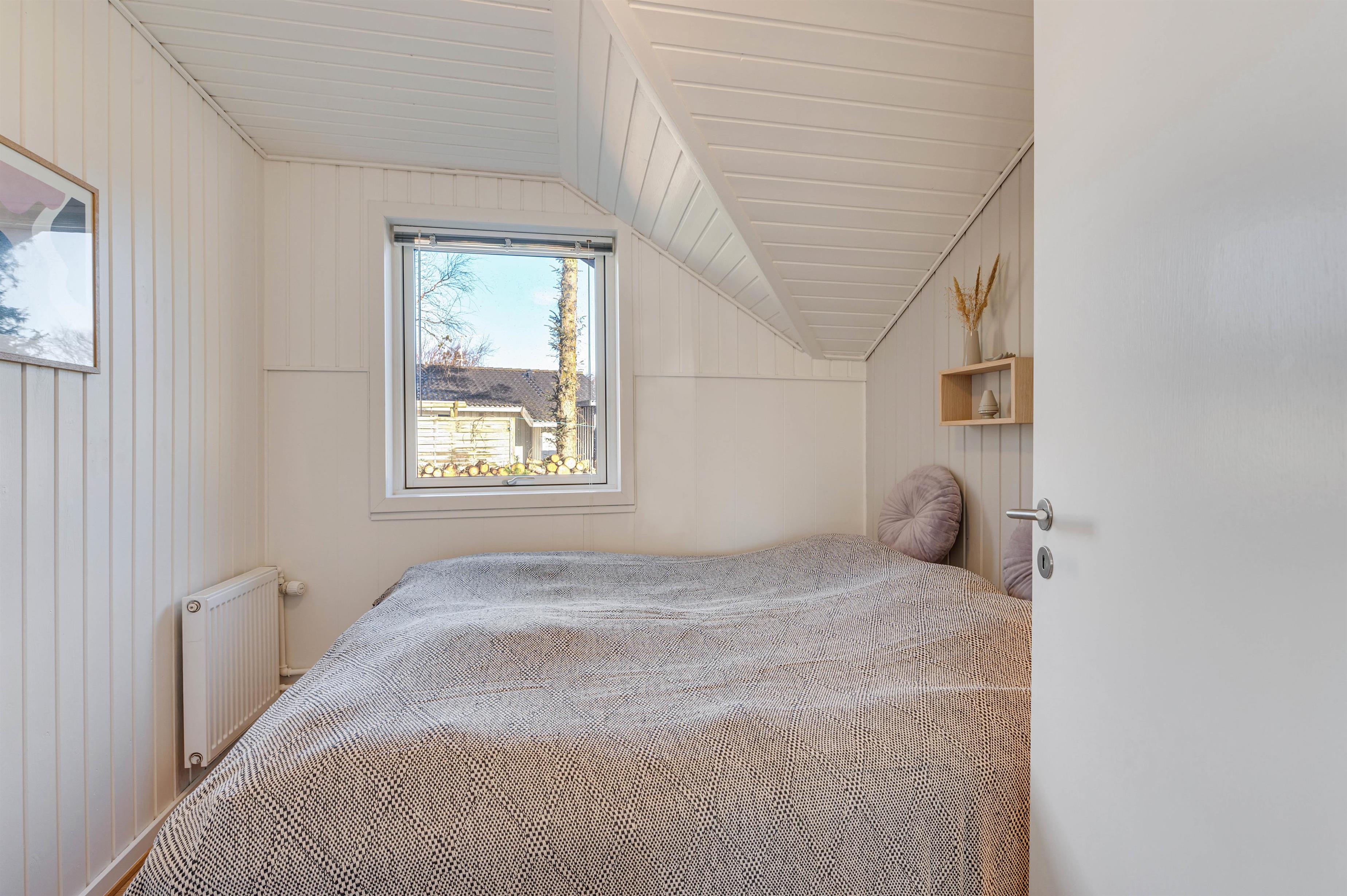 Ud over den lækre opholdsstue er sommerhuset indrettet med 3 gode soveværelser. Desuden har sommerhuset et badeværelse med gulvvarme, så ingen fryser tæerne fra morgenstunden.