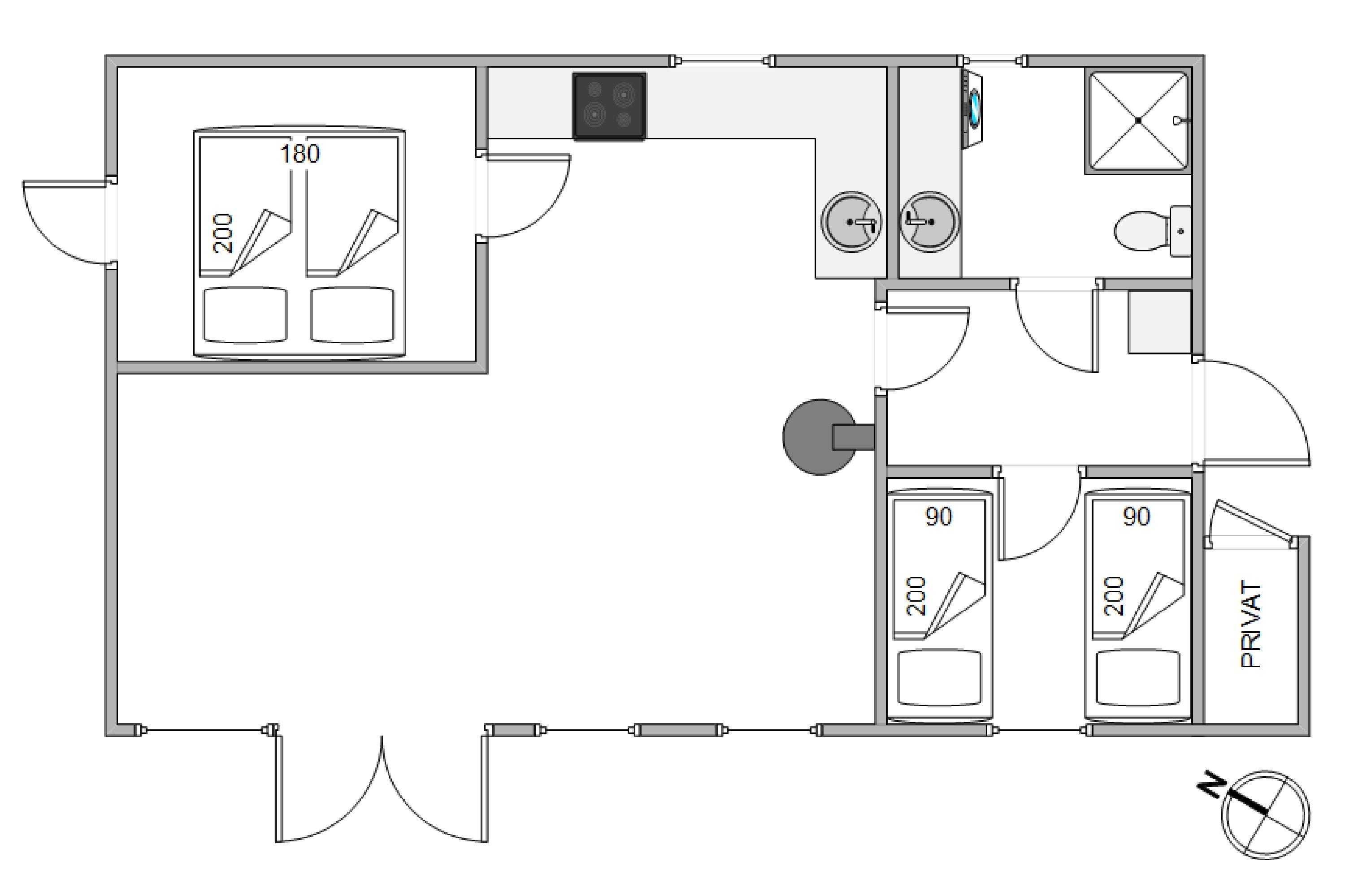 Der bliver desuden god tid til at komme ned i gear og lade batterierne op; feriehuset er nemlig både udstyret med opvaskemaskine i køkkenet og vaskemaskine på badeværelset, så her kan I nyde et dejligt ophold, hvor det også er gjort nemt for jeg at klare de huslige pligter. I stuen finder I også en energibesparende luft-til-luft varmepumpe, der er med til at skabe en god indetemperatur.