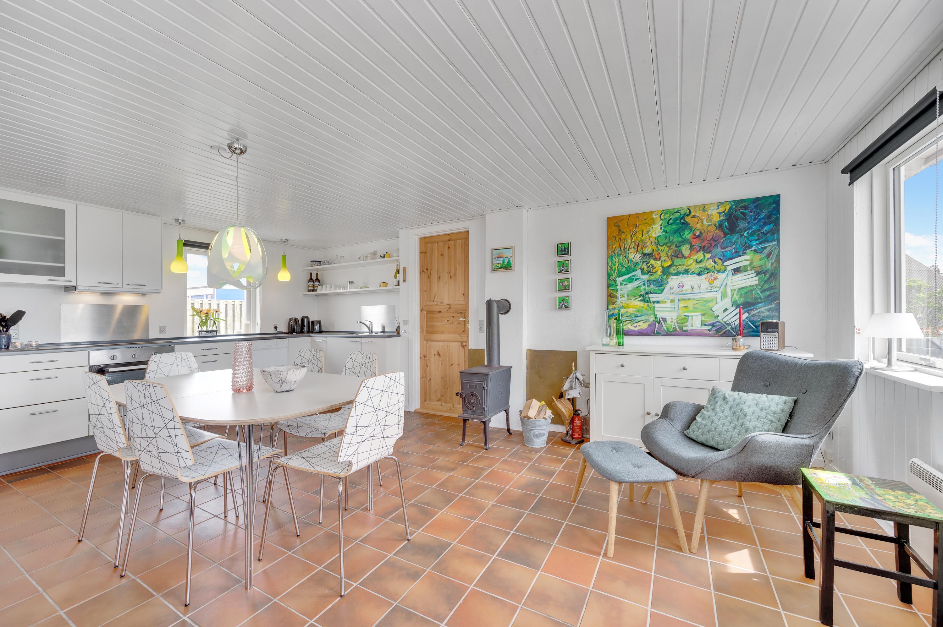 Det hyggelige sommerhus har i 2021 gennemgået en renovering, og I vil hurtigt falde til i de lyse og venlige omgivelser. I det åbne køkkenalrum med stue er der lagt op til masser af samvær og afslapning med brændeovnens knitrende ild som stemningssætter. Grundet den gode planfordeling, er sommerhuset udstyret med to fine og bekvemmelige soveværelser, hvoraf det ene er med en dobbeltseng, og det andet er med to enkeltsenge.