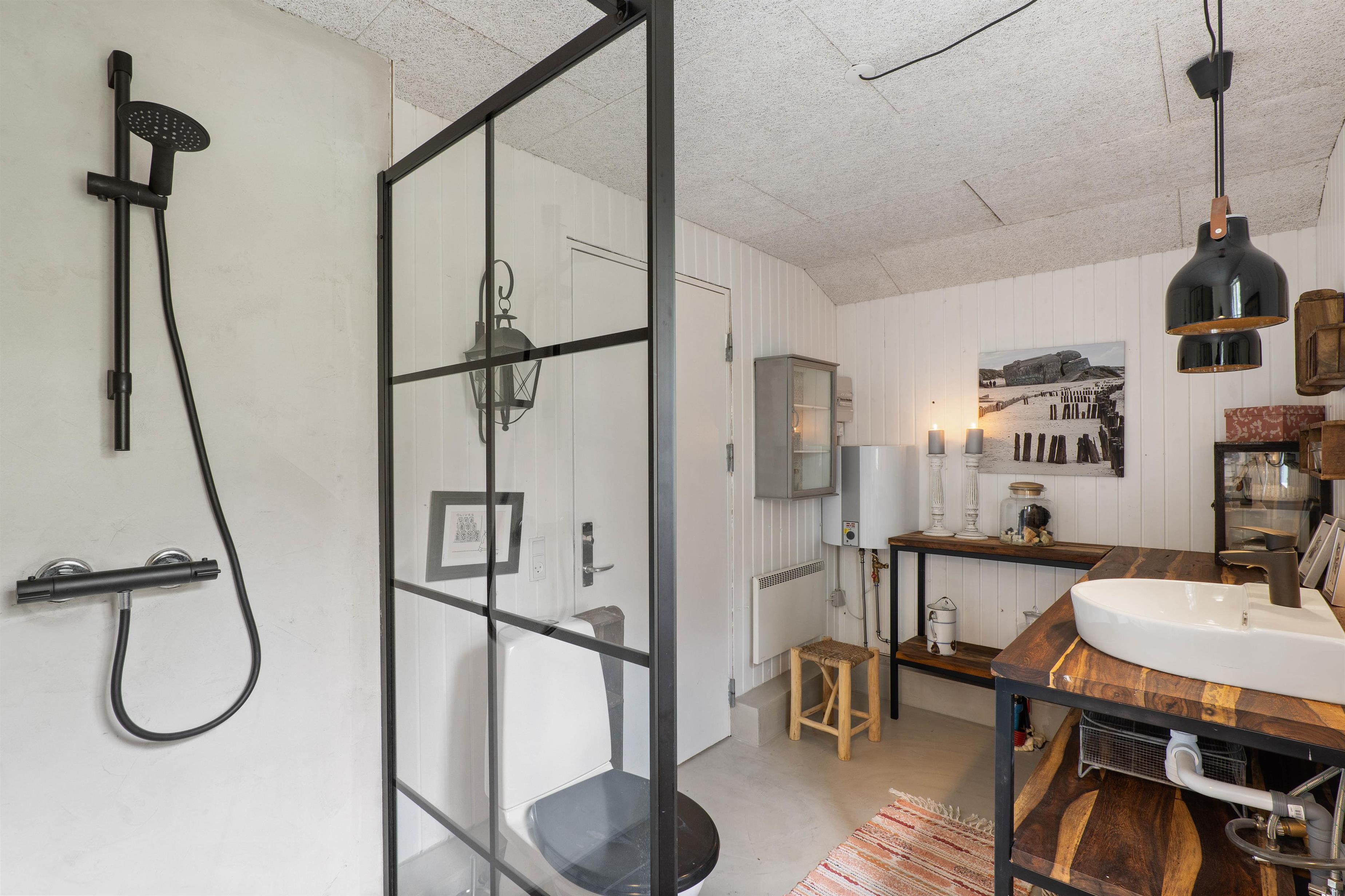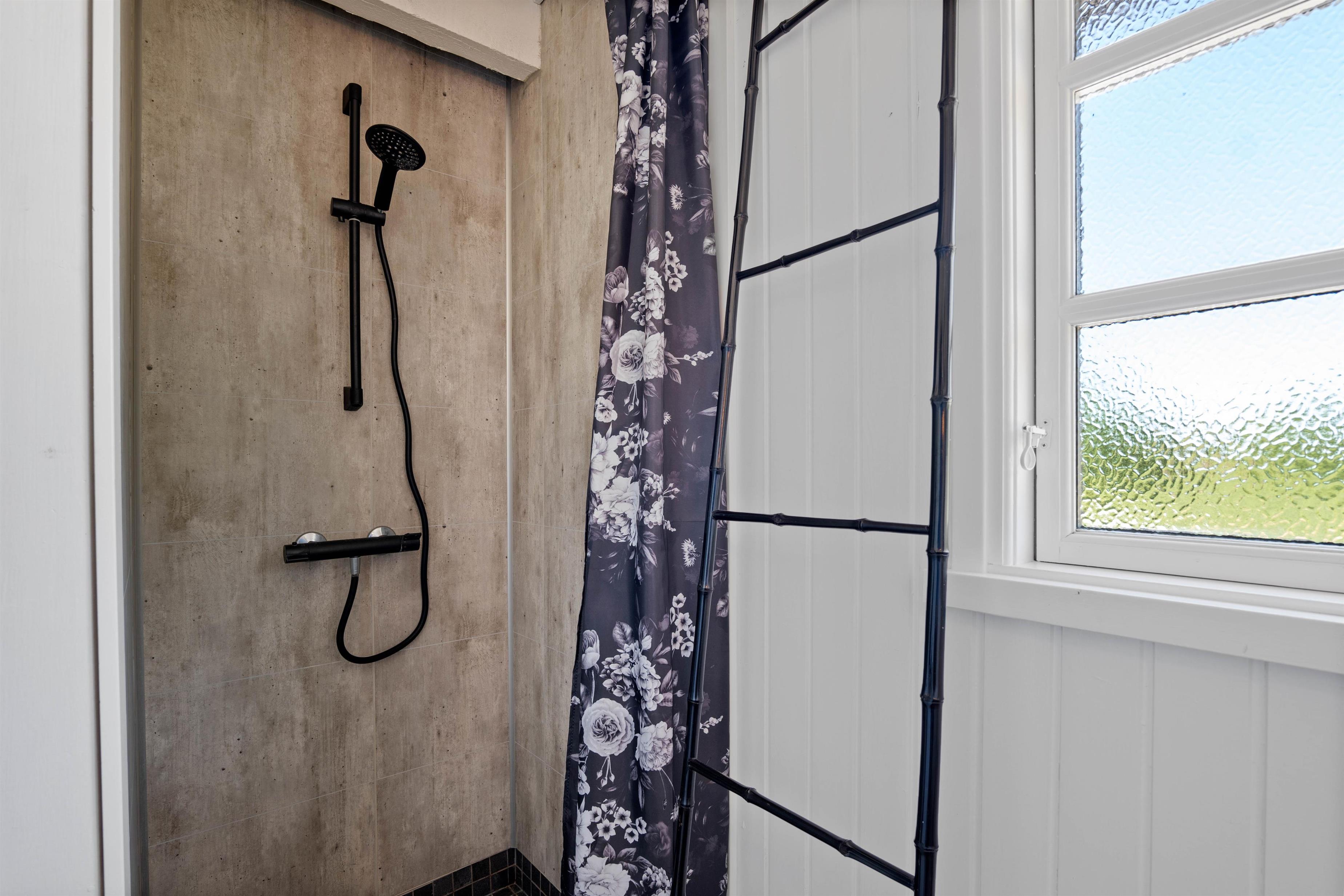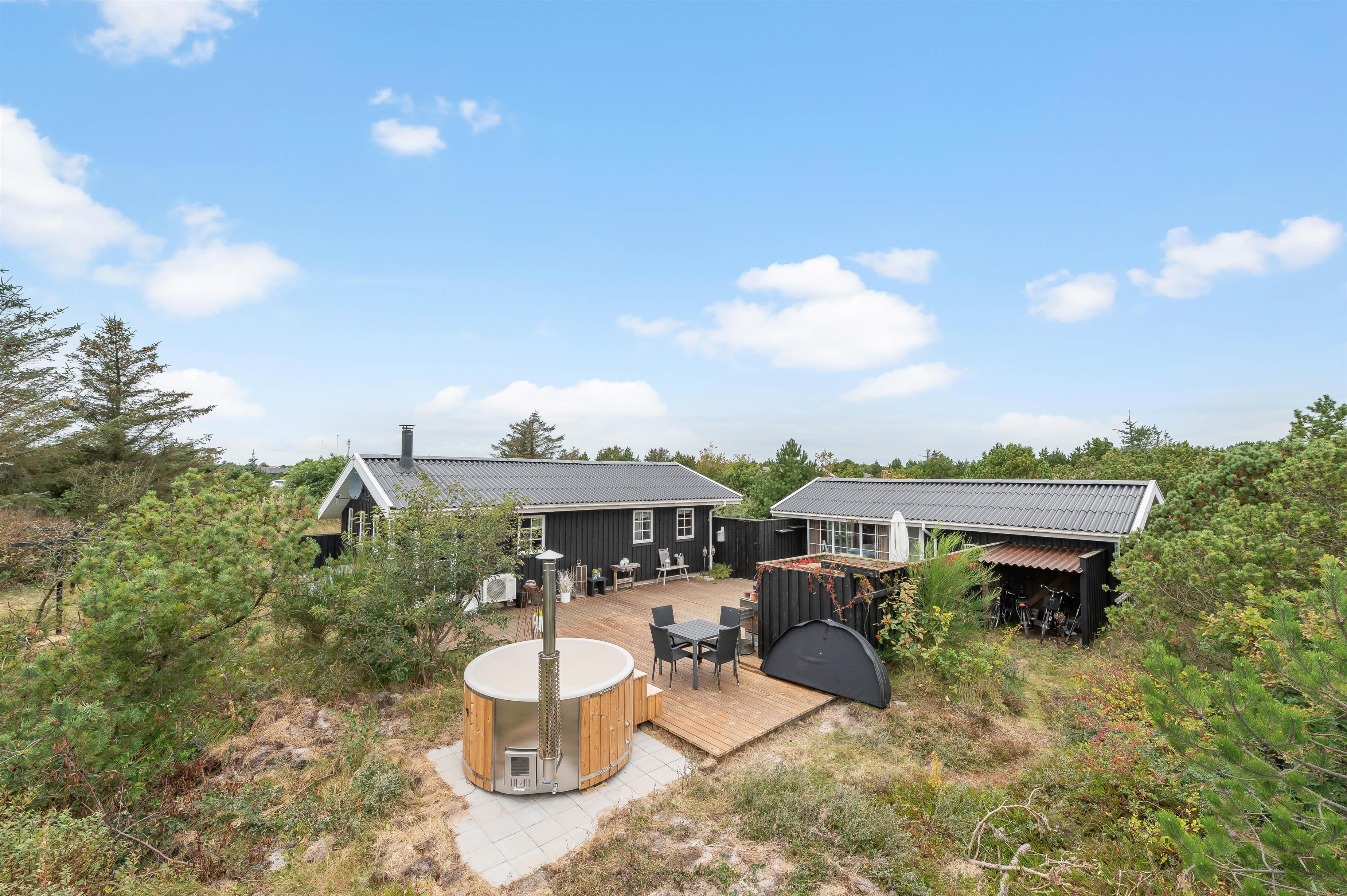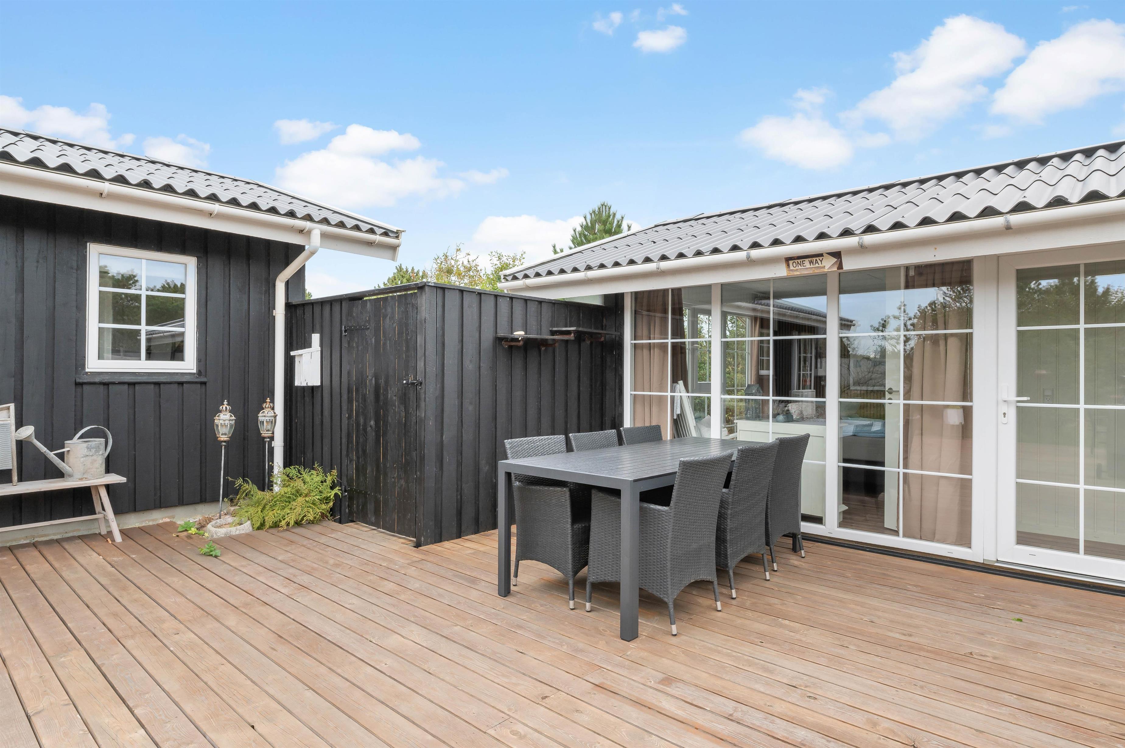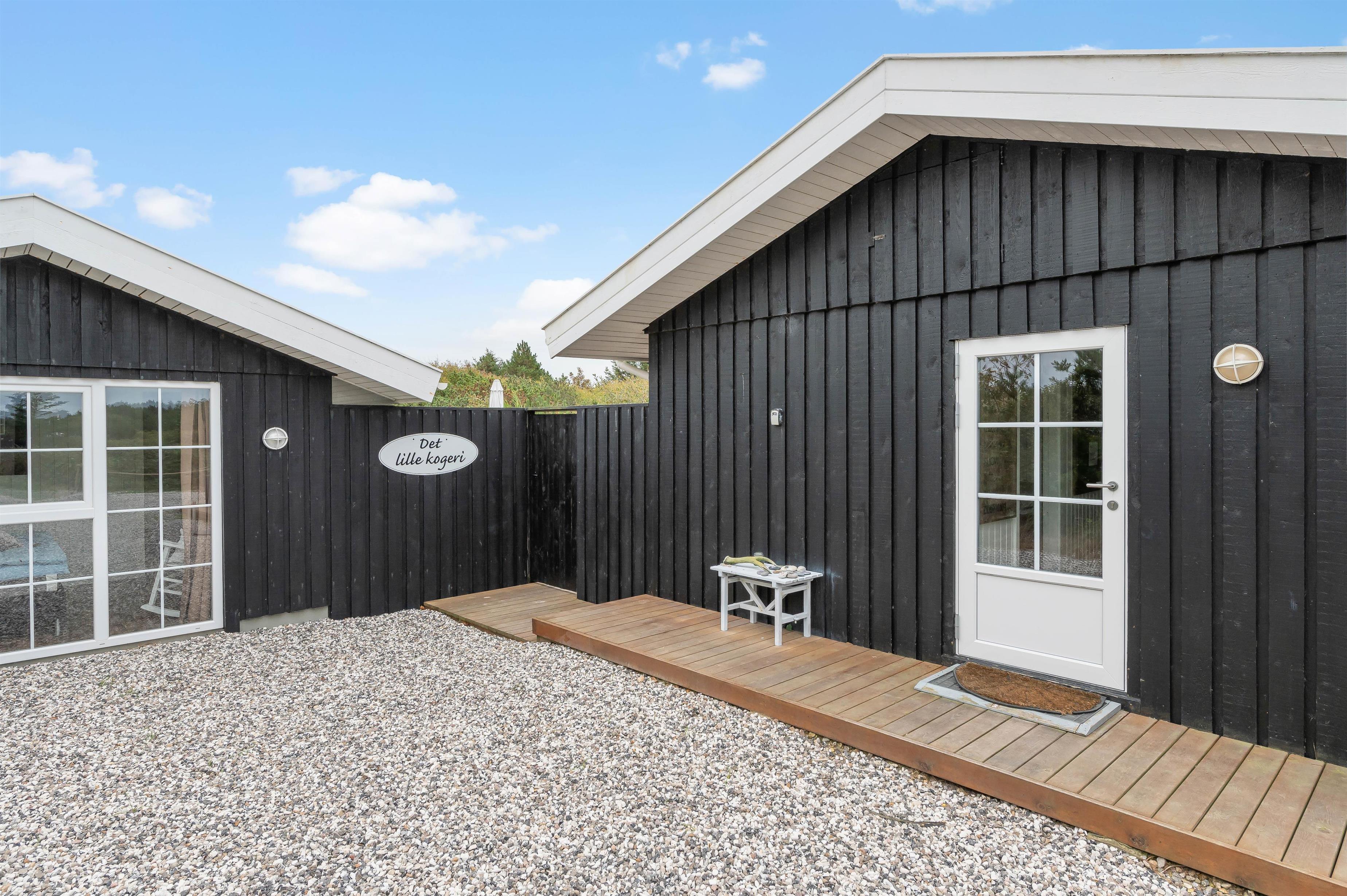 Sommerhuset har yderligere en nord- vestvendt terrasse, hvor aftenkaffen kan nydes. Det er derfor rig mulighed for at finde læ på én af de to terrasser, og I kan altid finde en dejlig hyggekrog. Hvis I er klar til en frisk dukkert, så ligger Vesterhavets brusende bølger bare 1250 meter fra huset. Tæt på findes en put and take sø for de, der ønsker at fiske. Det her er et rigtig dejligt, charmerende og yderst velholdt sommerhus, der har alt, hvad der skal til for at få god ferie.