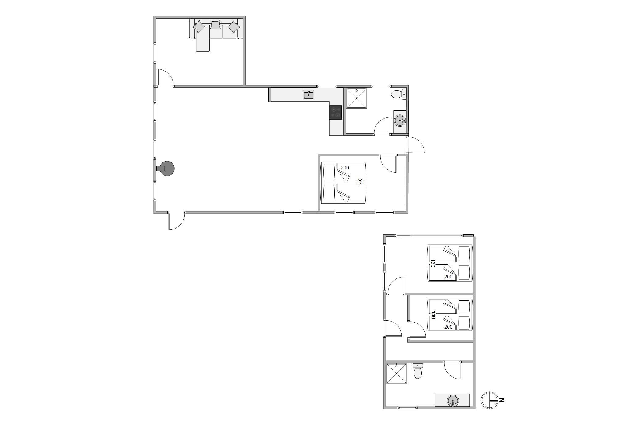 Sommerhuset har et dejligt soveværelse samt et værelse med en sovesofa. Derudover er der i annekset yderligere 2 soveværelser. Yderligere har sommerhuset to dejlige badeværelser, hvor det ene kan findes i annekset – Dog er der kun gulvvarme på badeværelset i selve sommerhuset. I annekset er der samtidig kræset for dig som gæst – fyldt med en god stemning og rigtig god plads.