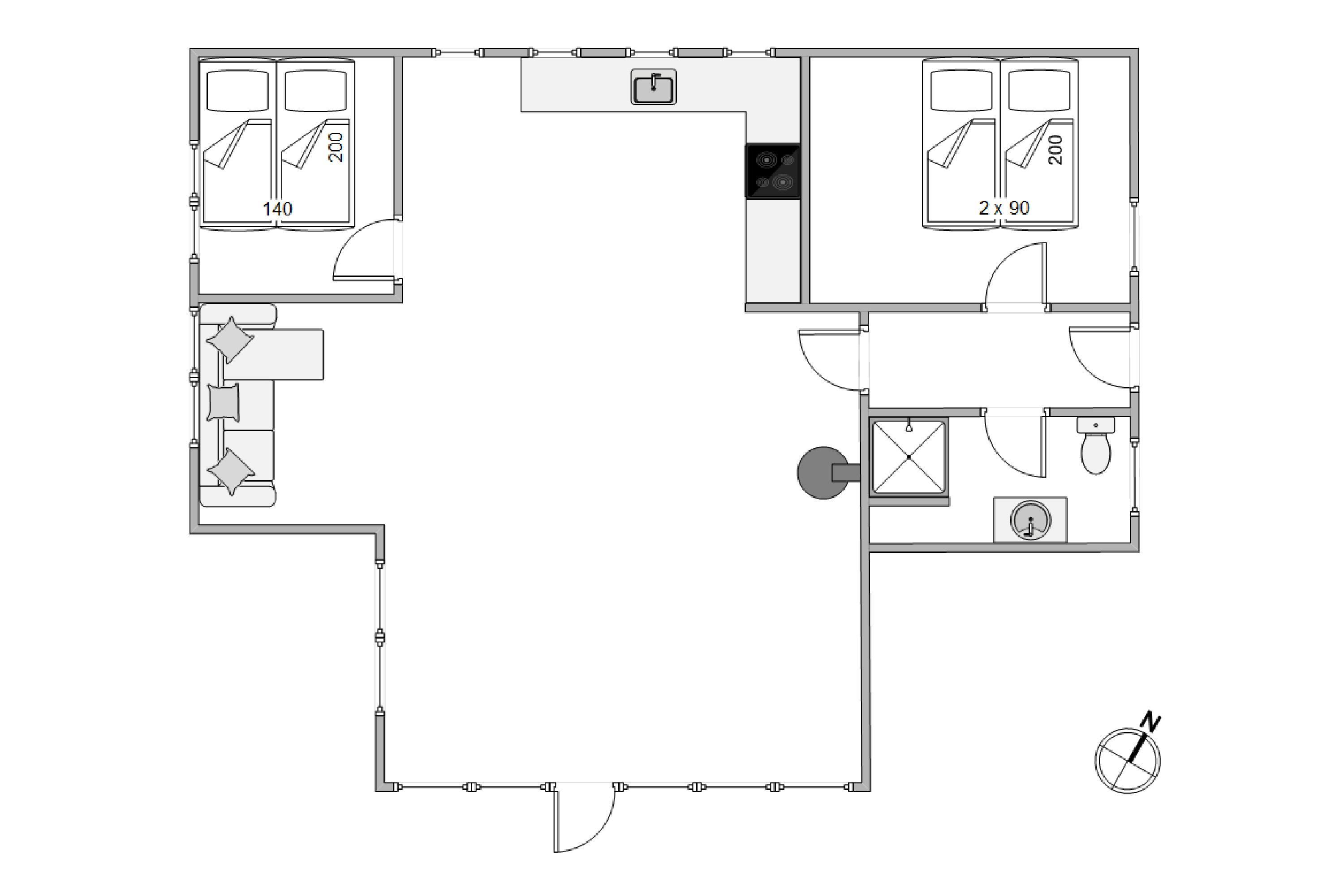 Sovepladserne i sommerhuset er fordelt over to gode soveværelser med dobbeltsenge og en sovesofa i et hyggeligt hjørne i stuen. I de to soveværelser er der i 2020 blevet lagt nye lyse trægulve, som er med til at fuldføre den lækre og lyse indretning i sommerhuset.