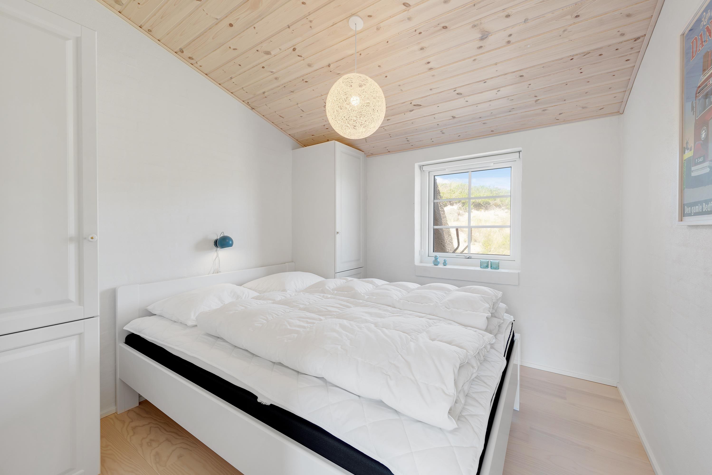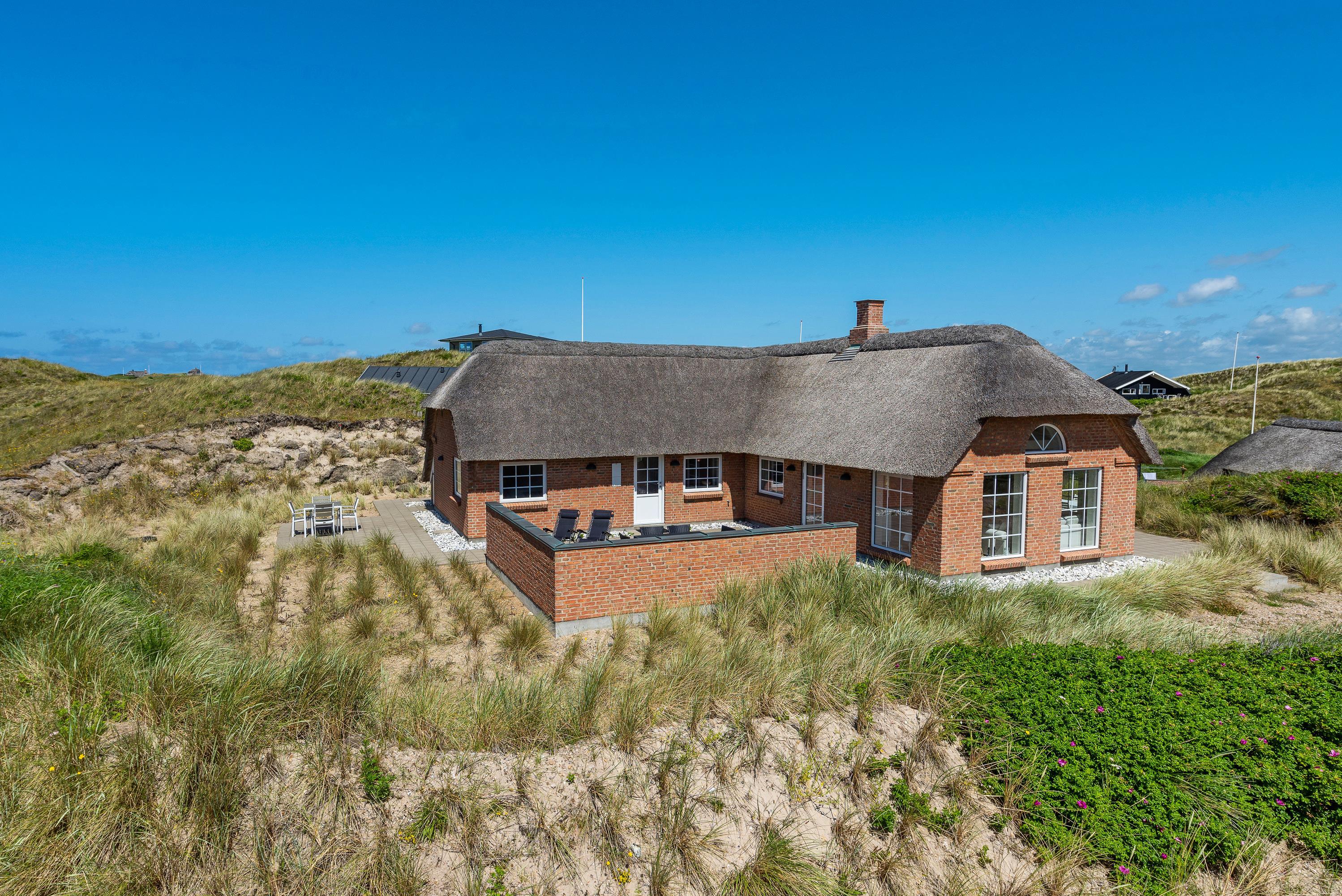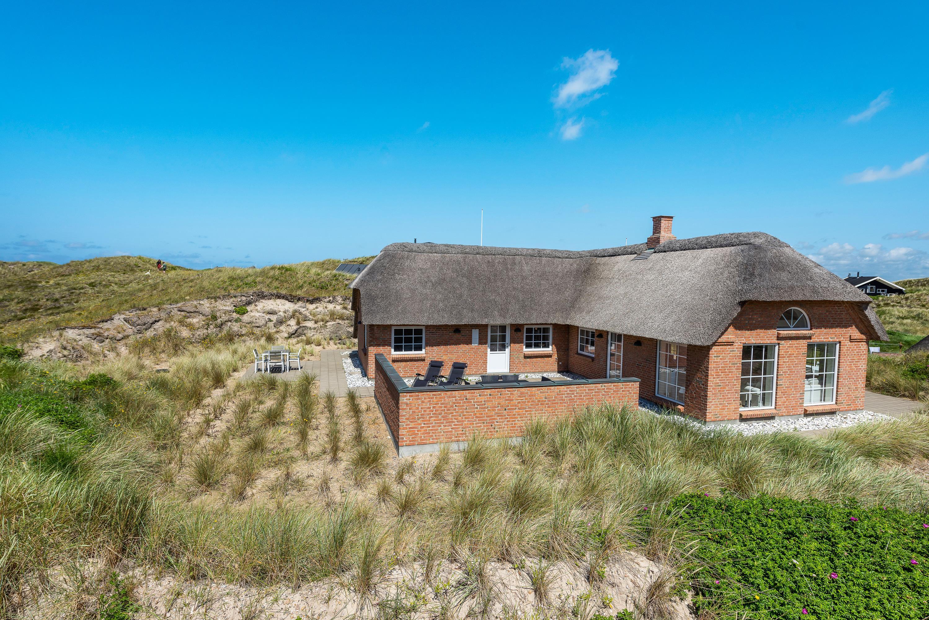 I første klitrække, blot 150 meter fra den hvide sandstrand, ligger dette flotte sommerhus til 6 personer. I vil straks falde til i den indbydende indretning, der blandt andet gemmer på et lækkert wellness-badeværelse med sauna og spabad. Fra terrasserne er der en herlig udsigt til klitlandskabet, og Søndervigs centrum ligger kun 10 minutters gang væk