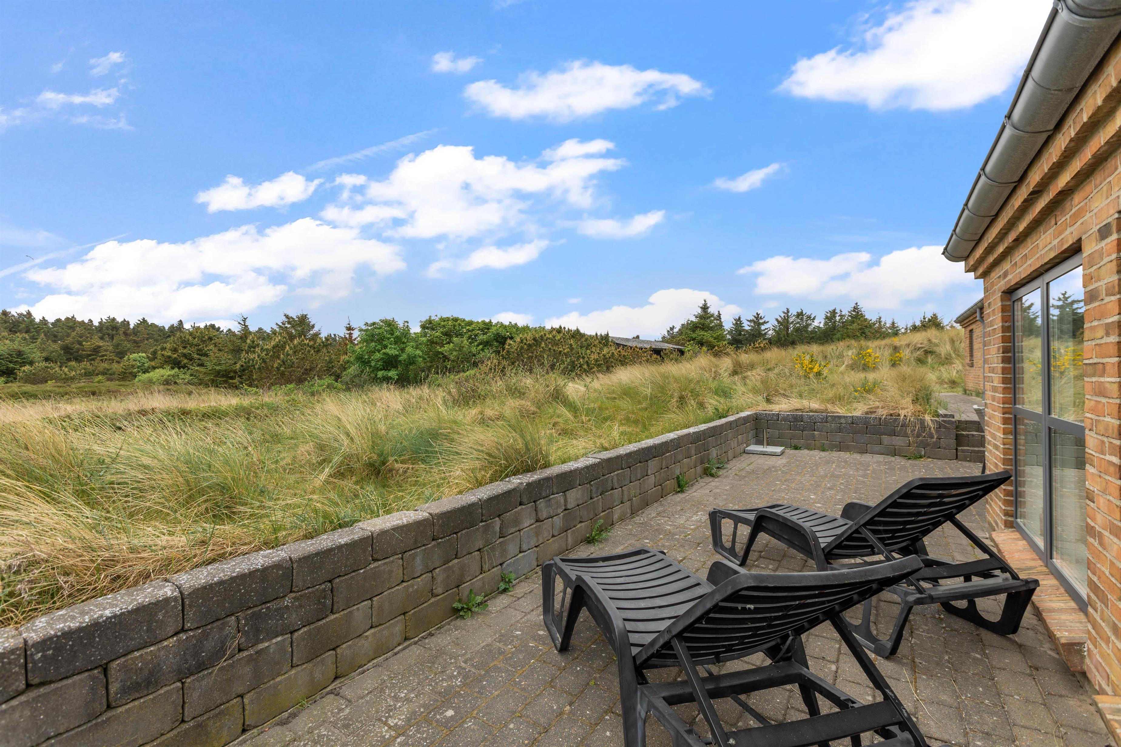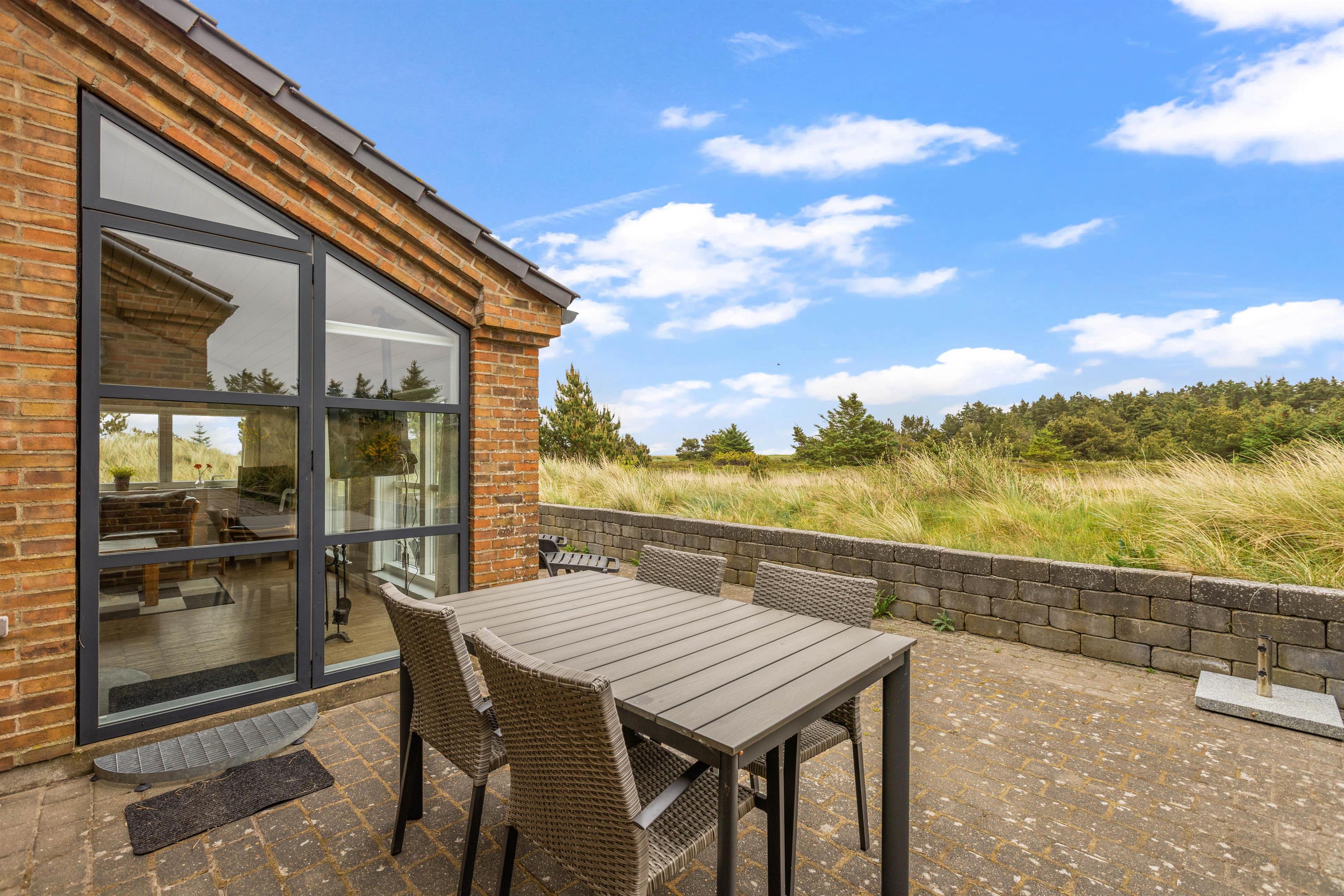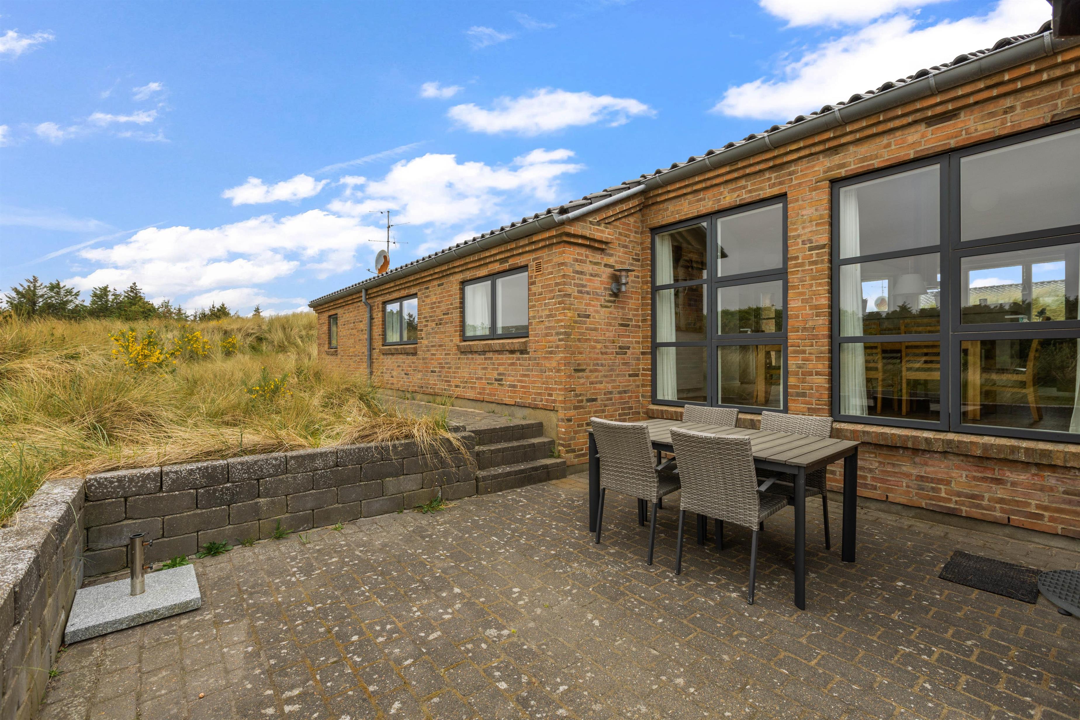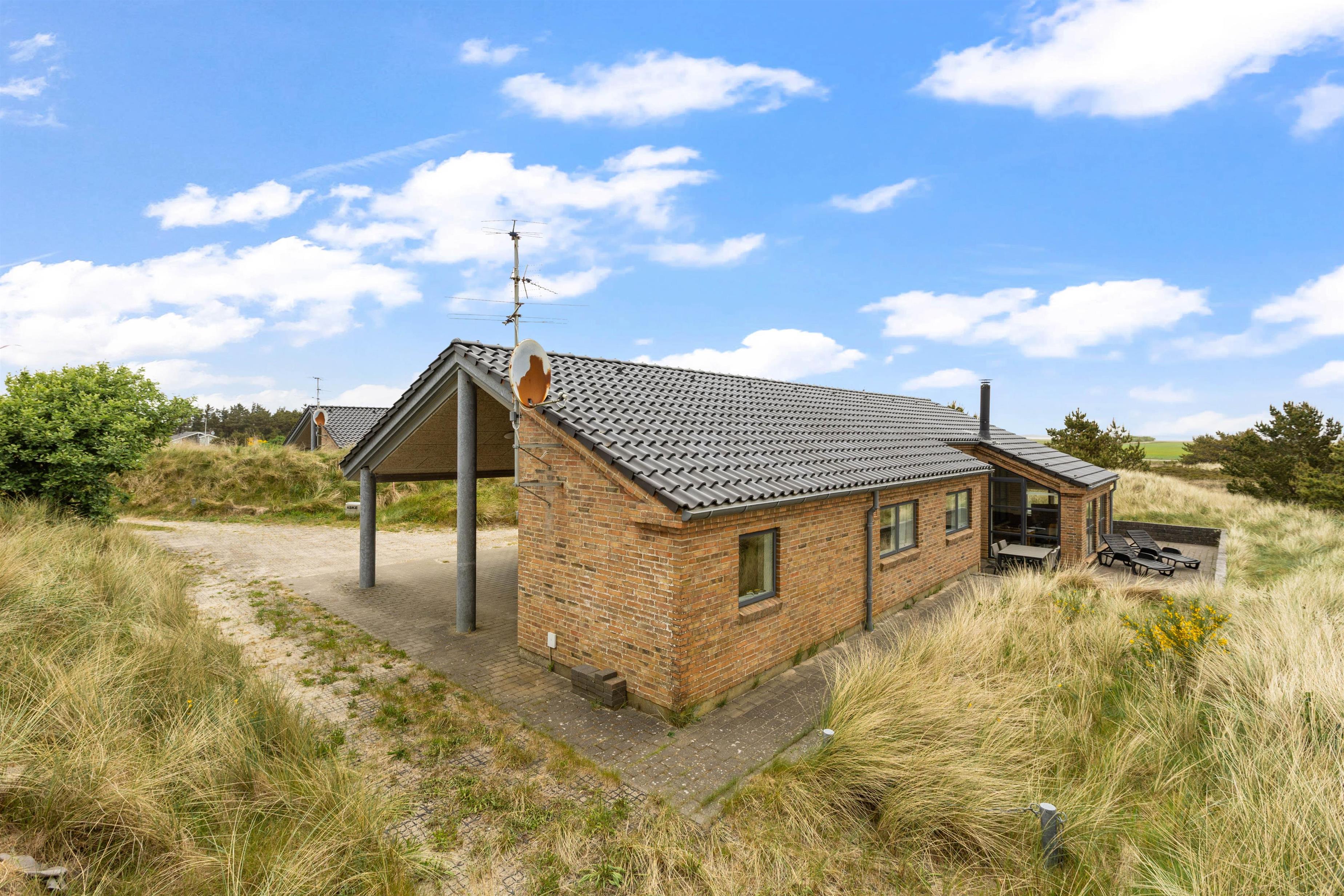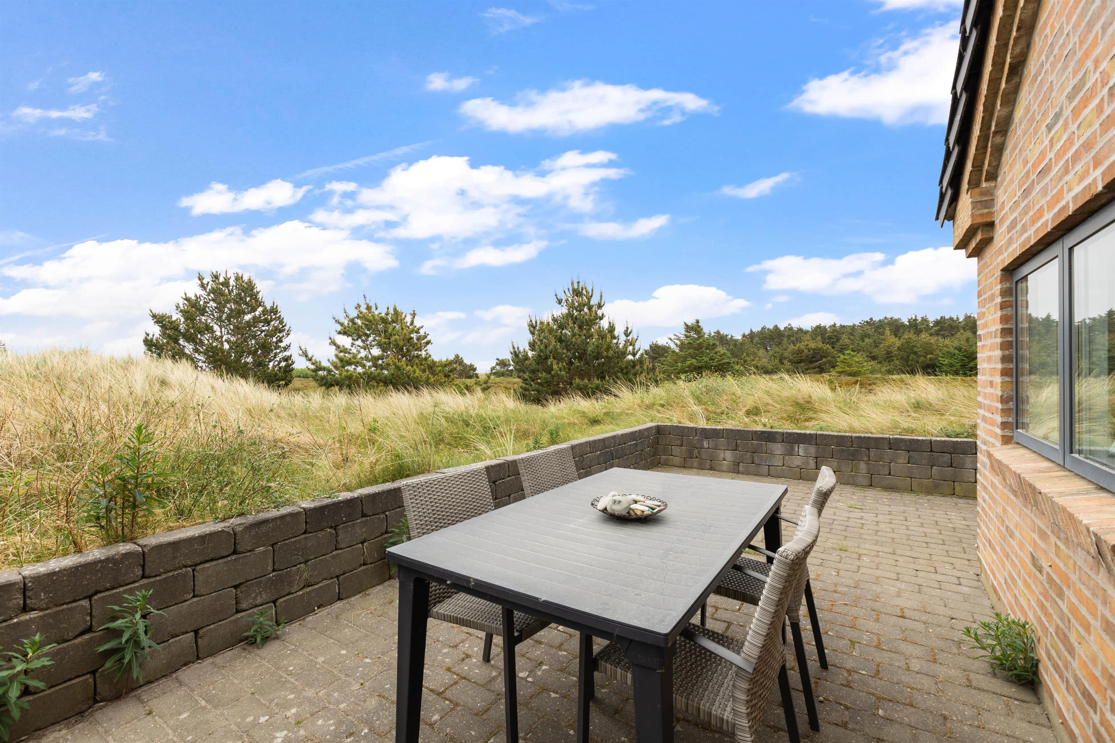 Dette sommerhus i Søndervig byder på en stor naturlig grund på 3000m2, hvor I kan nyde udendørslivet i fulde drag. Åben og lukket terrasse er udstyret med havemøbler og en grill, så I kan tilbringe hyggelige aftener med madlavning og samvær under åben himmel.
