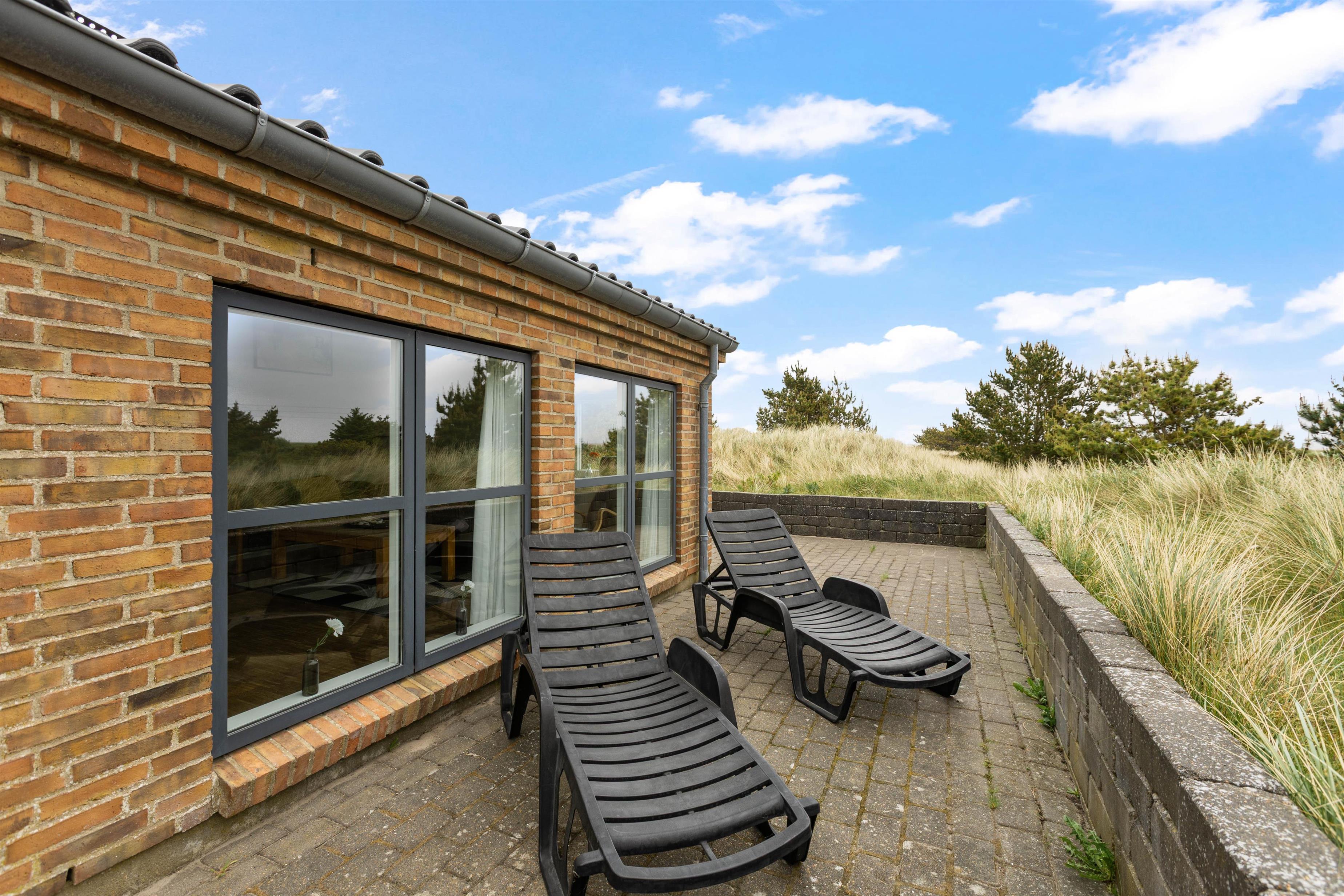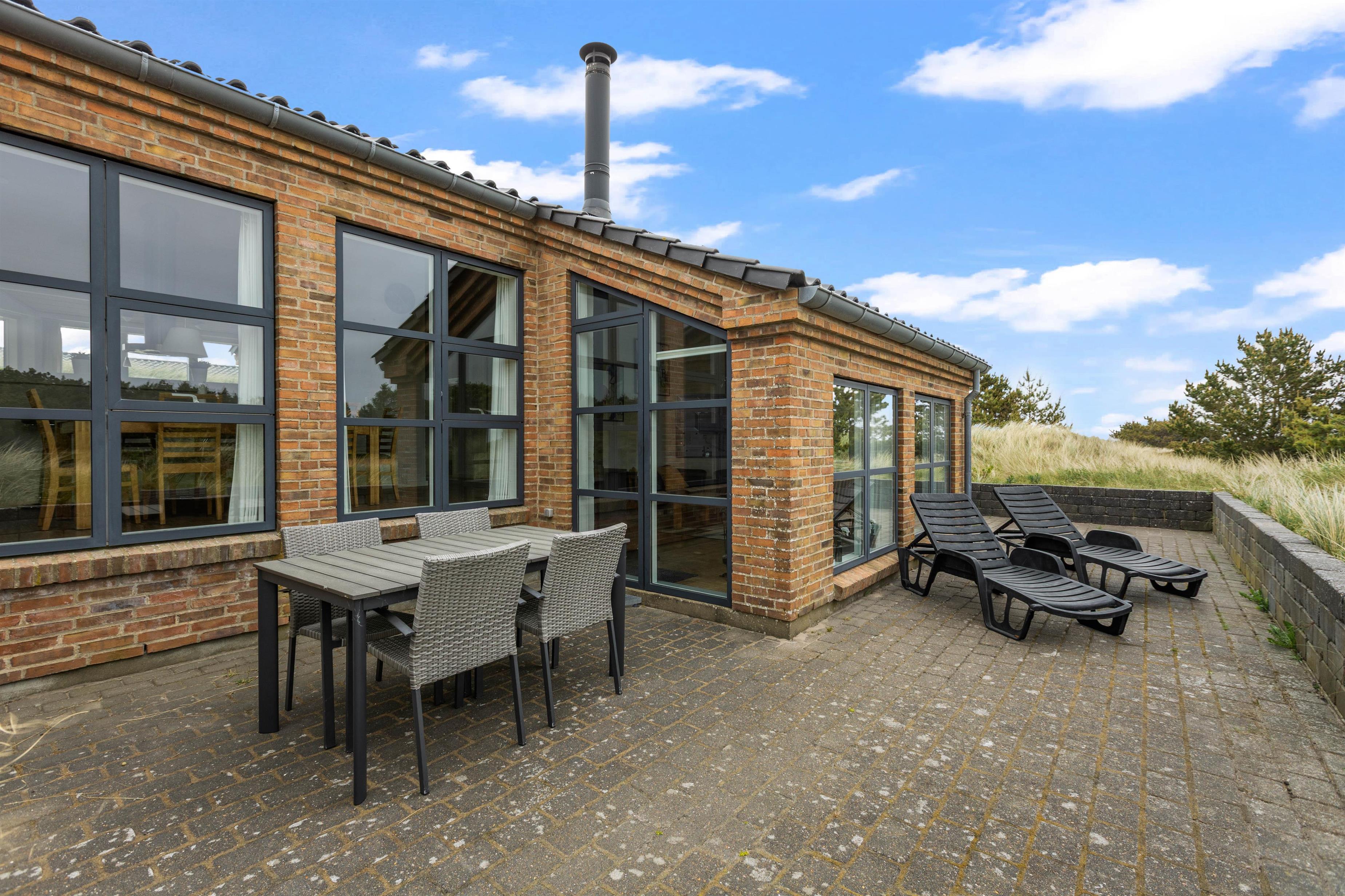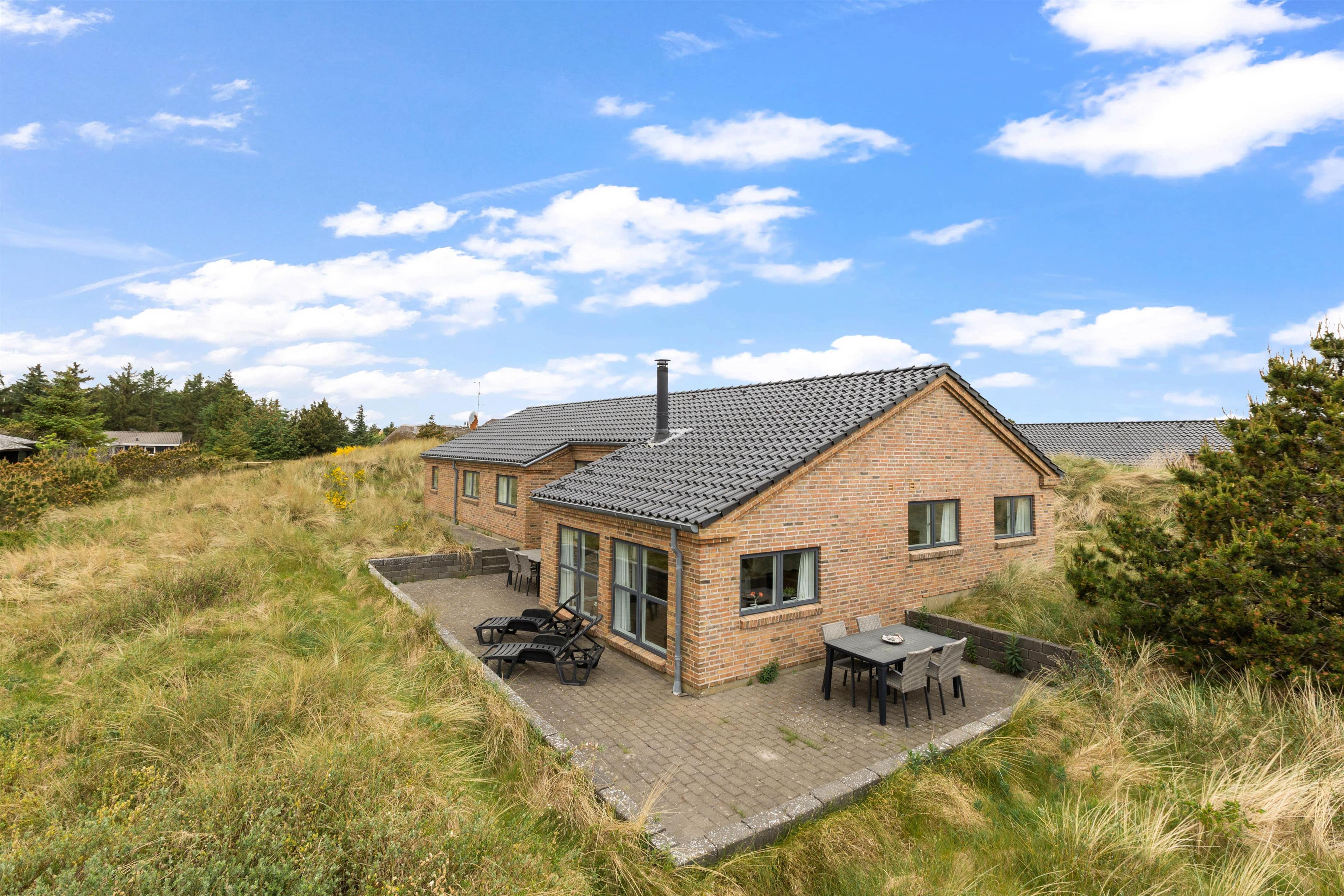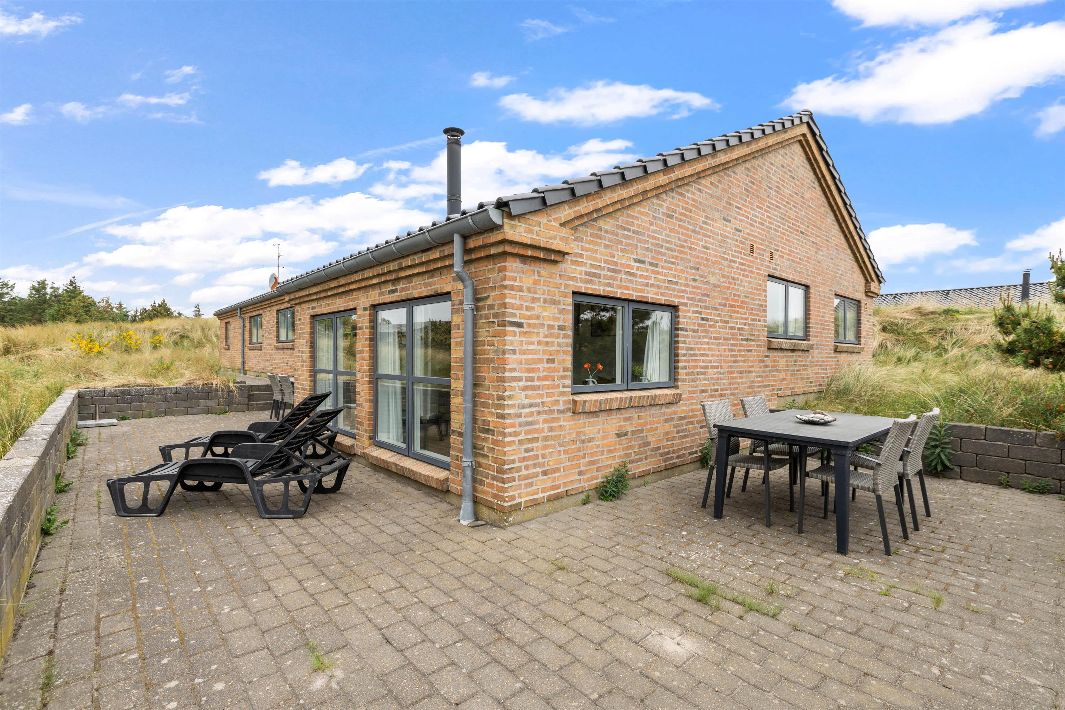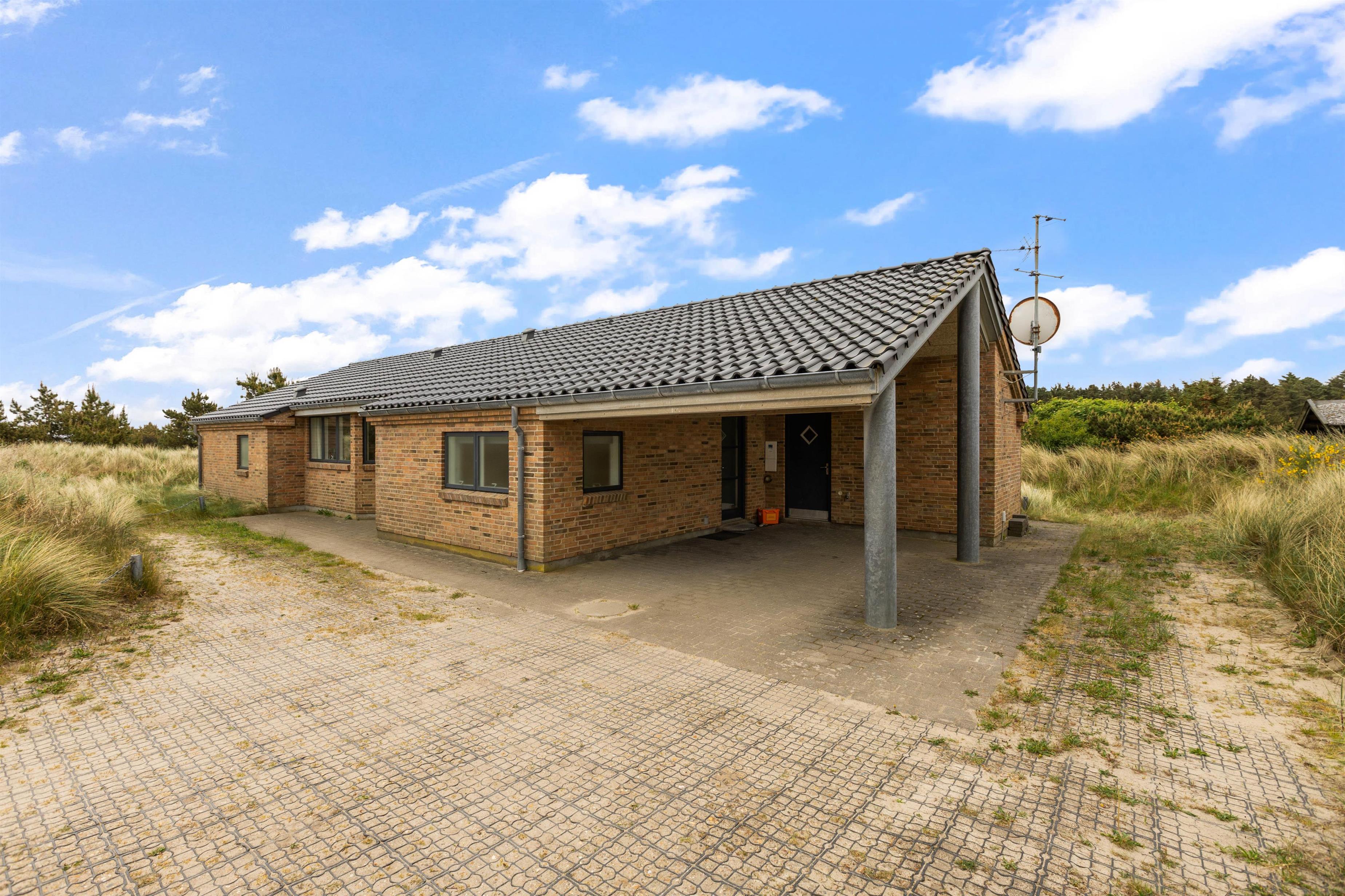 Dette sommerhus i Søndervig byder på en stor naturlig grund på 3000m2, hvor I kan nyde udendørslivet i fulde drag. Åben og lukket terrasse er udstyret med havemøbler og en grill, så I kan tilbringe hyggelige aftener med madlavning og samvær under åben himmel.