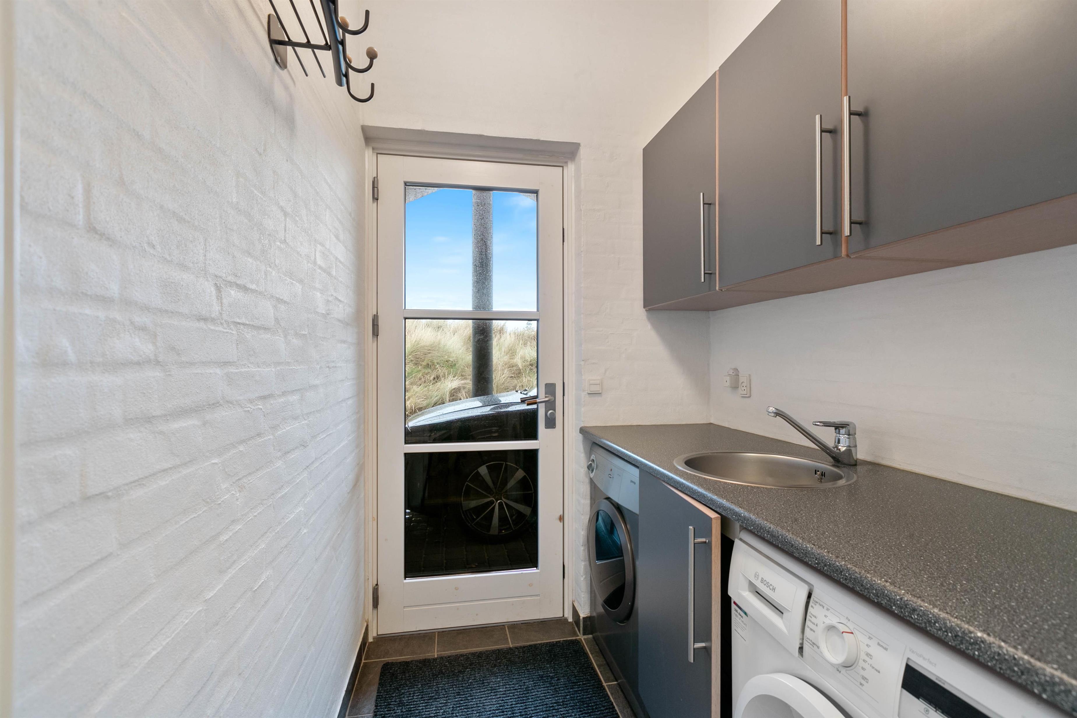 Praktiske detaljer såsom vaskemaskine og tørretumbler gør det let at holde tøjvasken under kontrol under opholdet.