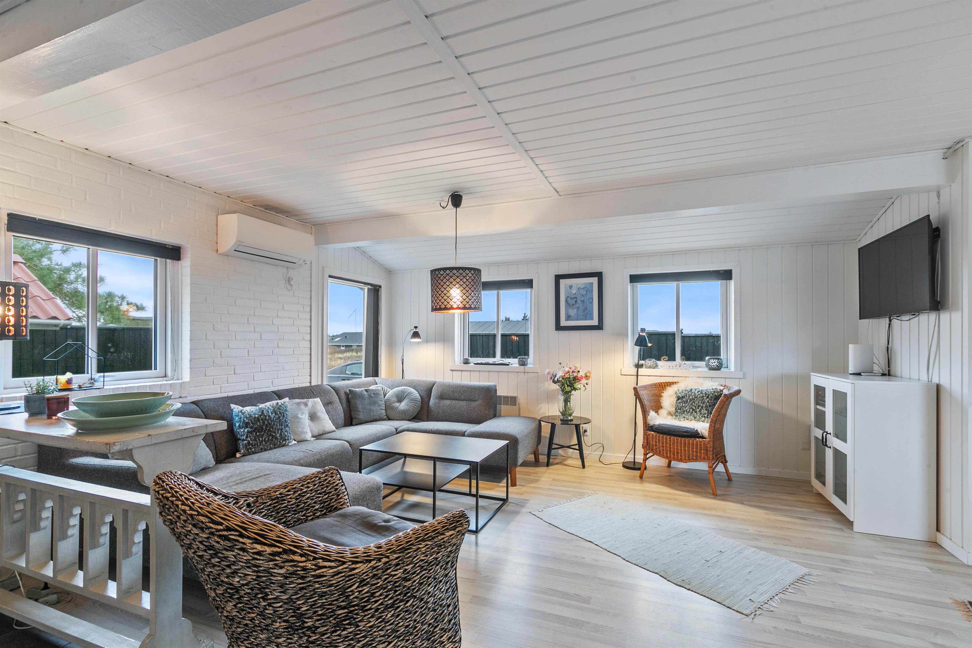 Sommerhuset på 115m2 byder på en hyggelig atmosfære, hvor I kan slappe af og nyde jeres tid sammen. Huset har masser af plads, og med fire soverum, der rummer tre dobbeltsenge, vil I finde komfortable senge til alle gæster. Brændeovnen i stuen skaber en hyggelig stemning, hvor I kan nyde varme og hygge på kølige aftener. Luft til luft varmepumpen sikrer, at temperaturen altid er behagelig, uanset årstiden.