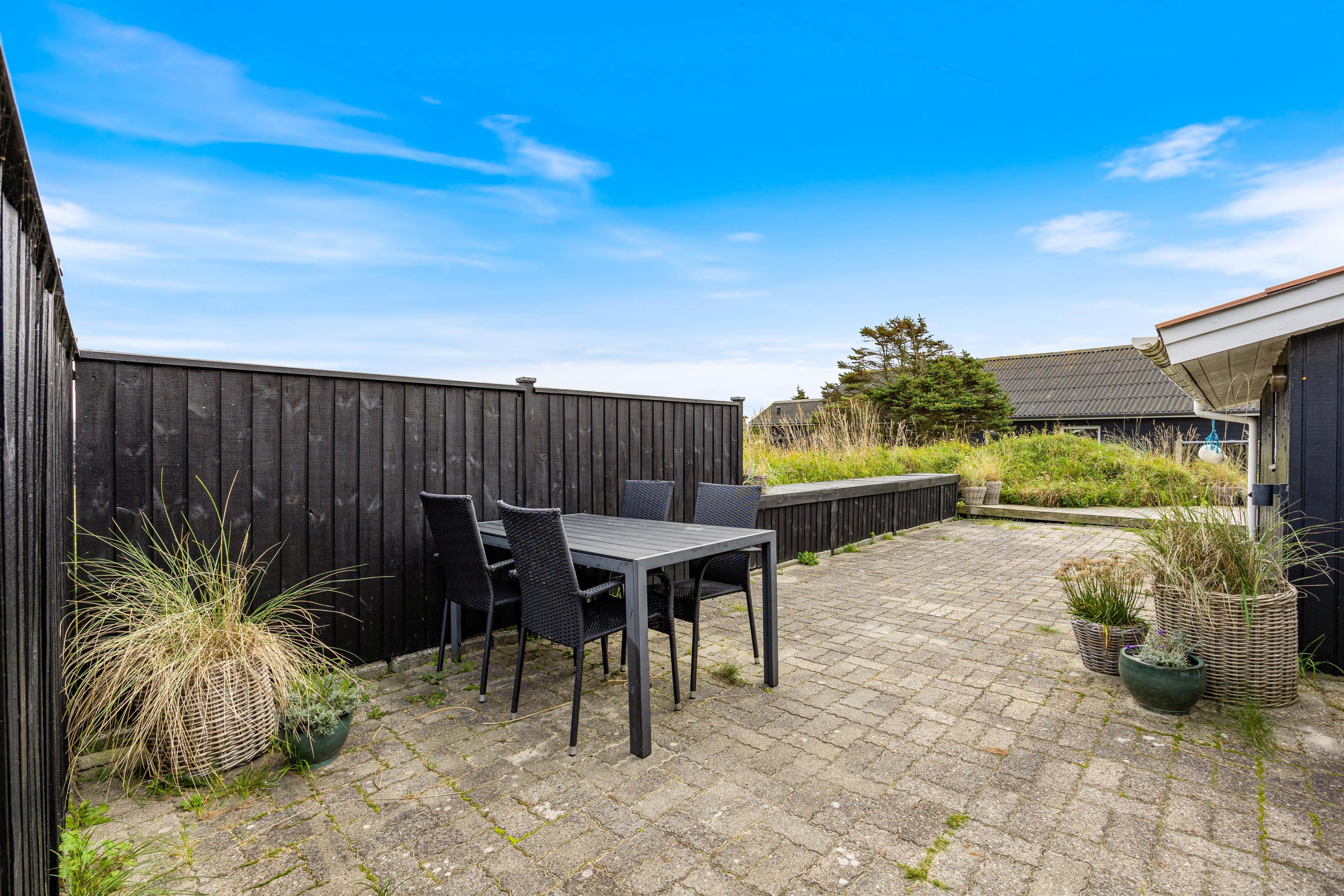 I huset finder I også nogle yderst indbydende uderum. Her finder I nemlig flere forskellige terrasser der gør, at I for alvor kan nyde terrasser de dage hvor vejret tillader det. Her kan I sidde i solens stråler alle døgnets timer med masser af forskellige og gode havemøbler og en grill. Det er her sommerlivet leves, enten med en god bog, afslapning eller over en god middag fra grillen.