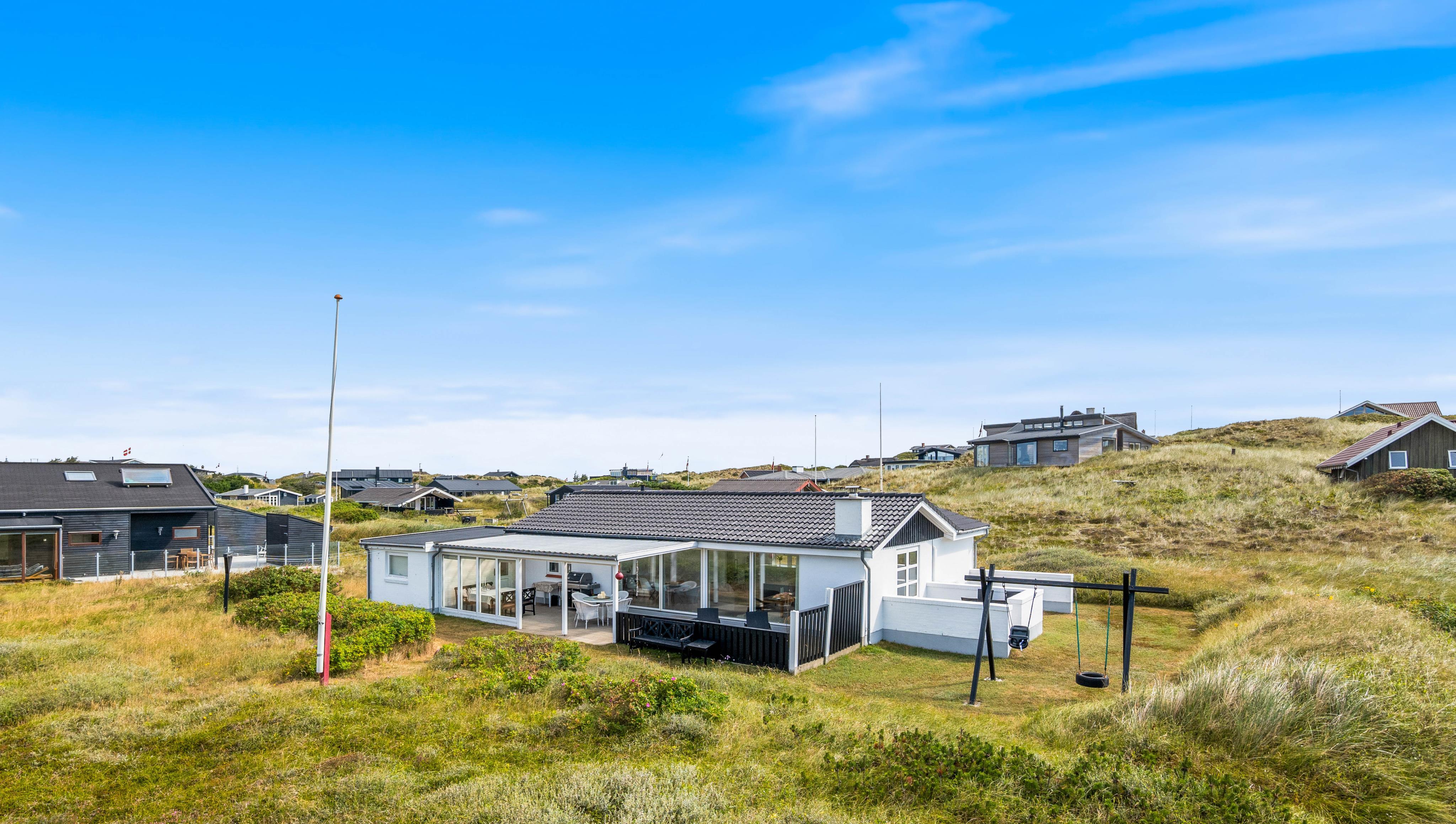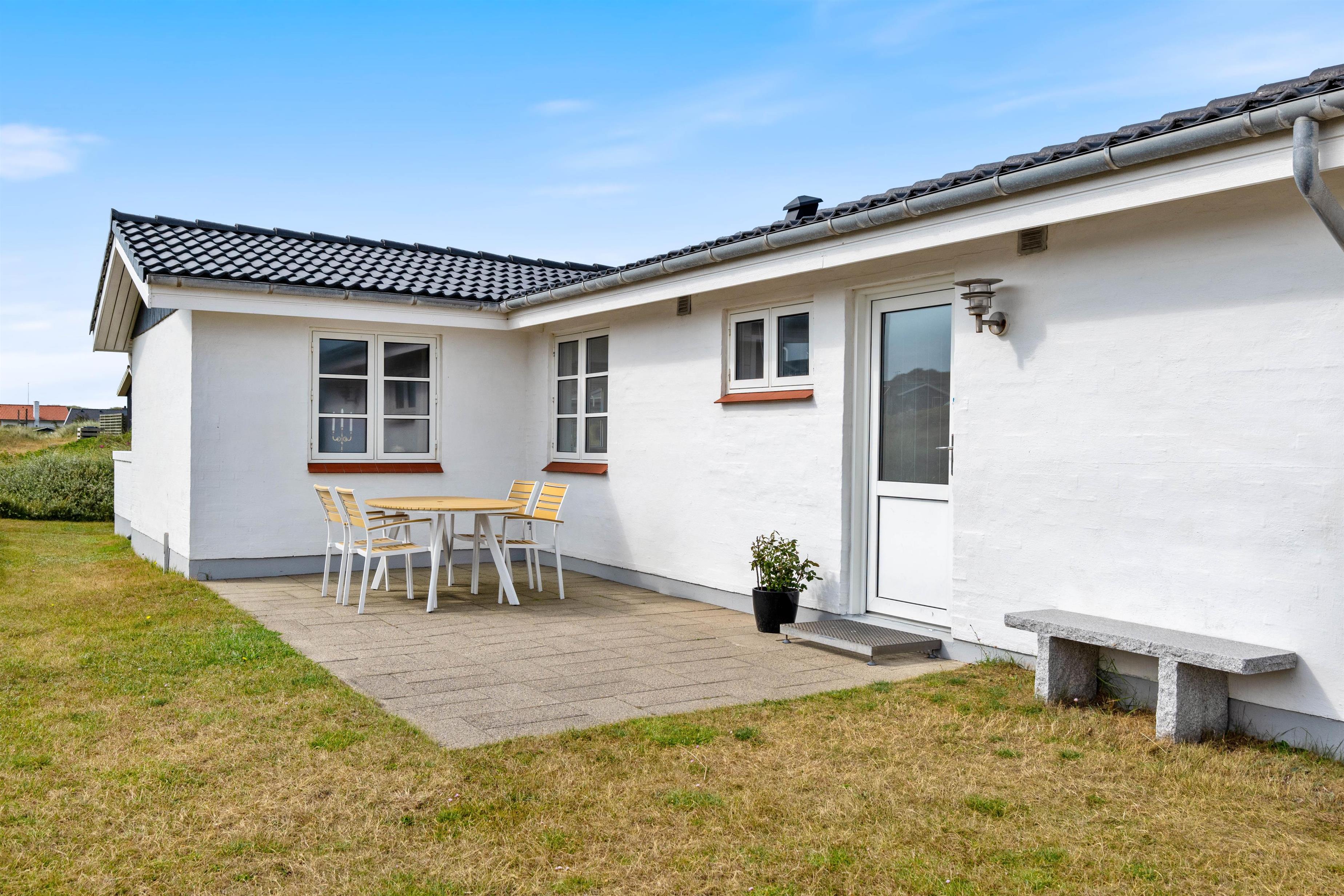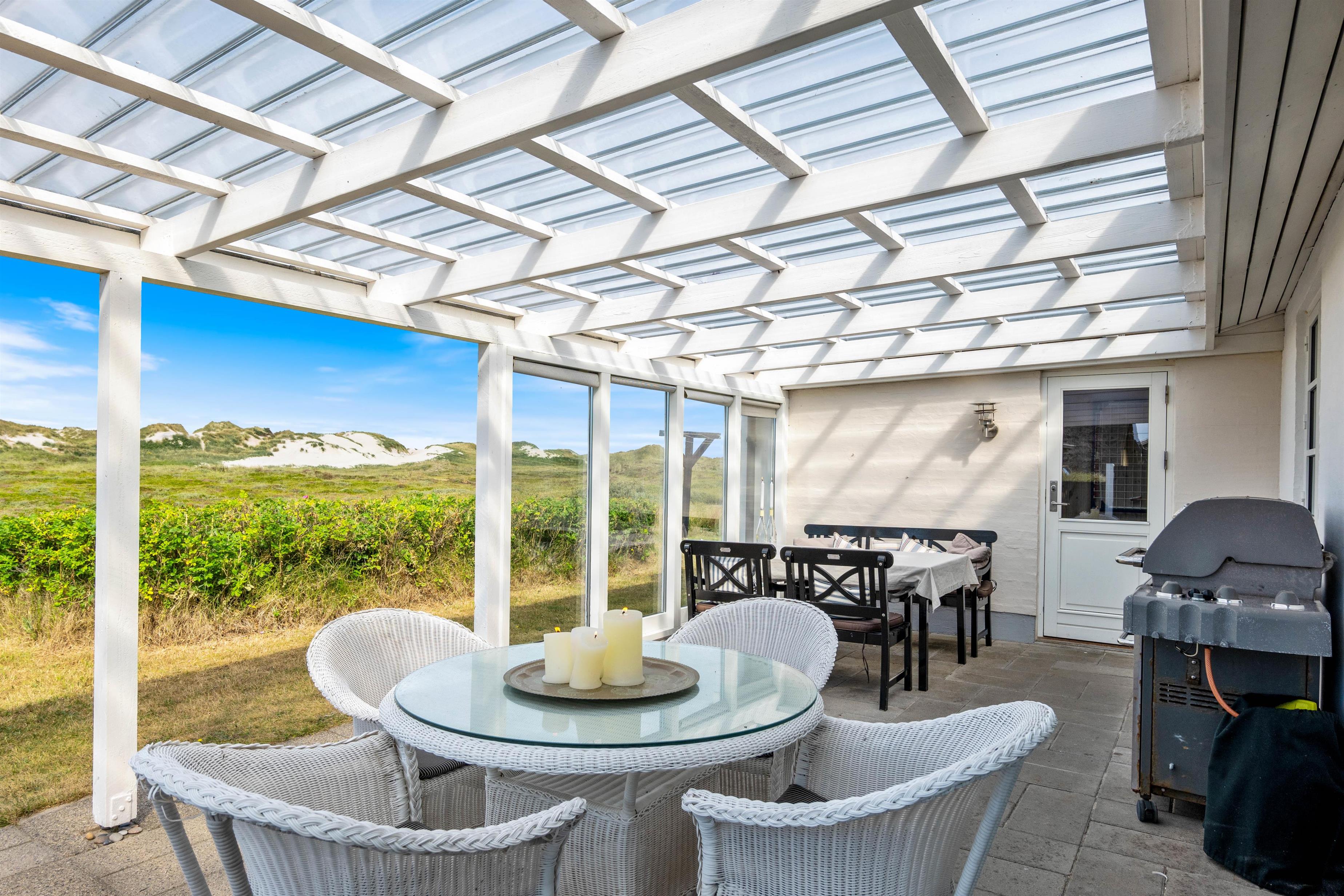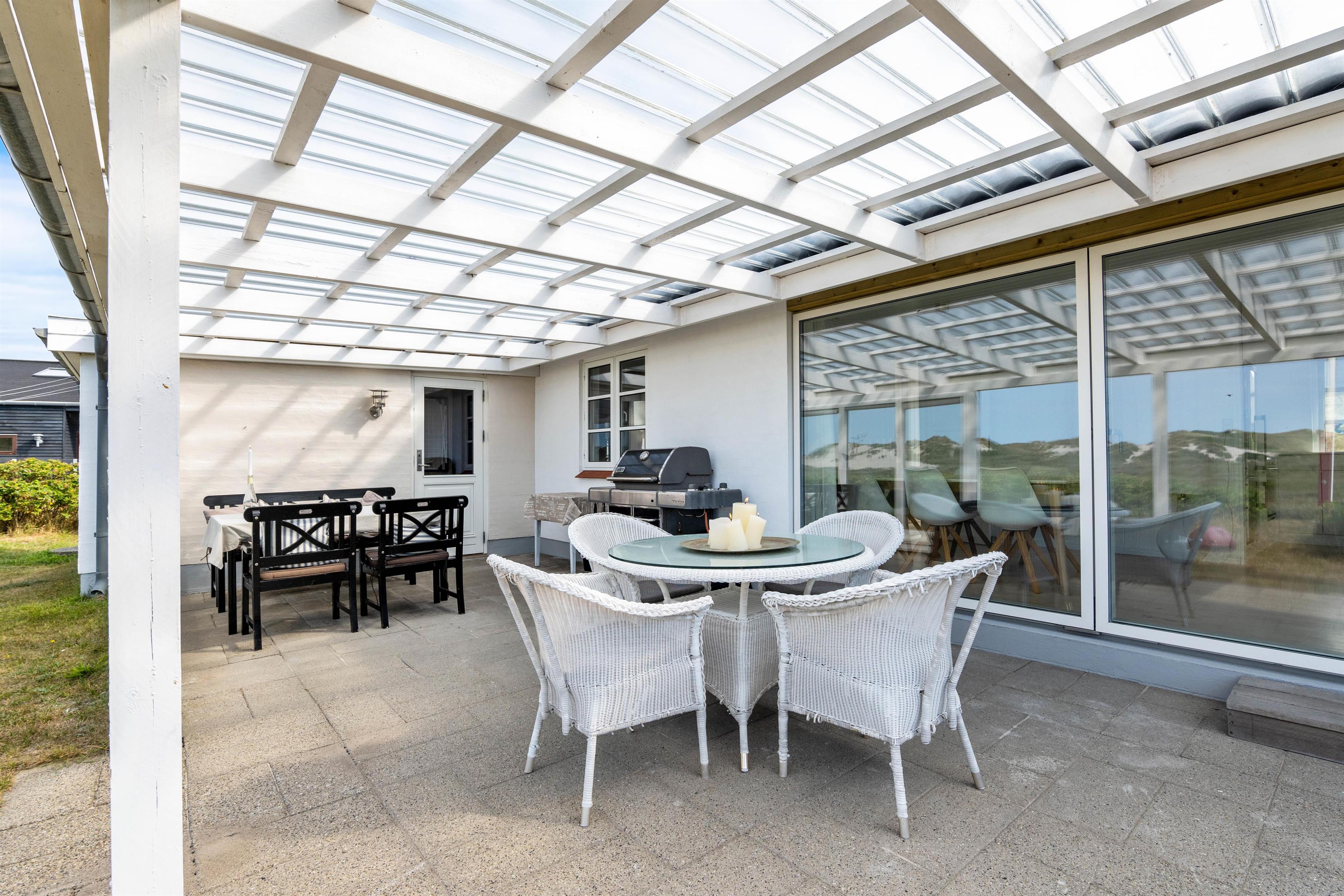 Et af højdepunkterne ved dette sommerhus er den overdækkede terrasse, hvor I kan nyde måltiderne ude i det fri eller bare slappe af med en god bog i hånden. Terrassen giver mulighed for at nyde den friske luft uanset vejret og I kan tilbringe kvalitetstid sammen udenfor. Slå jer ned i de behagelige havemøbler, og nyd den helt uforstyrrede udsigt udover de smukke klitter.