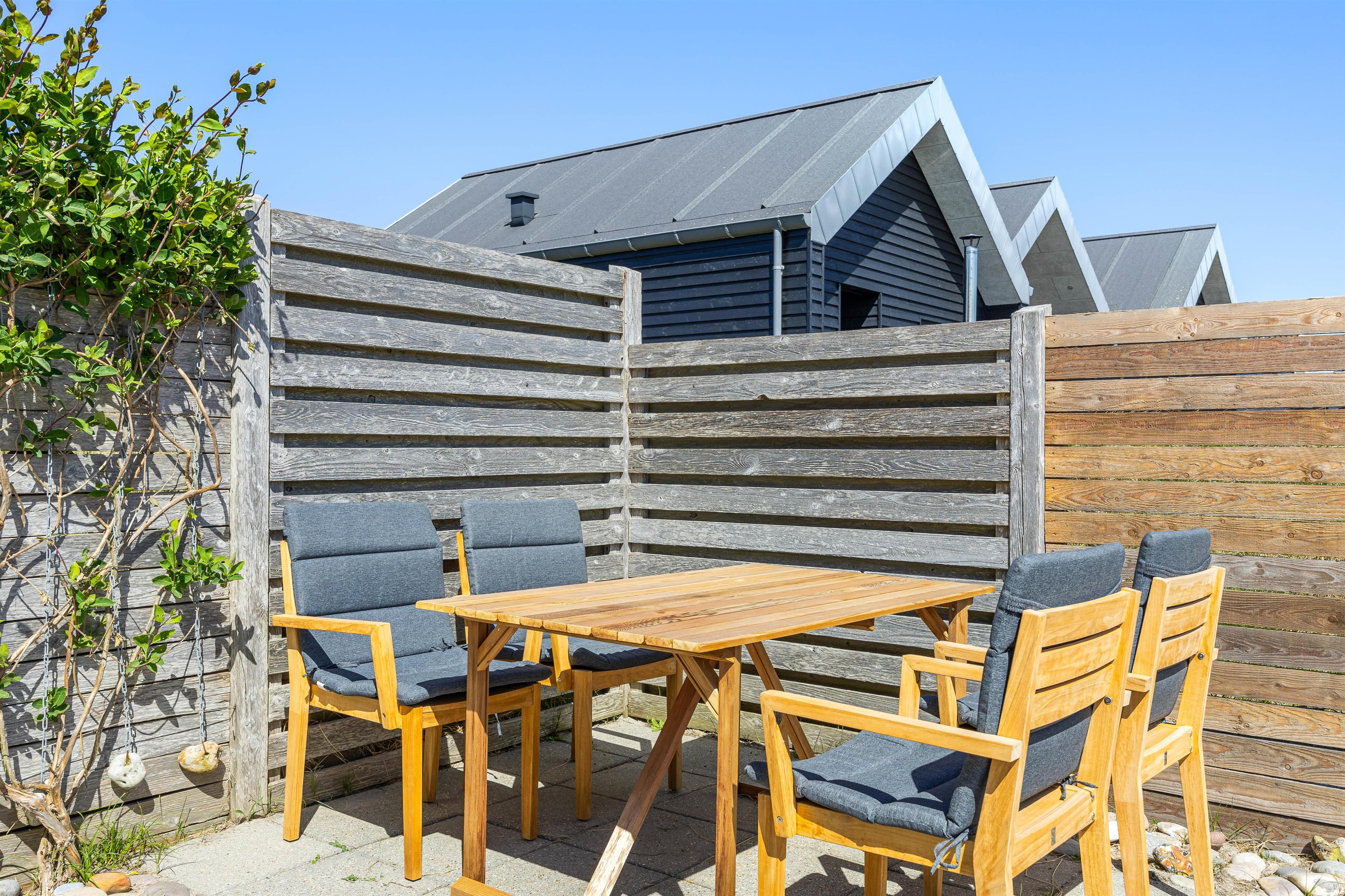 I kan nyde sol og læ i en af de mange lune kroge, og selv hvis I har brug for lidt skygge, kan I også få dette på feriehusets overdækket terrasse. Ved disse forskellige kroge, er der selvfølgelig havemøbler og en gasgrill som indbyder til mere ude tid. Med åbne terrasser mod syd, vest og nord og en overdækket terrasse mod øst, har I ideelle udendørsområder at vælge imellem på alle tider af dagen. Nyd jeres måltider udendørs og tilbring afslappende timer på husets smukke lyngbeklædte naturgrund.