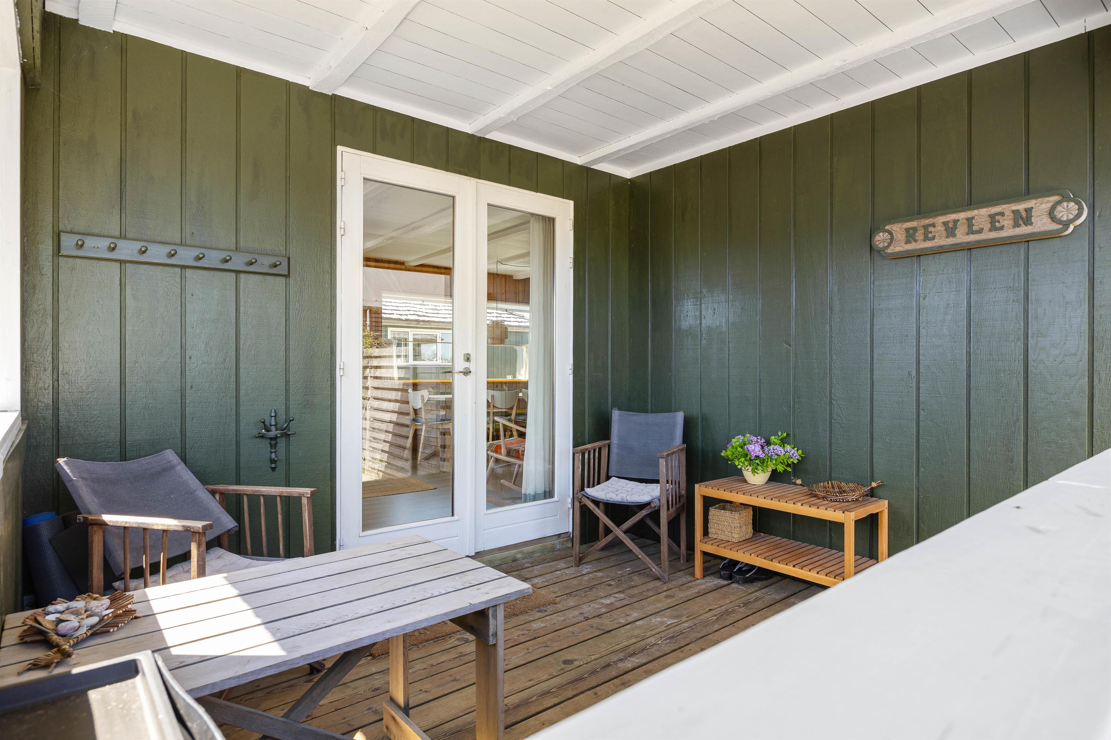 Dette ældre, men nænsomt nyrenoverede og feriehus, ”Revlen”, har sjæl og en skøn atmosfære. Når man træder ind ad døren, mærker man straks, at her kan man få lige netop den afslappende ferie, som man trænger til. Sommerhuset råder naturligvis over en brændeovn, hvor det især er oplagt at tænde op i denne på de køligere dage, og bare mærke den hygge og varme som den spreder. Både udvendigt og inde er det beklædt med træ, hvilket er med til give jer fornemmelsen af klassisk dansk sommerhus.