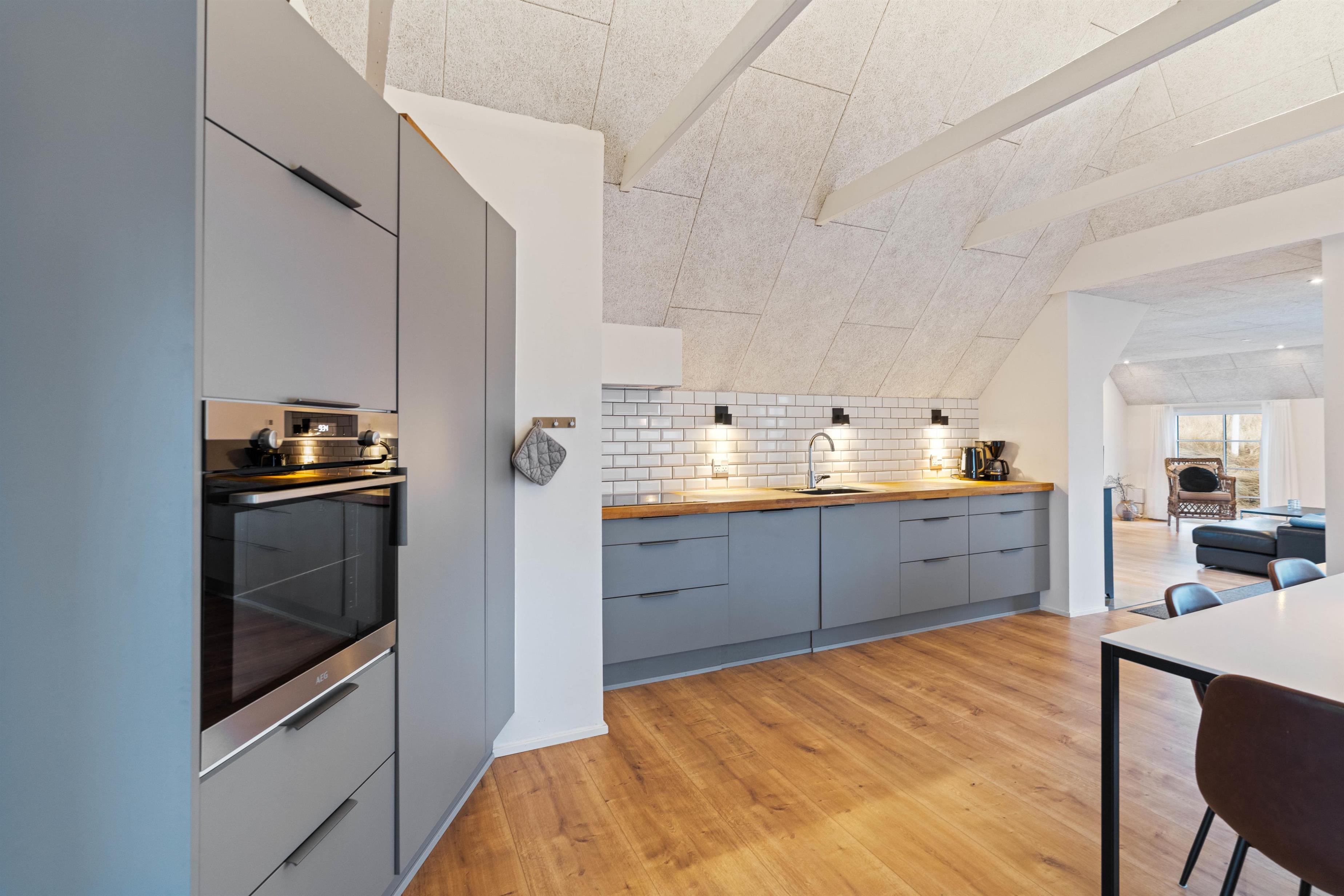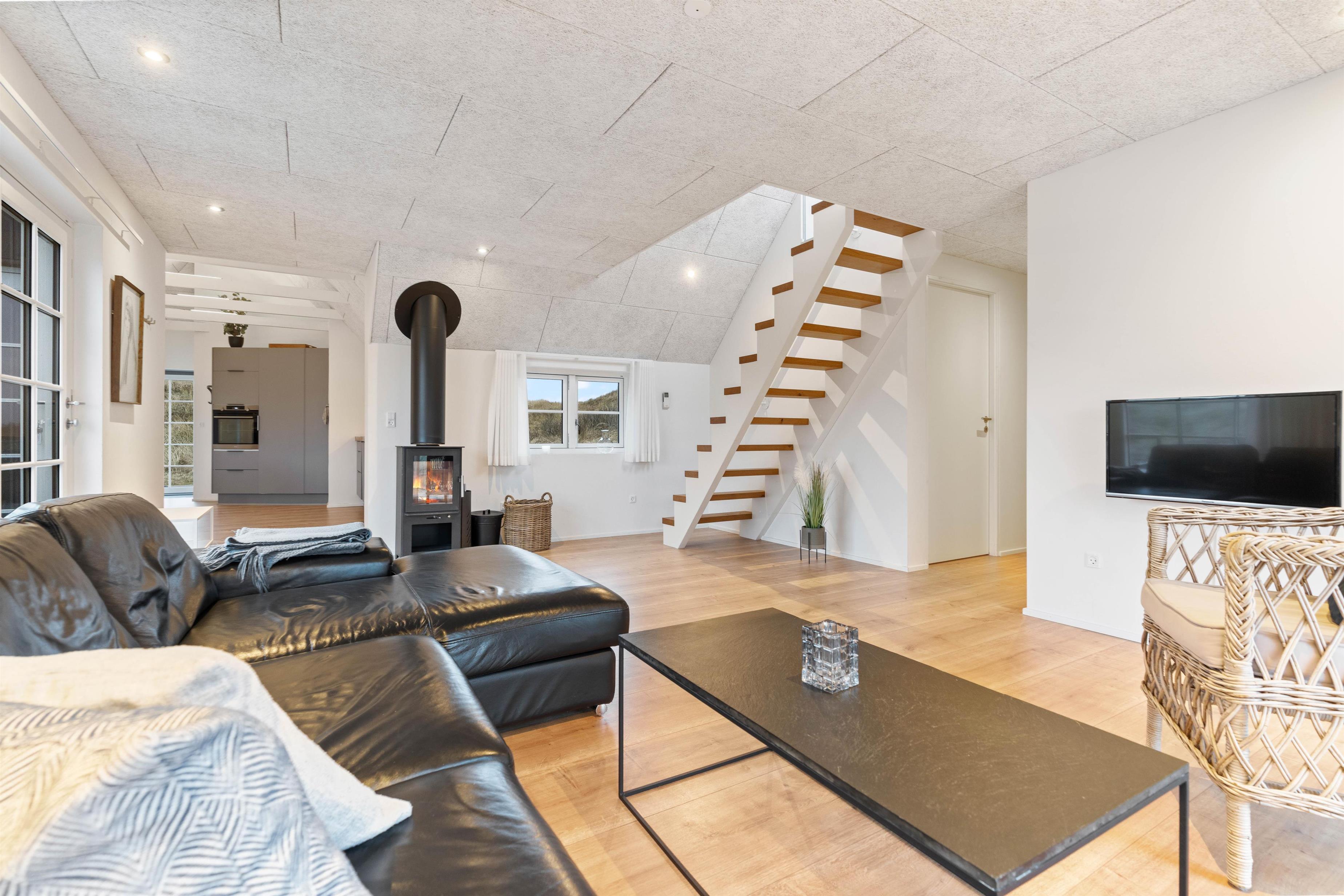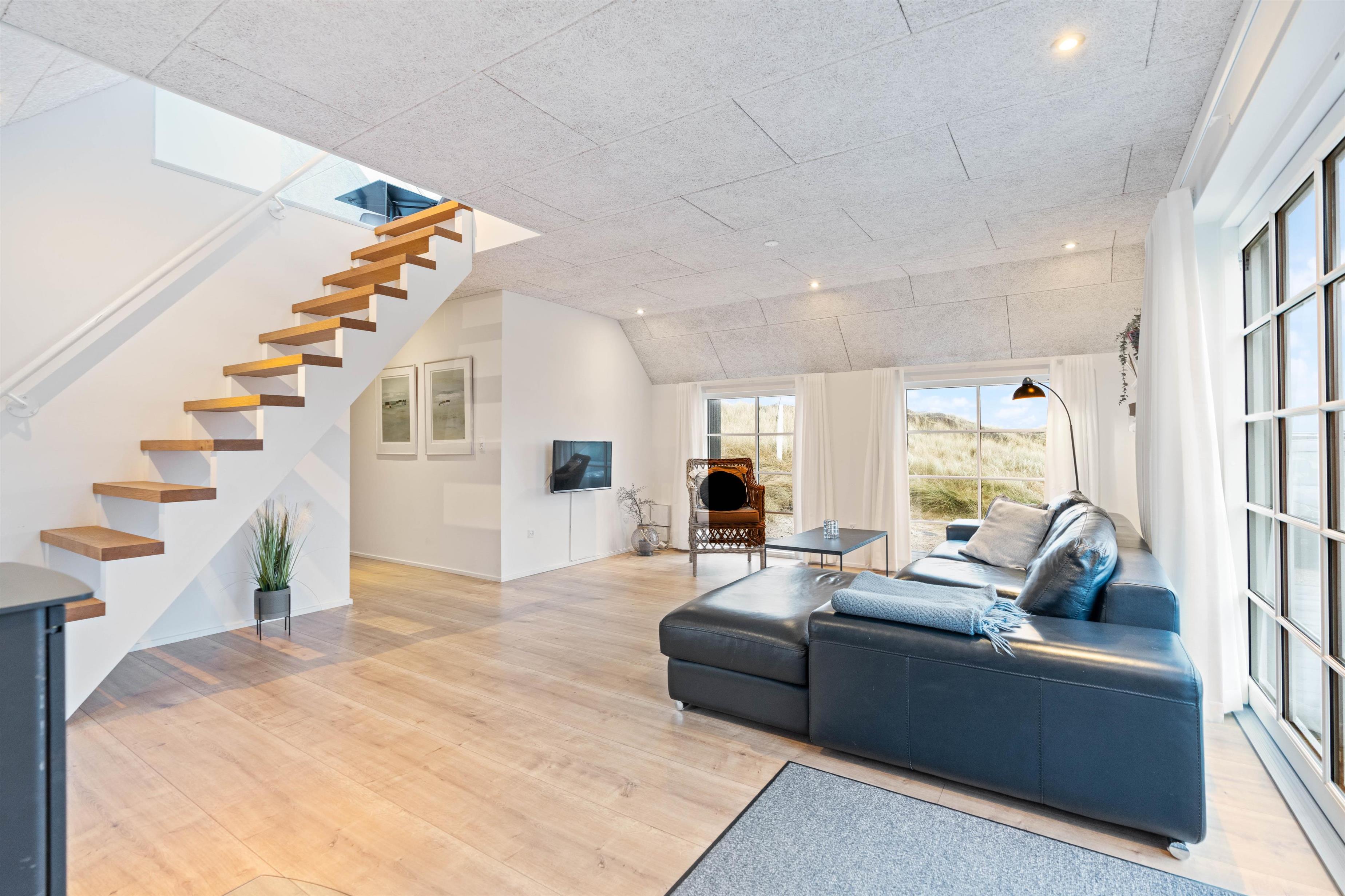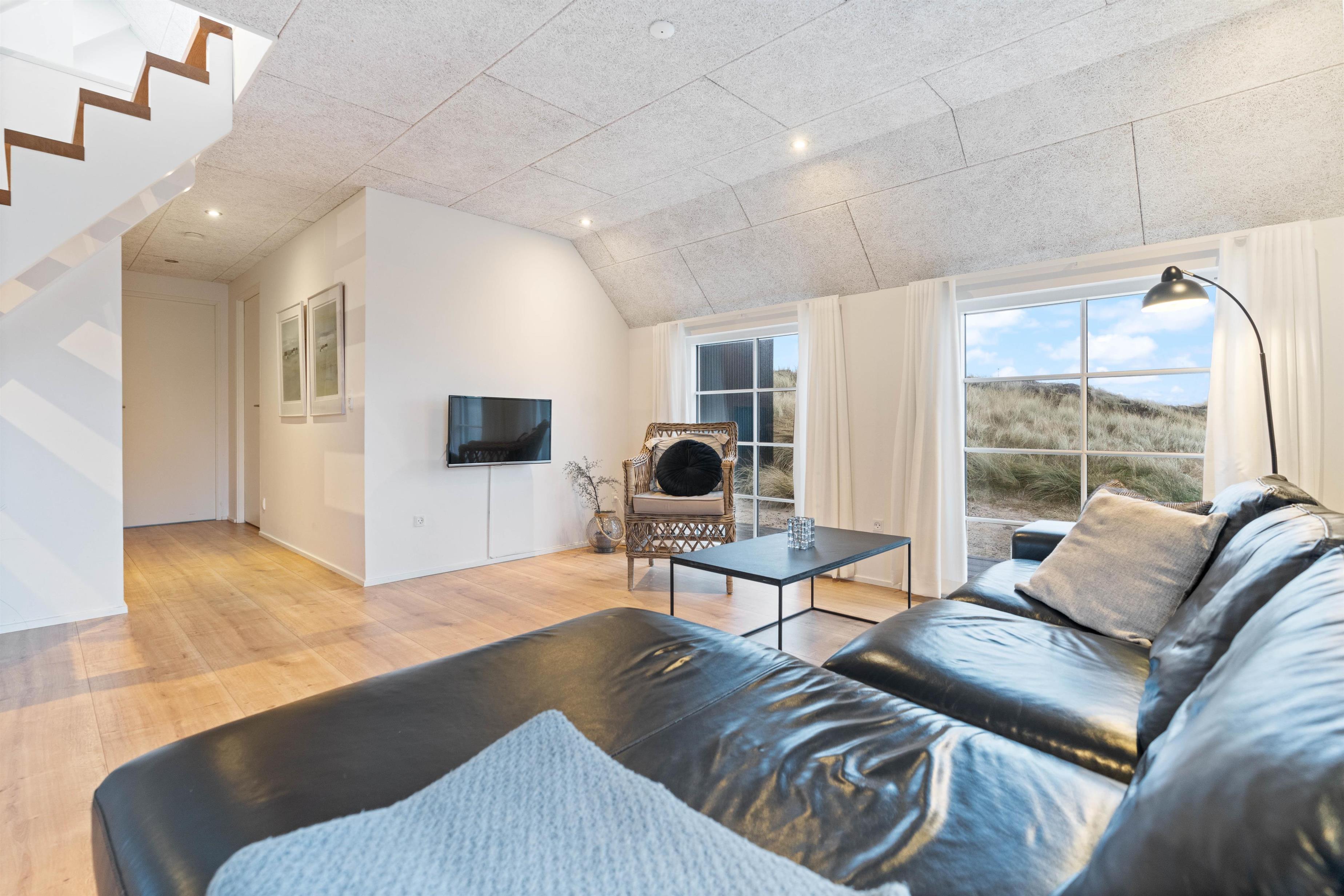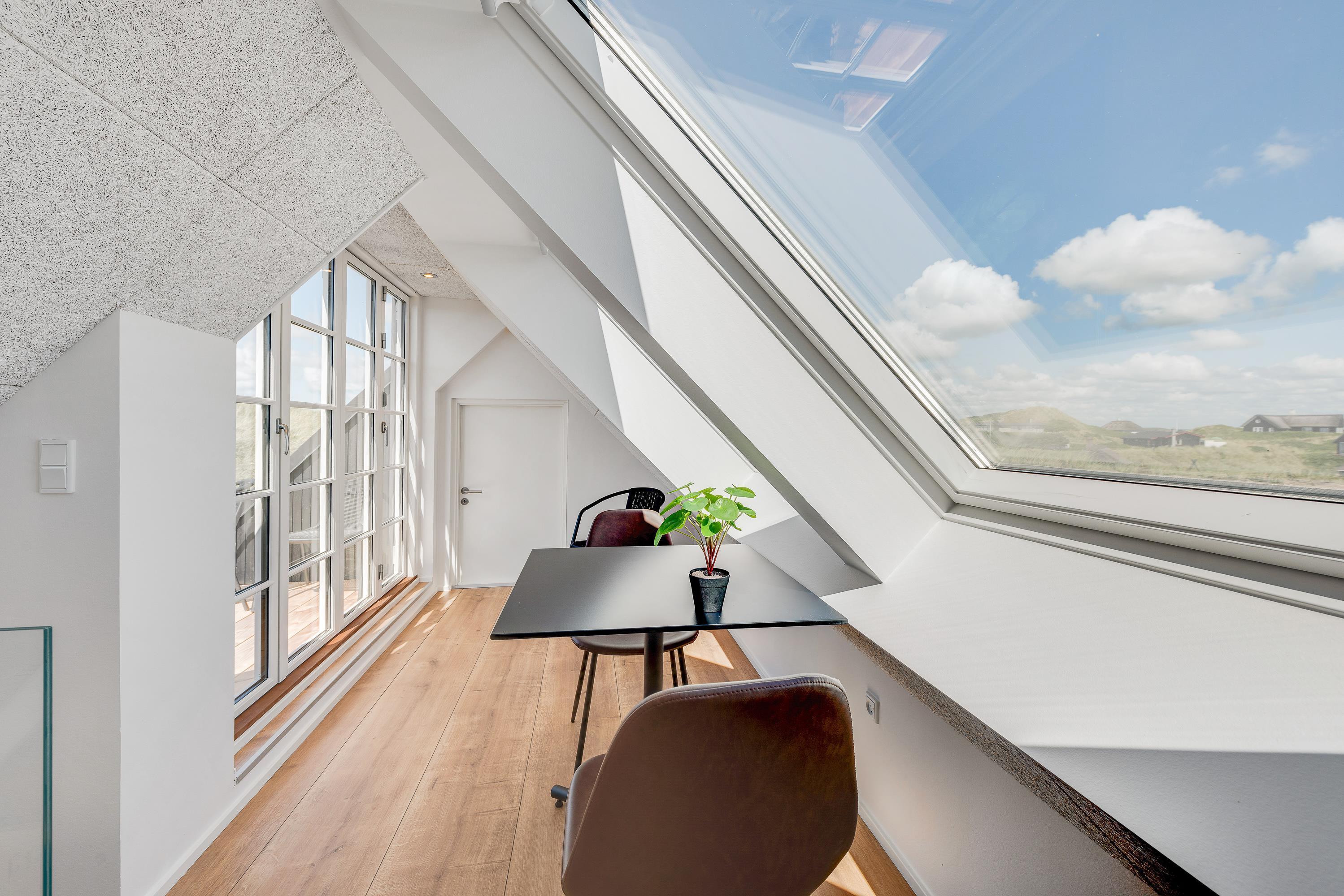 Indenfor finder I en hems med udgang til en altan. Herfra har I ikke kun en fantastisk udsigt ud over det uberørte klitlandskab; I har også havkig!