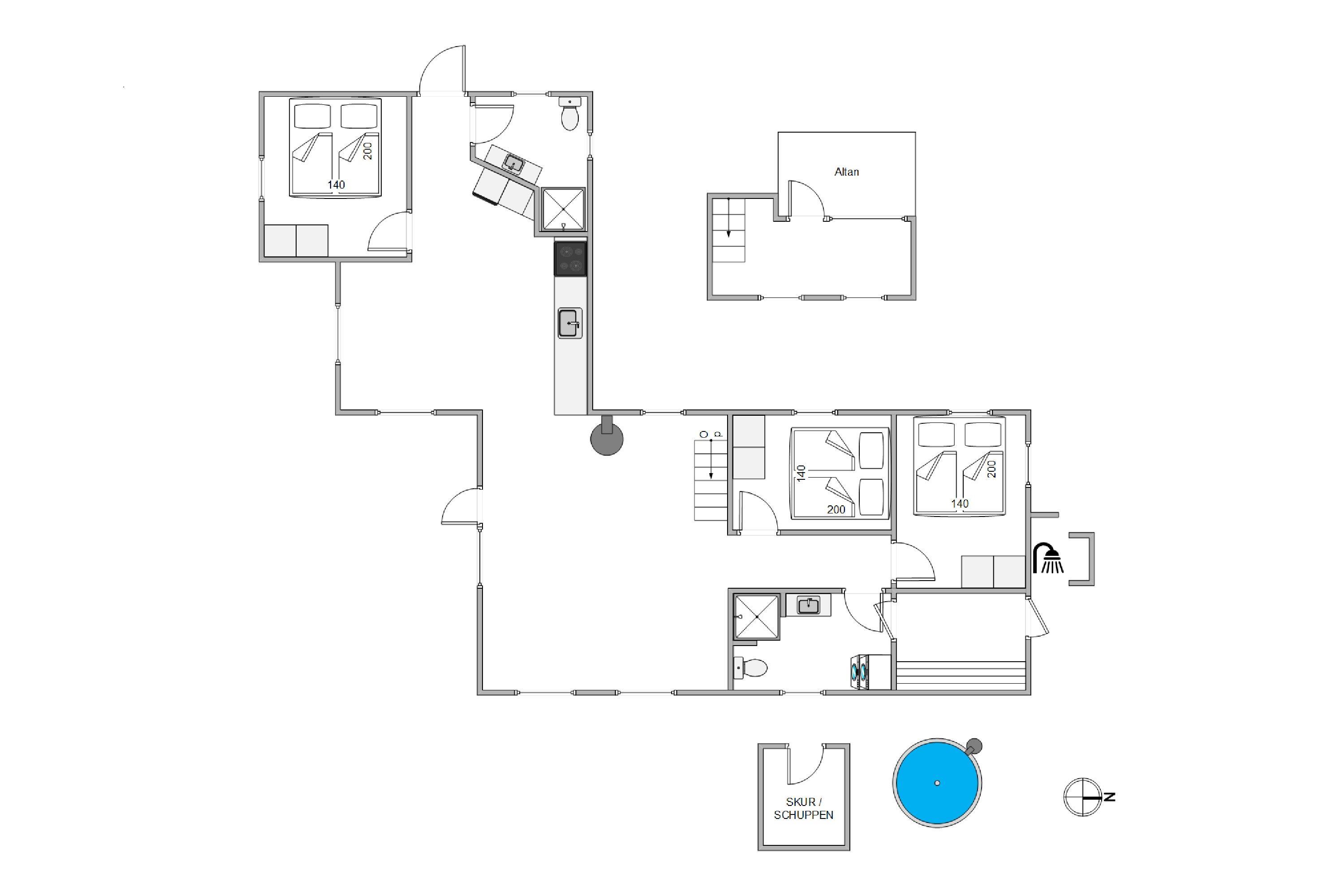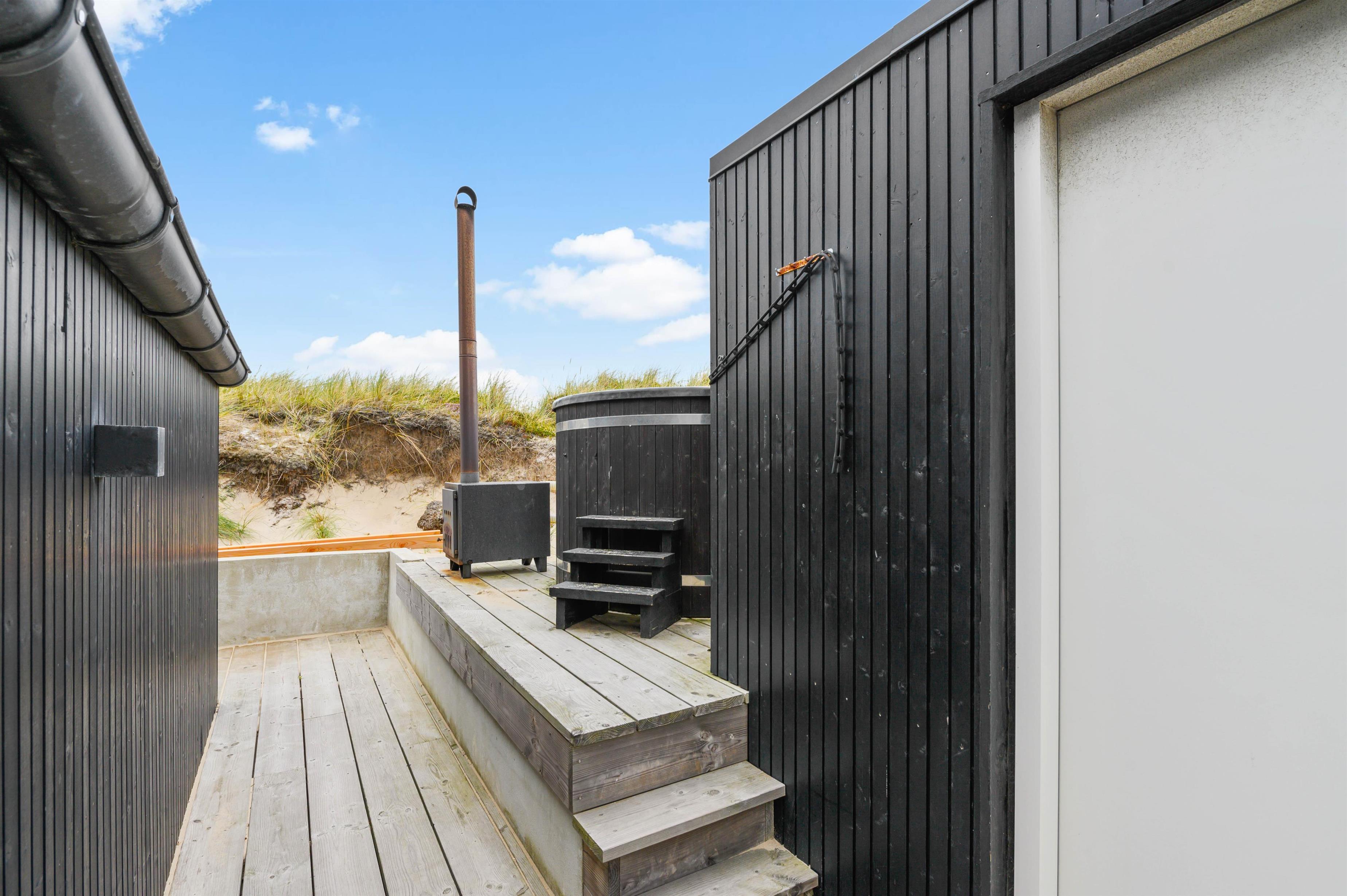 Vesterhavet ligger blot 200 meter væk, og der er kun et stenkast til nærmeste strandopgang. Efter en tur ved vandet kan I skylle fødderne rene for sand under udendørsbruseren på terrassen – som har både koldt og varmt vand. Den kan benyttes i månederne april til november.