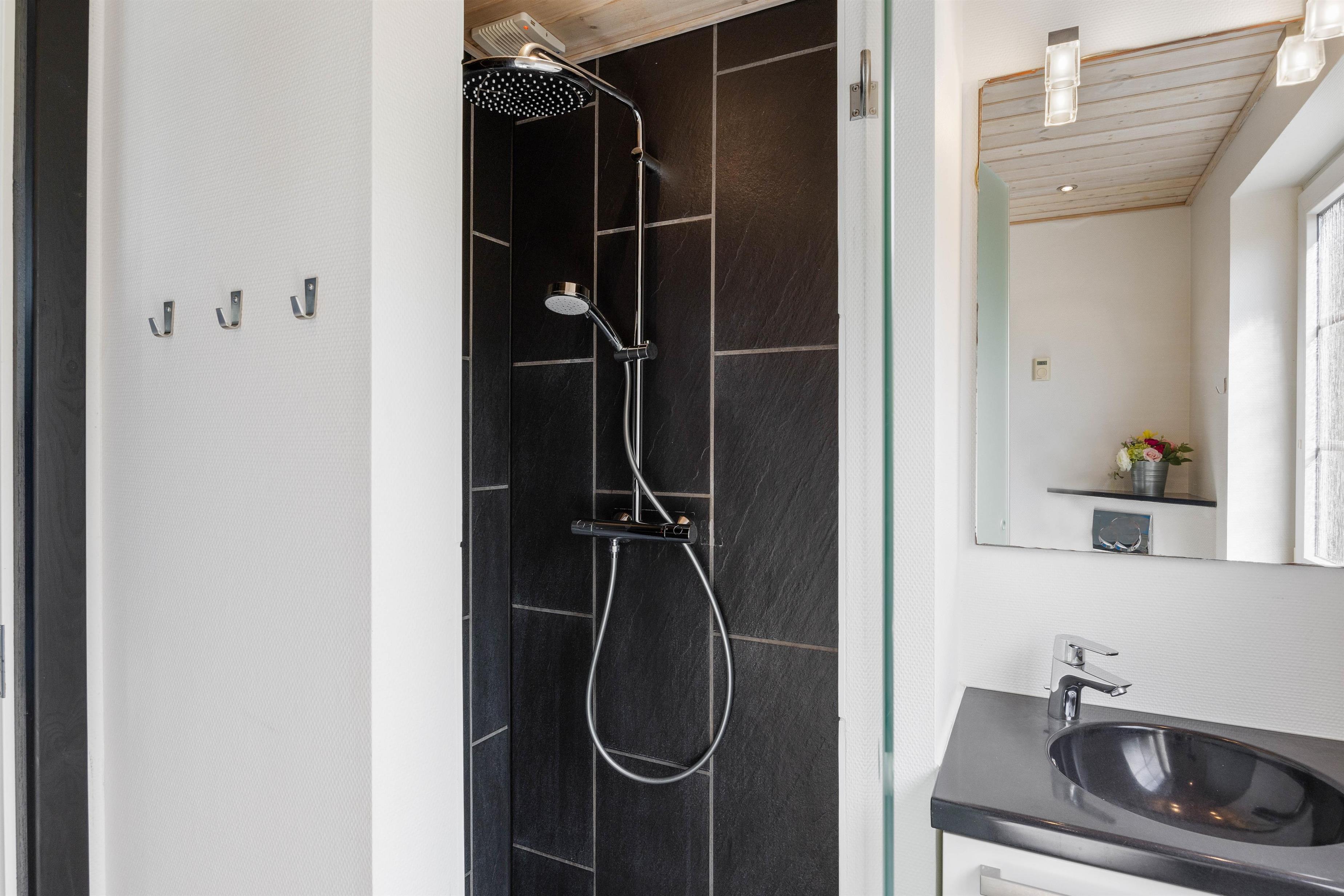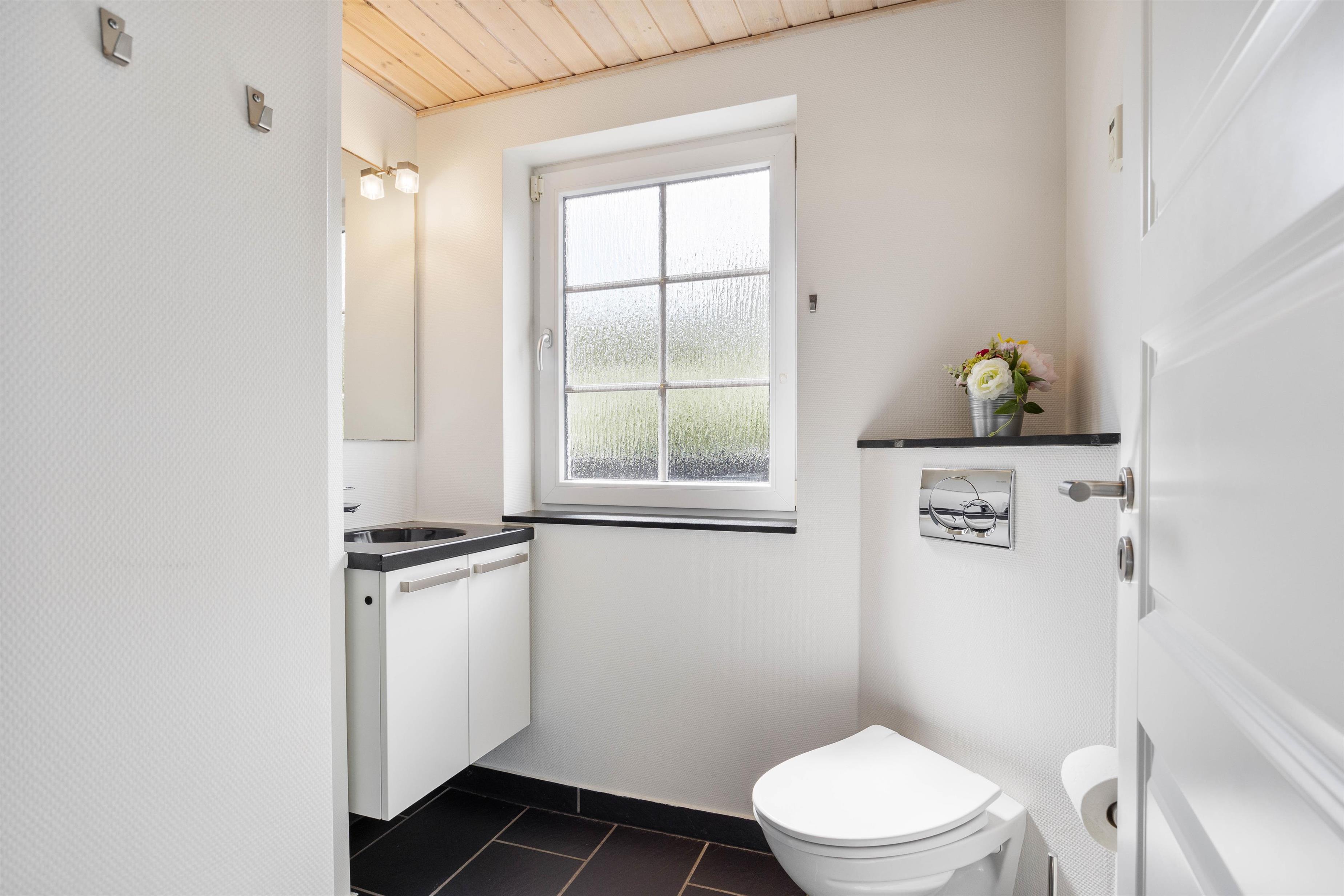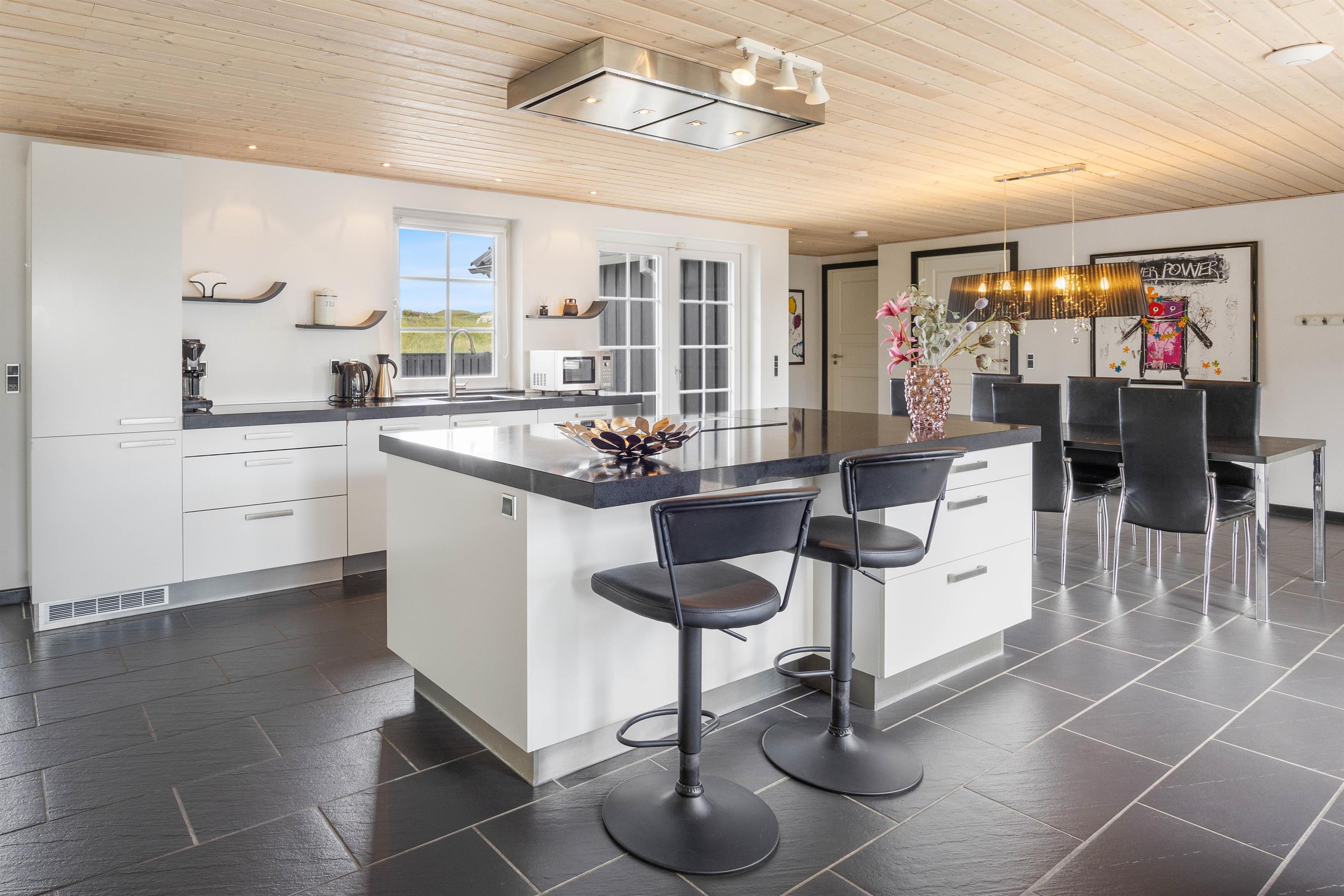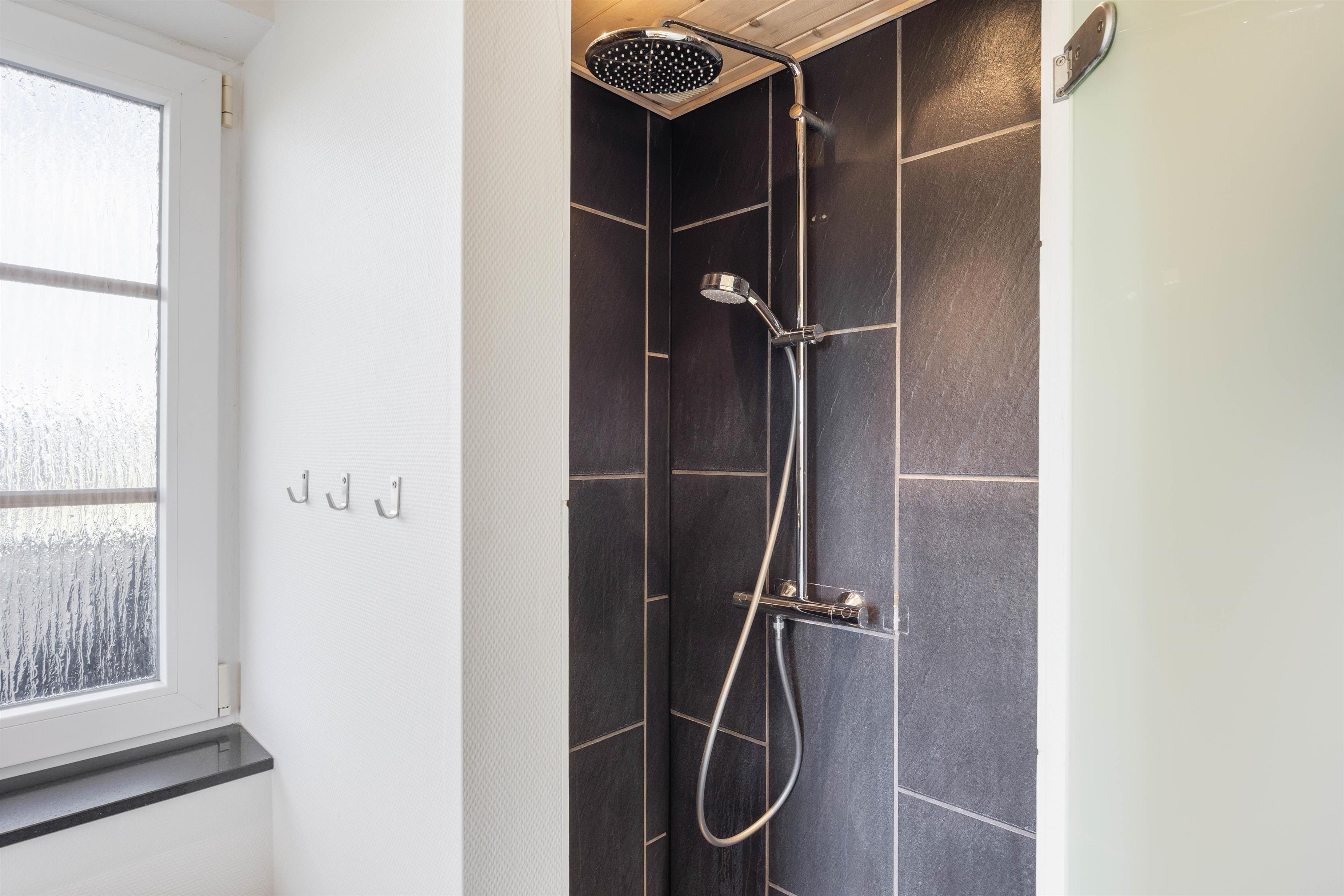 Der er 2 badeværelser begge med bruseniche. På det store badeværelse finder I en hjørnespa, vaskemaskinen og tørretumbleren er gemt bag skydedørsskabene. Der er et fladskærms-TV på væggen. Køkkenet er placeret midt i huset, og er det naturlige omdrejningspunkt. Her er masser af plads til hele familien.