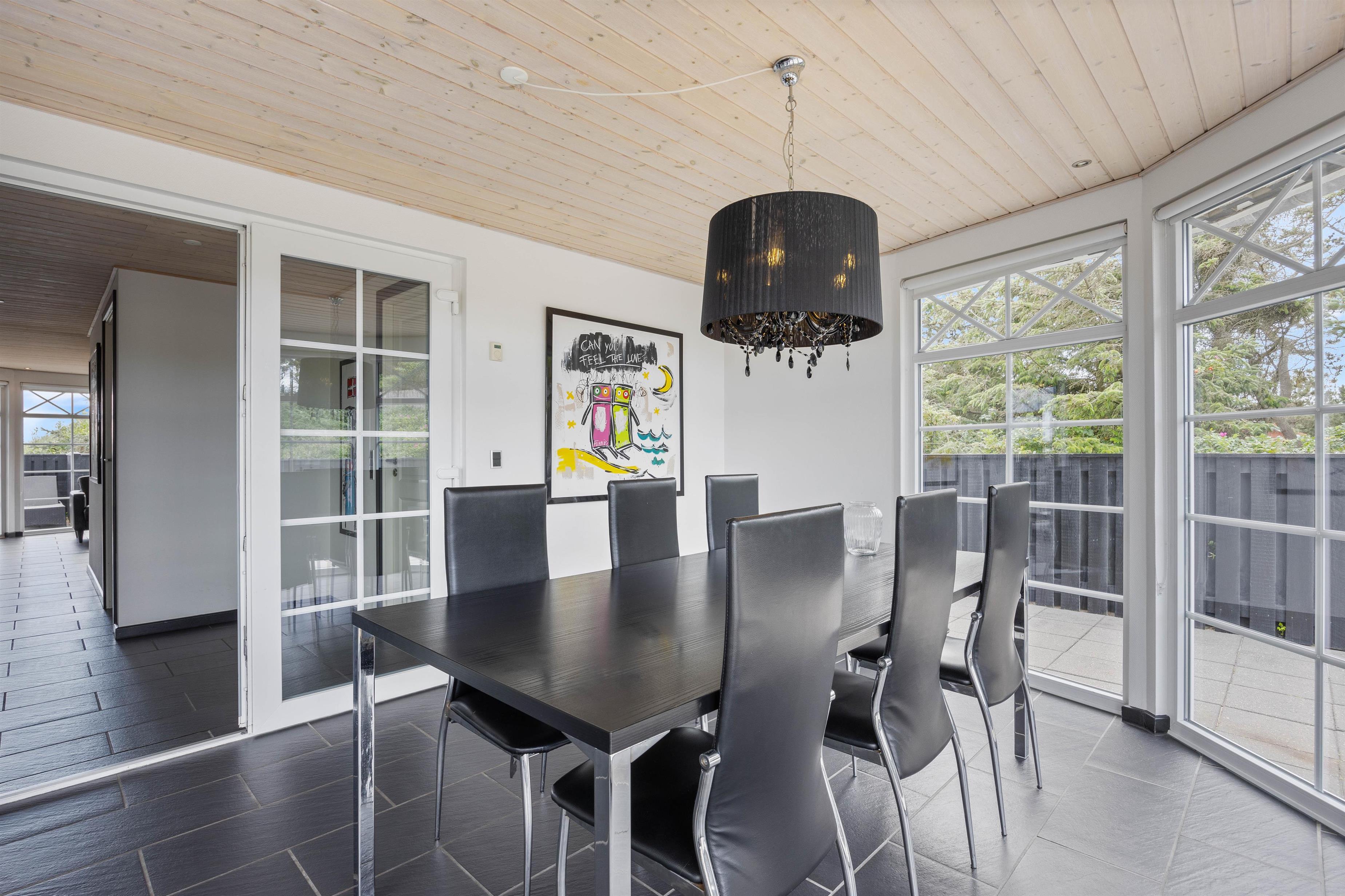 Dette lækre og veludstyrede feriehus kan danne rammen om en vidunderlig ferie i Søndervig, tæt på byen og kun 250 m fra Vesterhavet. Fra man kører op til huset er alt i en høj og eksklusiv kvalitet, en flot indkørsel, en skøn carport og et hus bygget i 2009 i klassiske og gode materialer og med en helt unik og skøn lukket terrasse.
