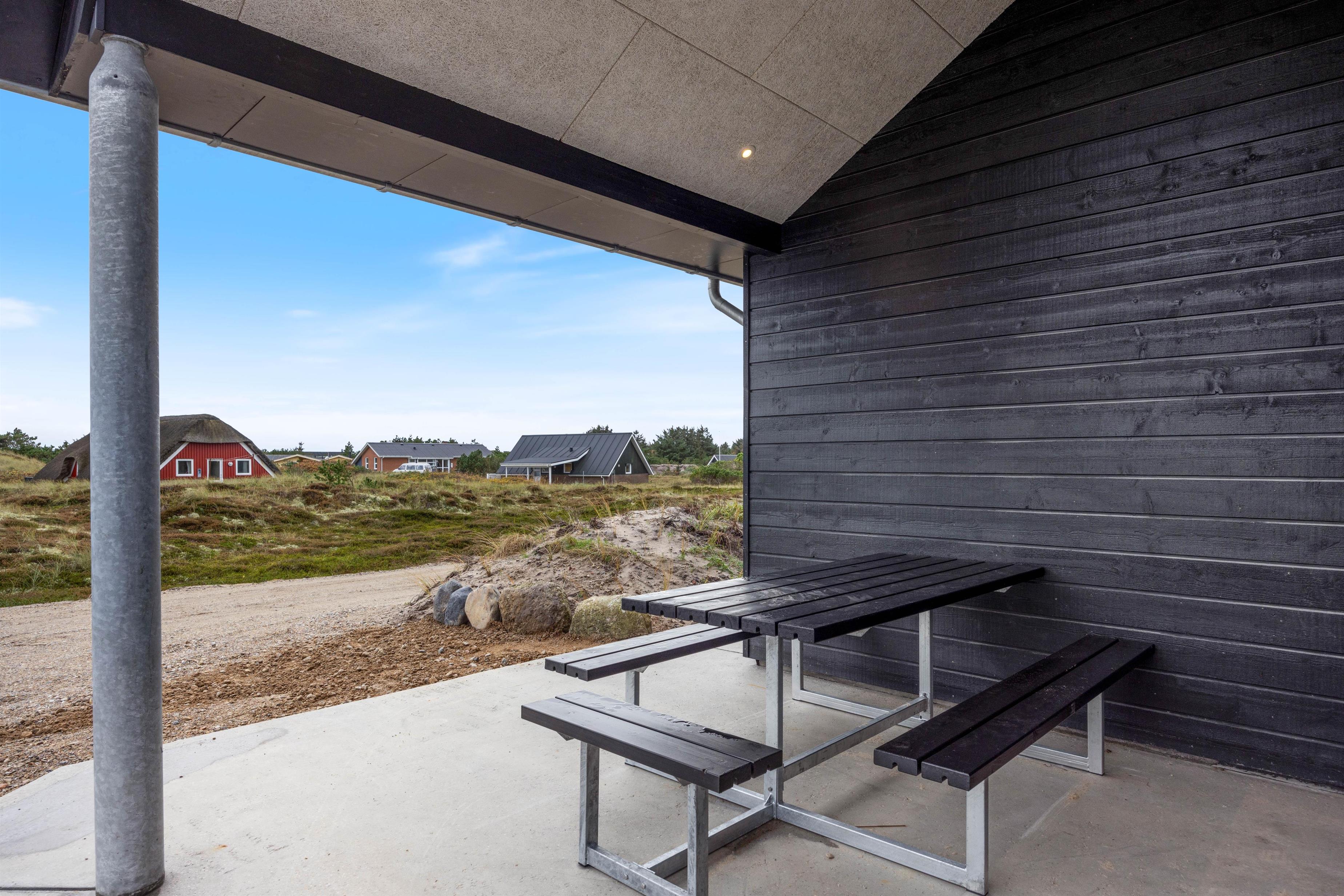 Feriehuset på Nordsøvej 279 i Søndervig ligger på en ca. 1500 m2 stor natur- og klitgrund. Feriehusets terrasseområde er delvist åbent, afskærmet og overdækket, så alle kan finde deres yndlingsplads i al slags vejr. Mens I hygger jer på terrassen, kan børnene gå på opdagelse på grunden eller boltre sig på gyngen. Der er også en sandkasse til rådighed for dine børn. Udendørssaunaen og det udendørs boblebad på terrassen giver også anledning til en ekstra dosis afslapning.