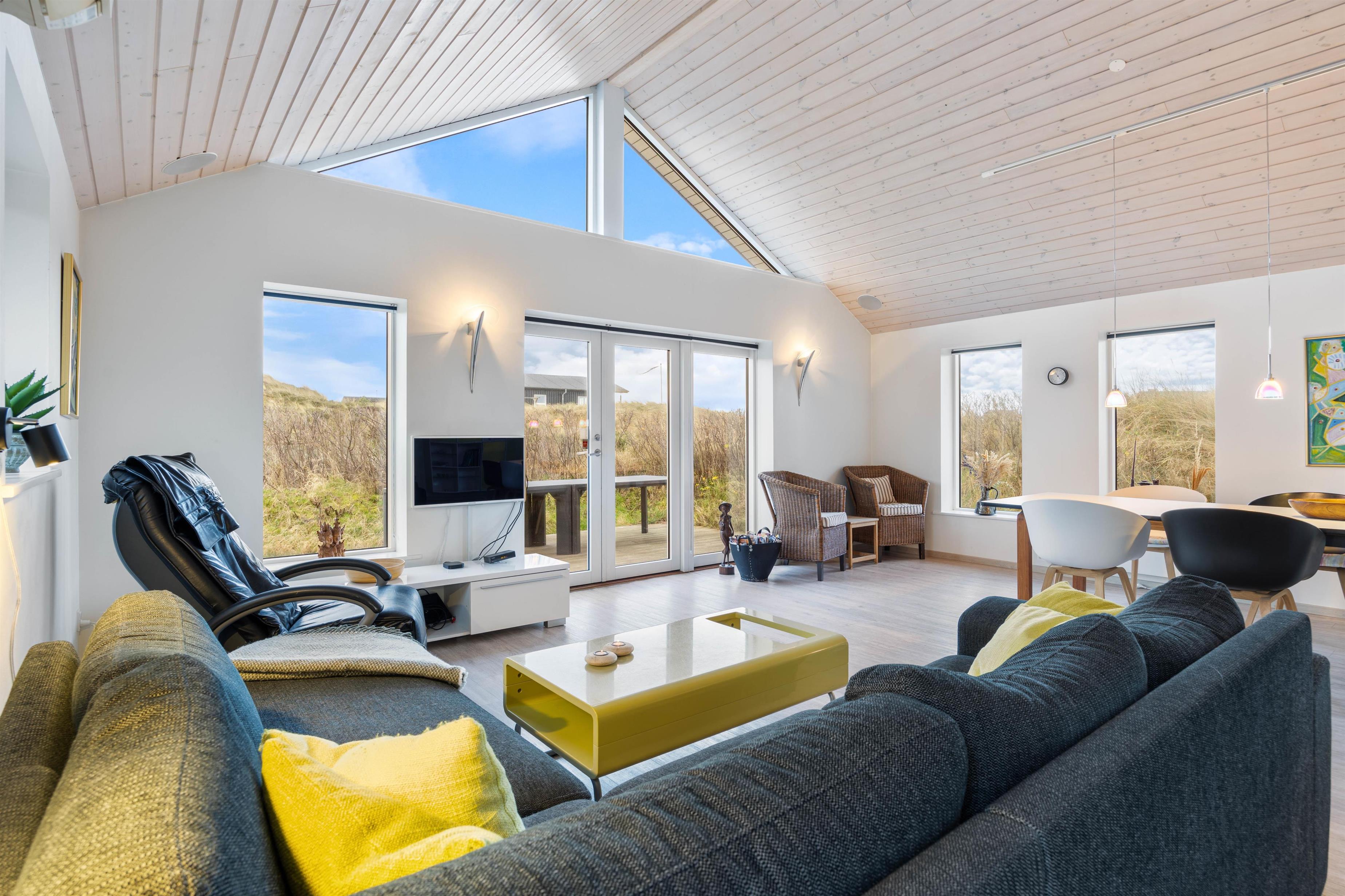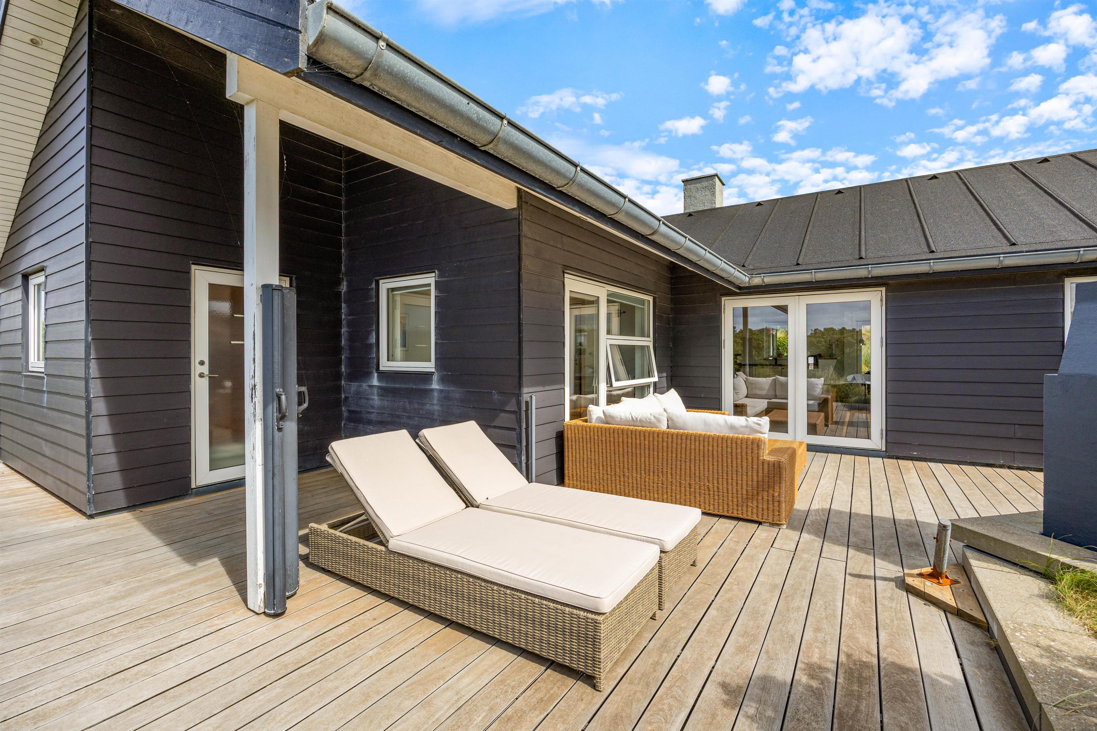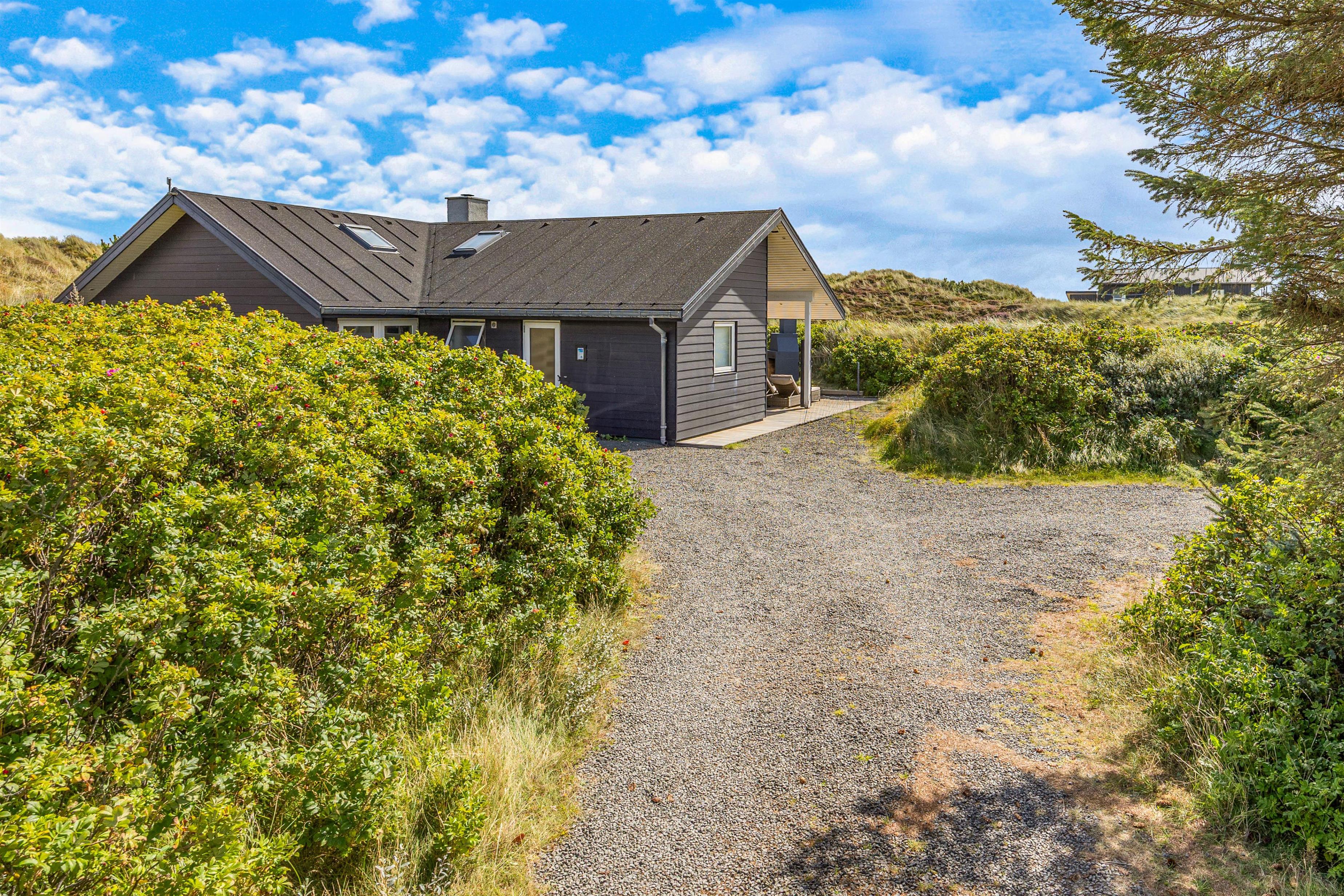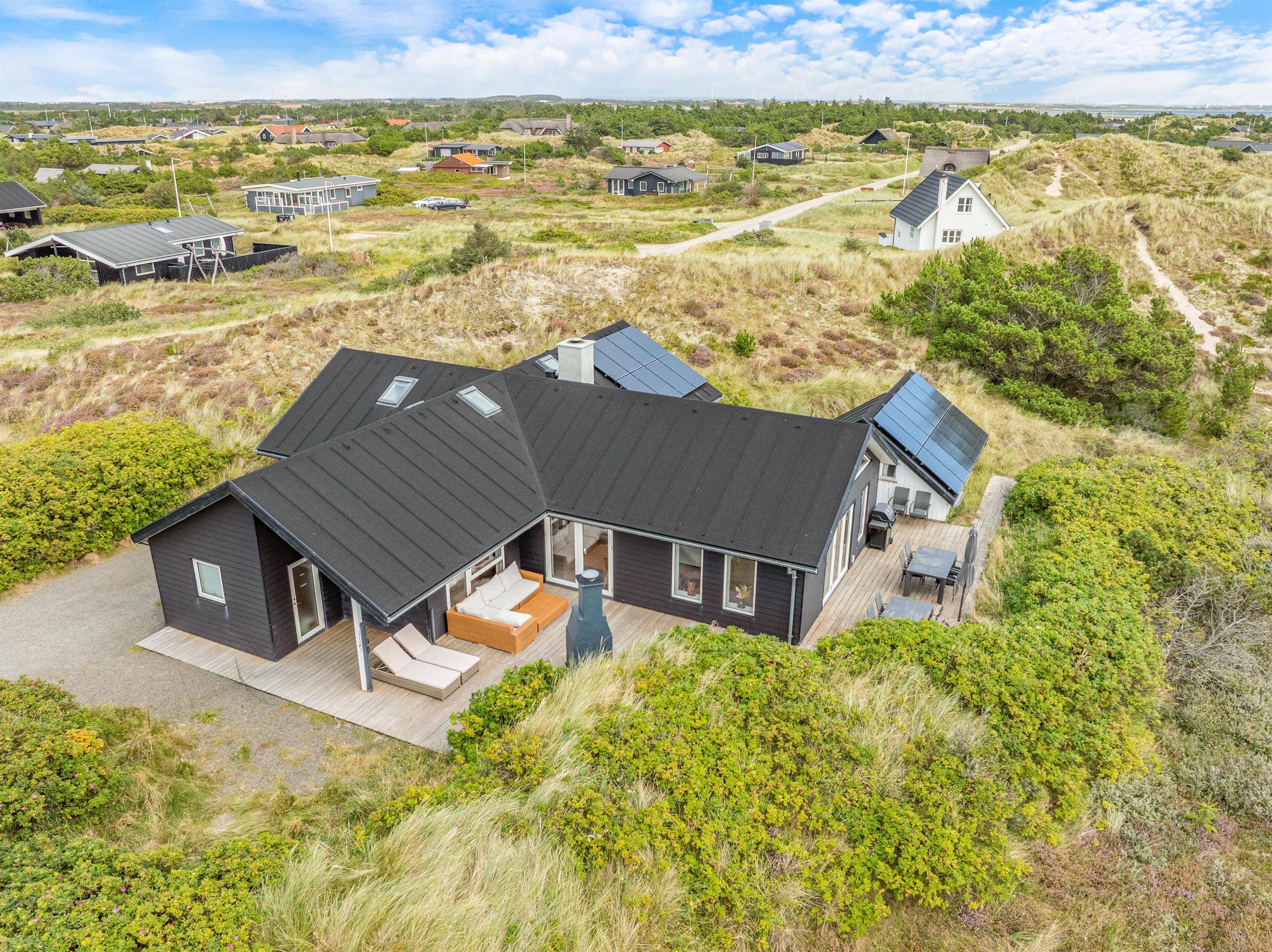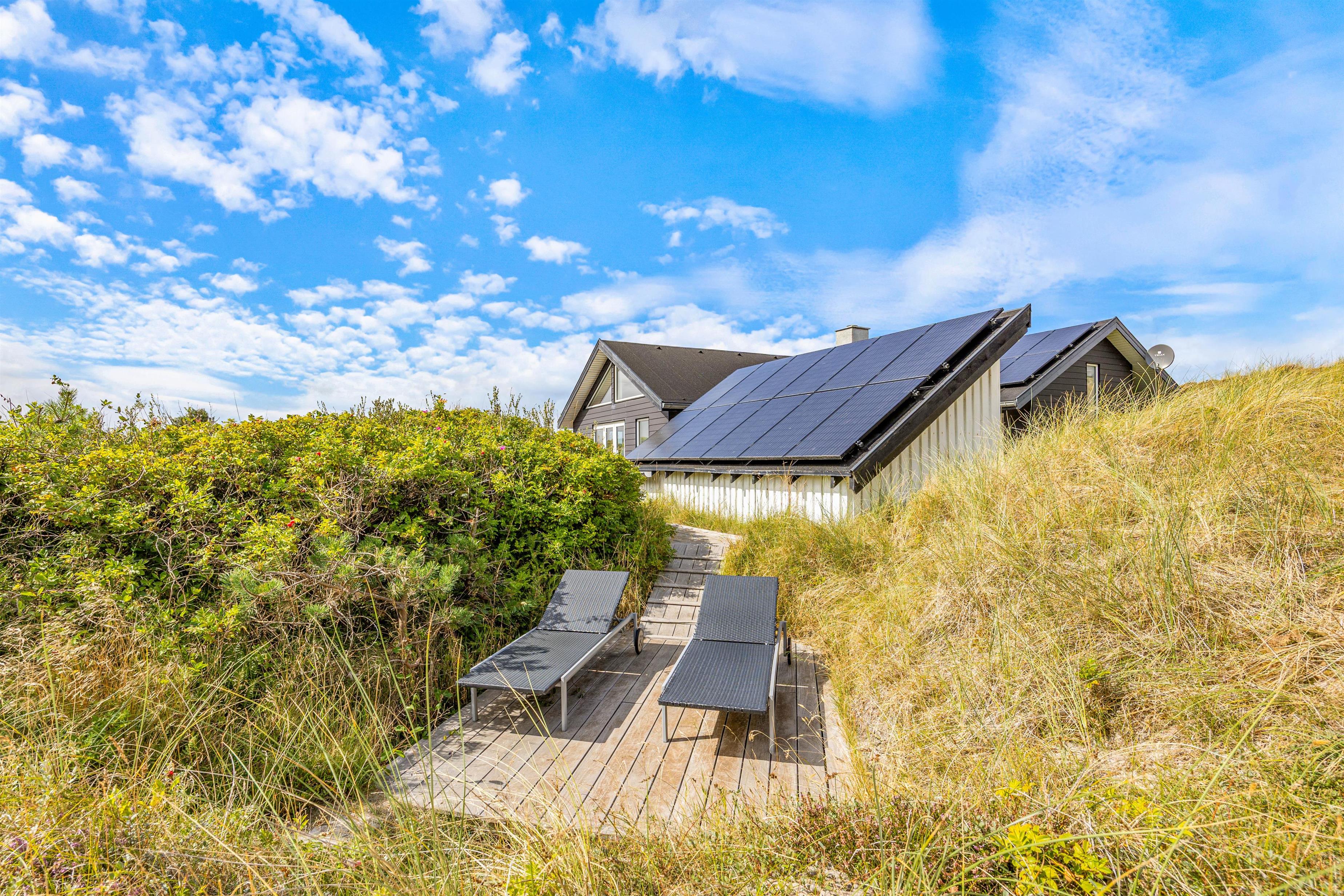 Midt i det smukke klitlandskab og ikke langt fra det brusende Vesterhav ligger dette skønne feriehus på Marehalmen 51. Den stilfulde indretning efterlader ikke meget til fantasien, og med både dampbad, massagestol, en lækker sauna, aktivitetsrum, hjemmebiograf og en fredfyldt og strandnær beliggenhed er I garanteret en fantastisk ferie her.