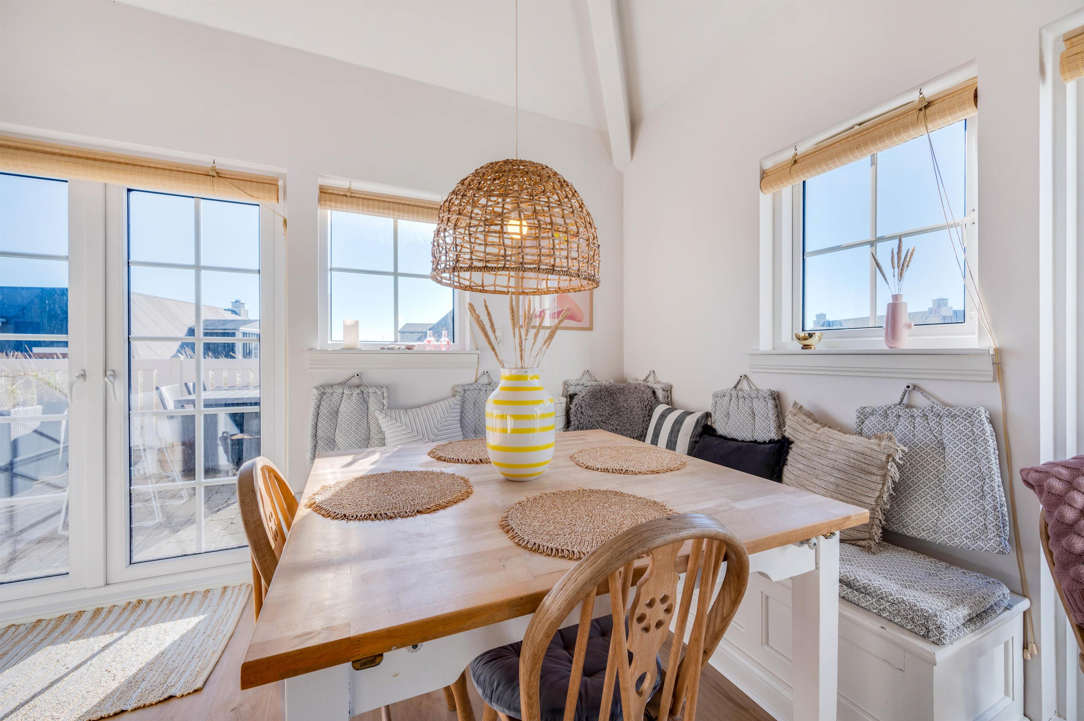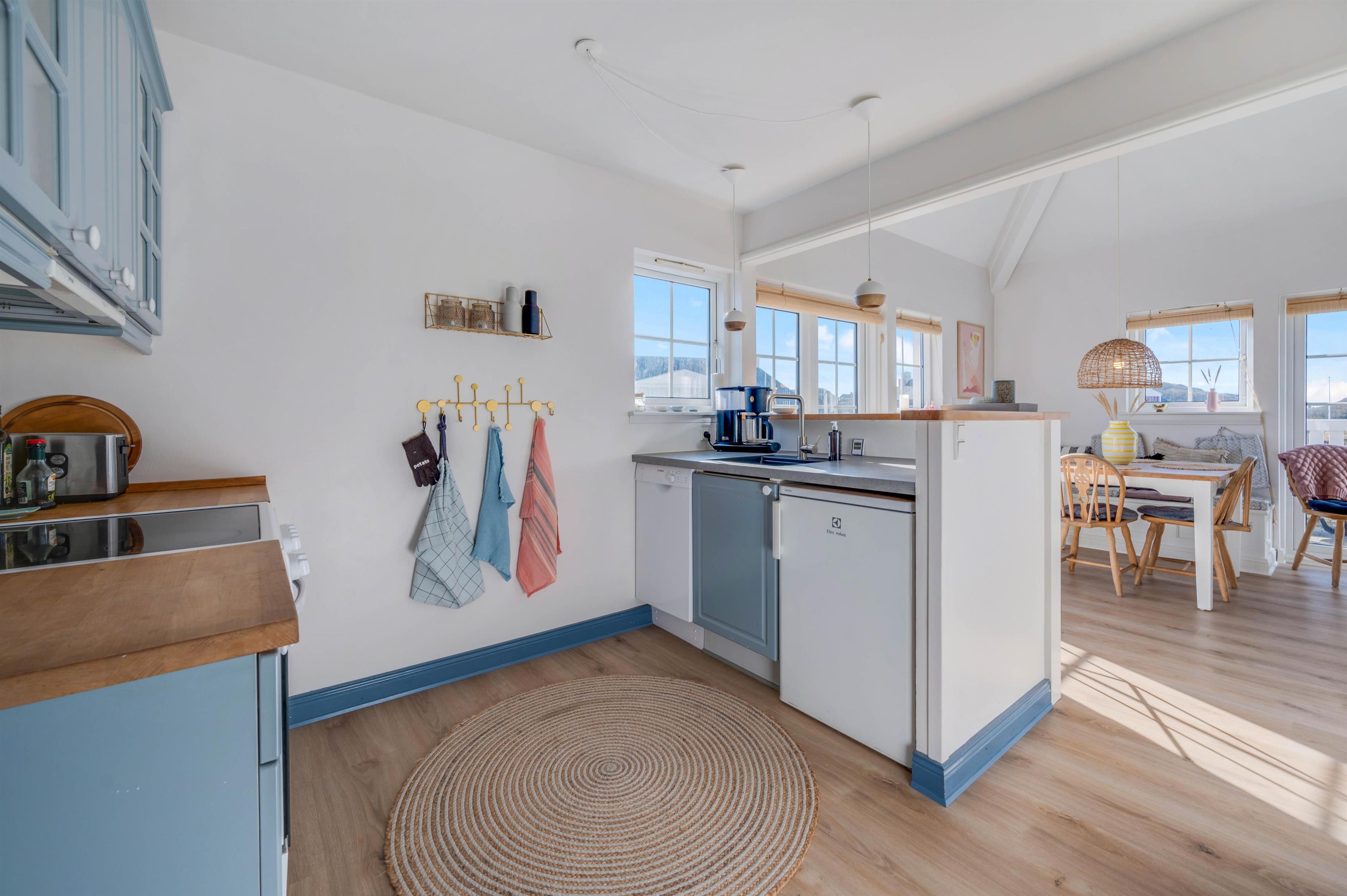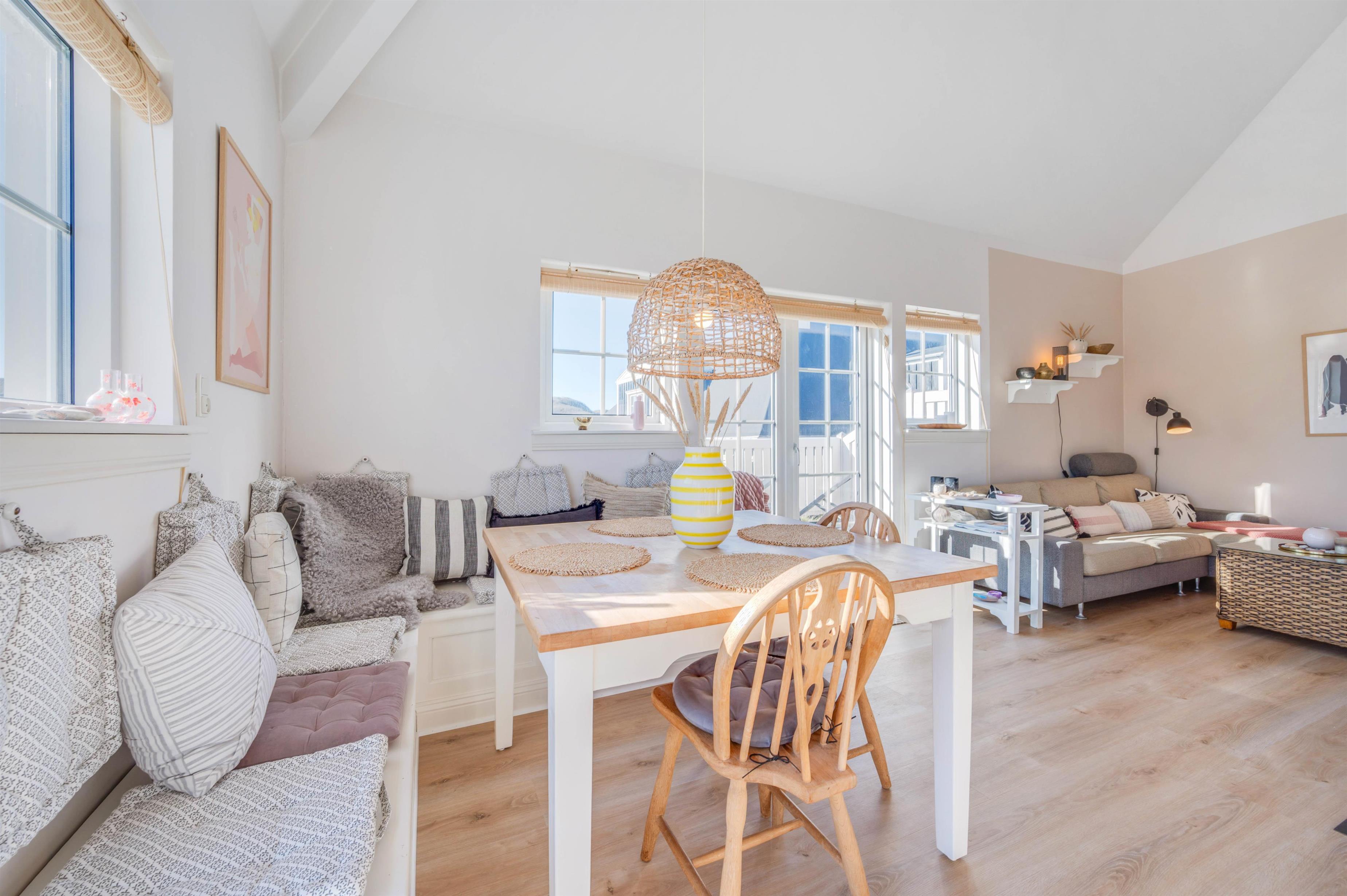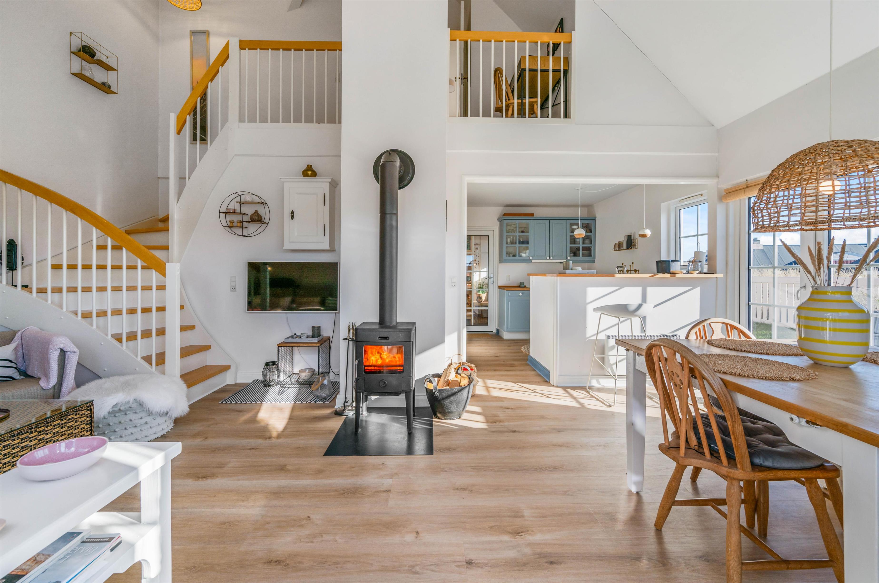 Opholdsstuen er helt klart ferielejlighedens hjerte, og I har her mulighed for at hygge jer med hinanden. På kolde dage kan I gøre jer det behageligt og hyggeligt i sofaen med en god bog og en kop varm kakao, imens I nyder den knitrende varme fra brændeovnen, og dermed komme lidt væk fra hverdagens stress og jag. Takket være hurtigt internet, behøver I heller ikke at give afkald på jeres yndlingsserie, da I har mulighed for at streame dette via Chromecast direkte på fjernsynet.