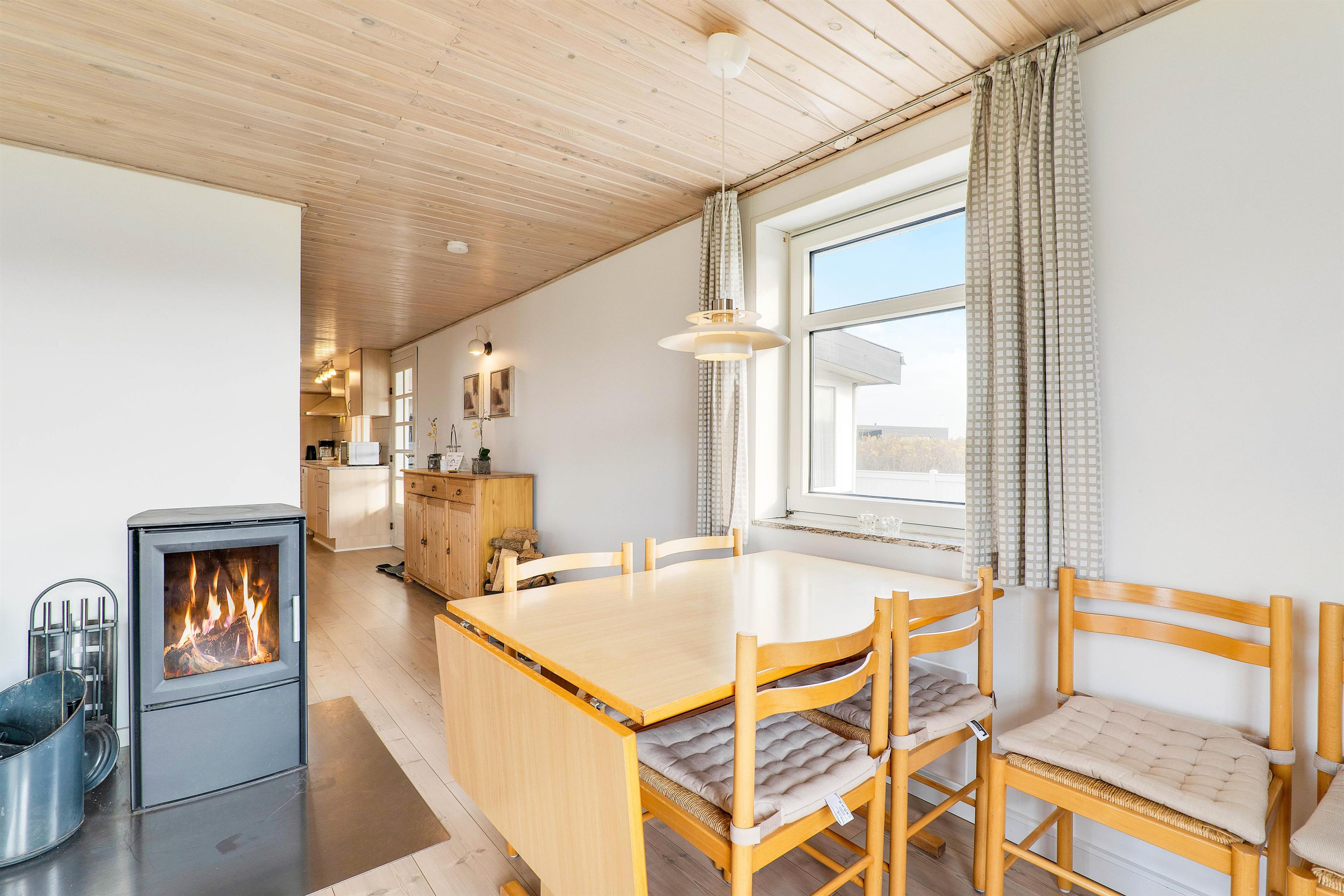 Den gode opholdsstue er det naturlige centrum i huset. Her kan I samles foran tv’et og hygge med en film, eller I kan sætte jer omkring spisebordet og nyde et dejligt måltid mad sammen eller spille et sjovt spil. I baggrunden kan I lytte til den knitrende brændeovn, der virkelig sørger for den helt rette feriestemning.