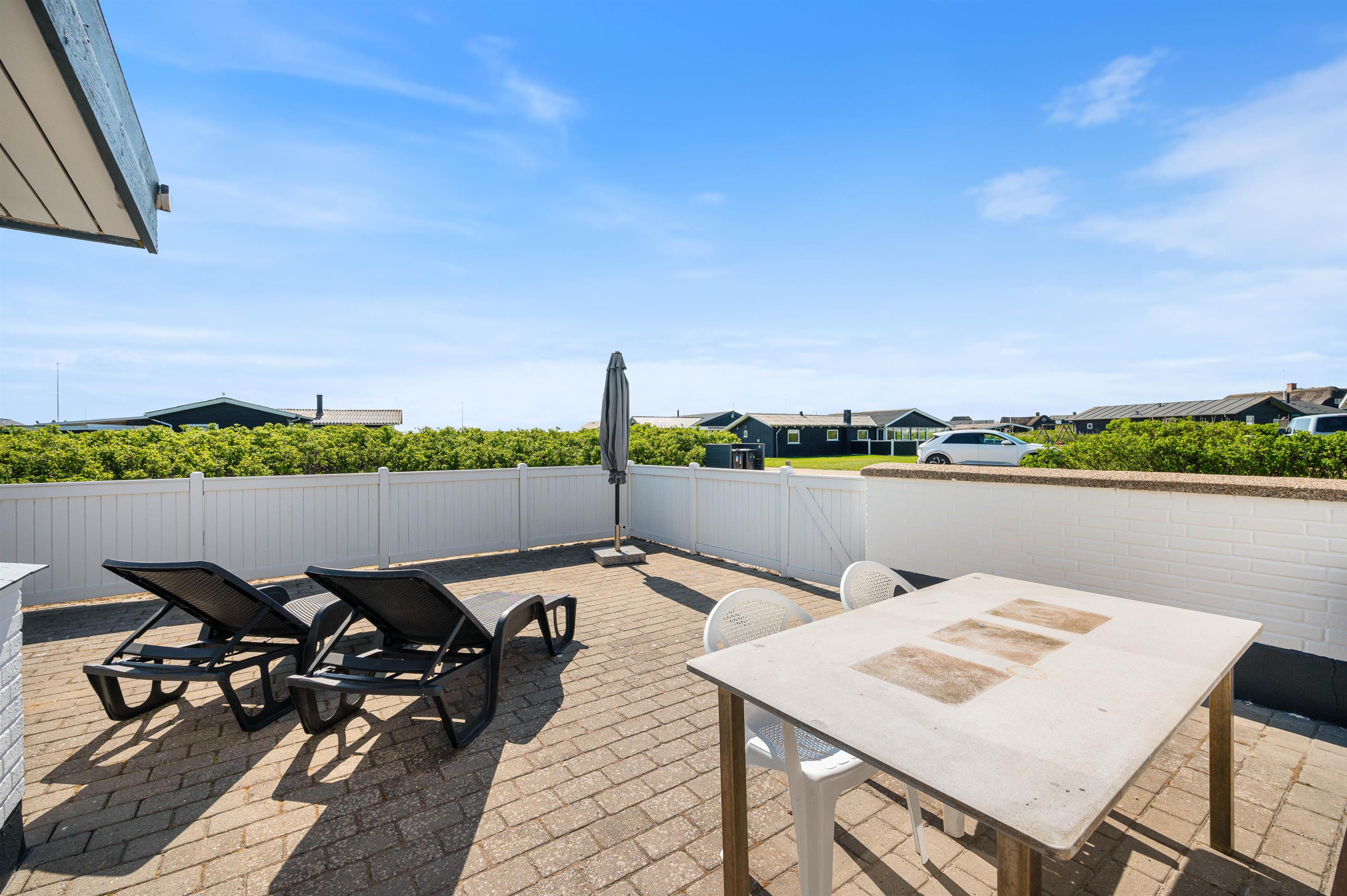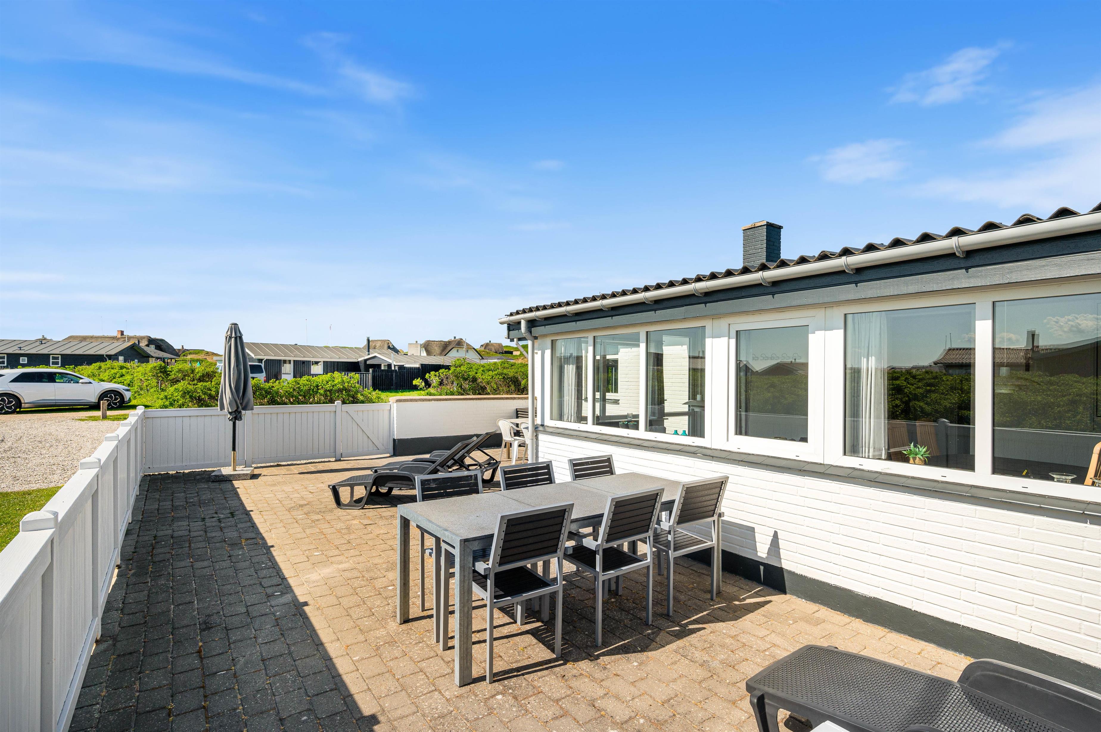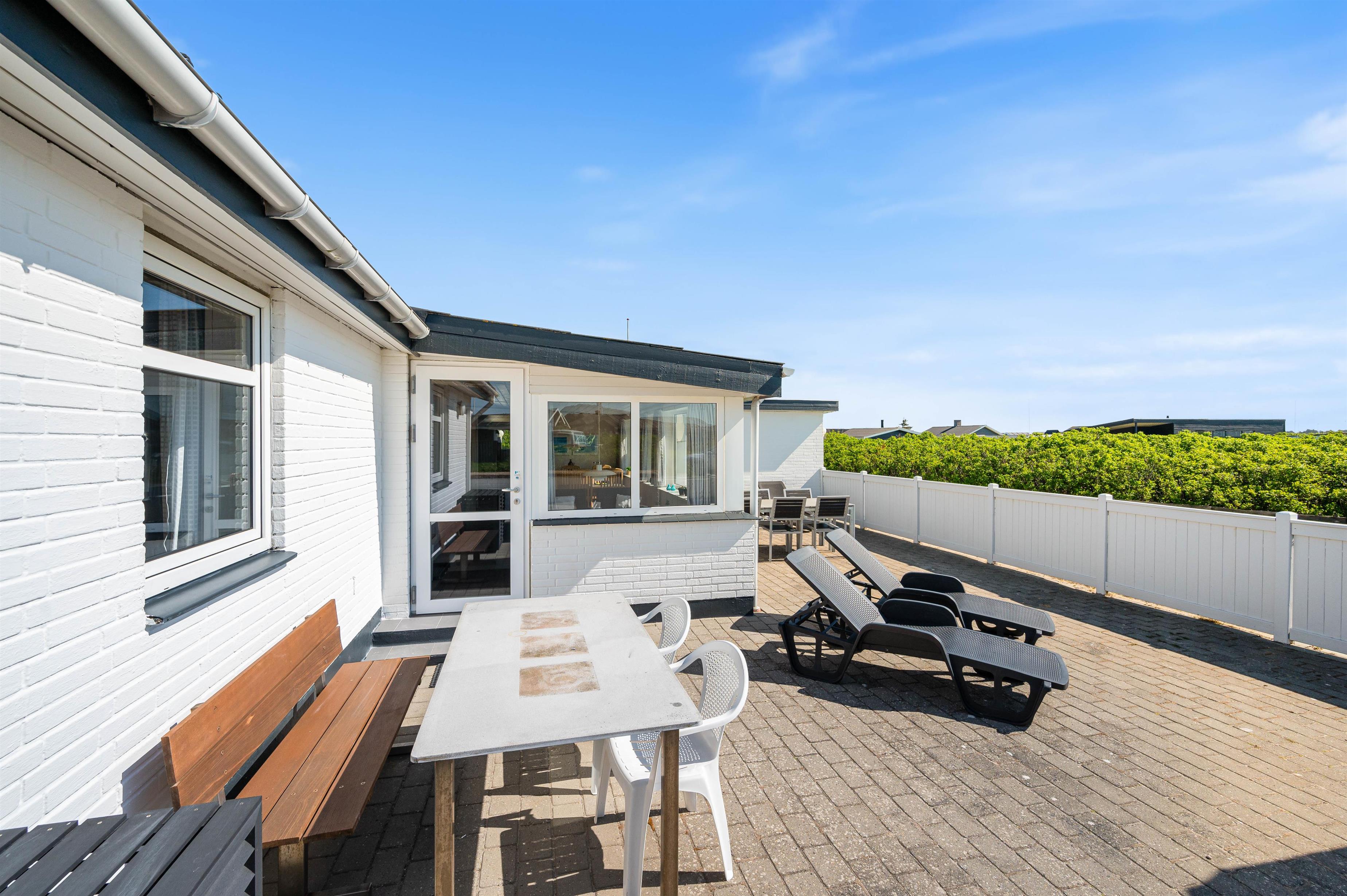 Uden for udestuen er der en stor, syd-østvendt terrasse. Liggestole og havemøbler er der selvfølgelig sørget for, så I kan nyde jeres ophold til fulde. Her er også grill til rådighed, så I kan tilberede jeres måltider over de glødende kul. Terrassen er aflukket, hvilket gør den ideel til børnefamilier og hundeejere, så de små ikke forvilder sig ud på egen hånd.