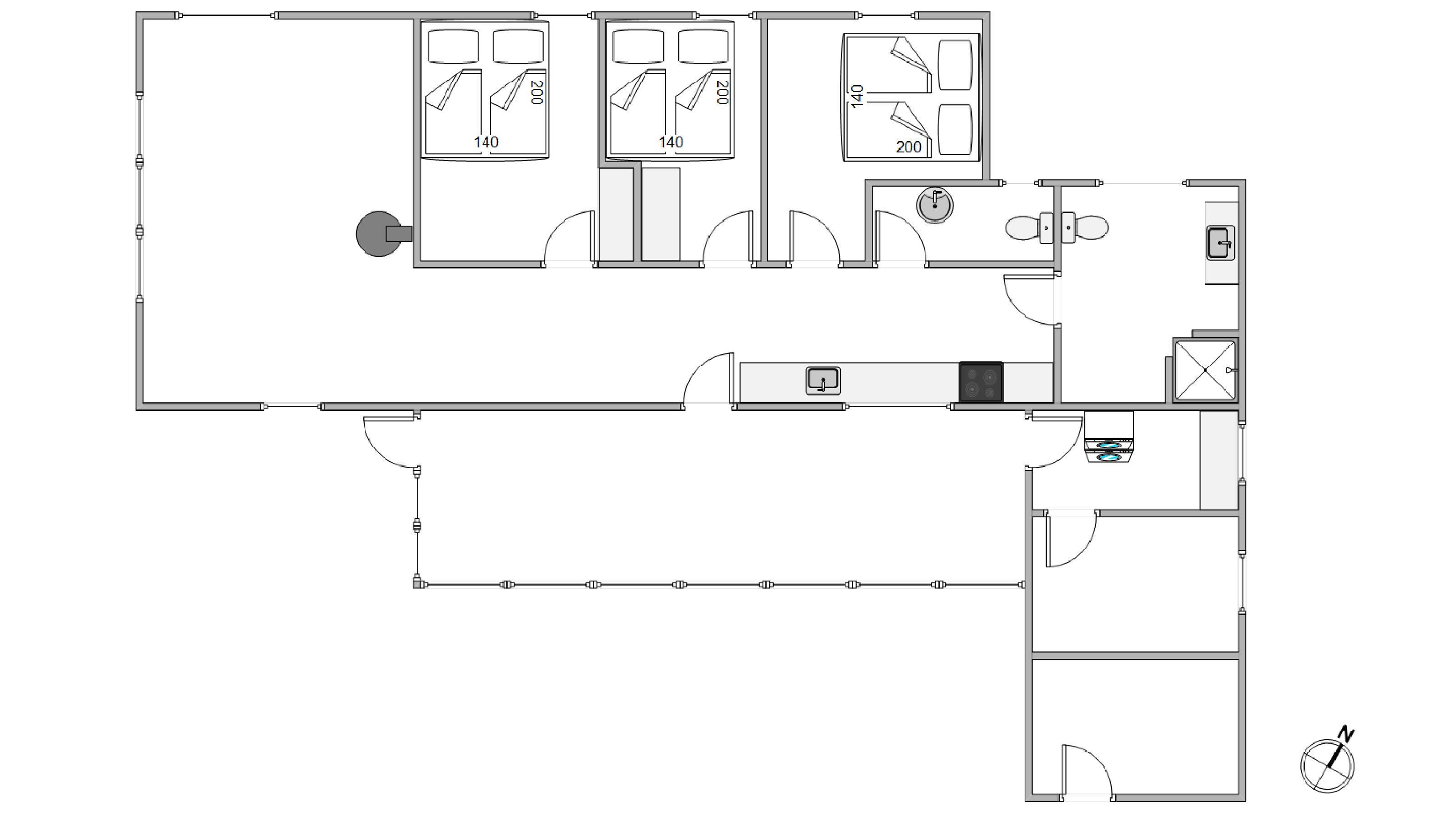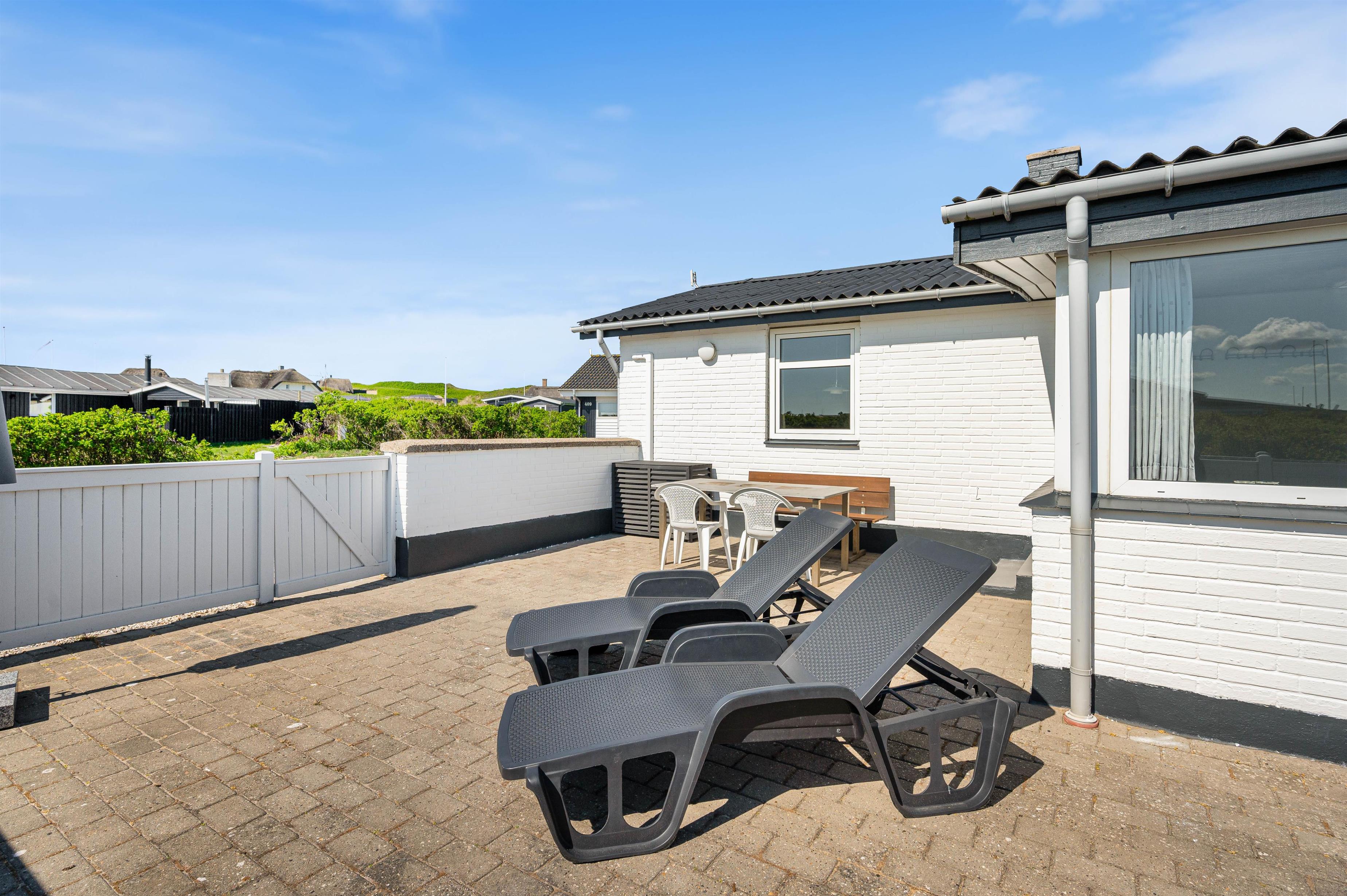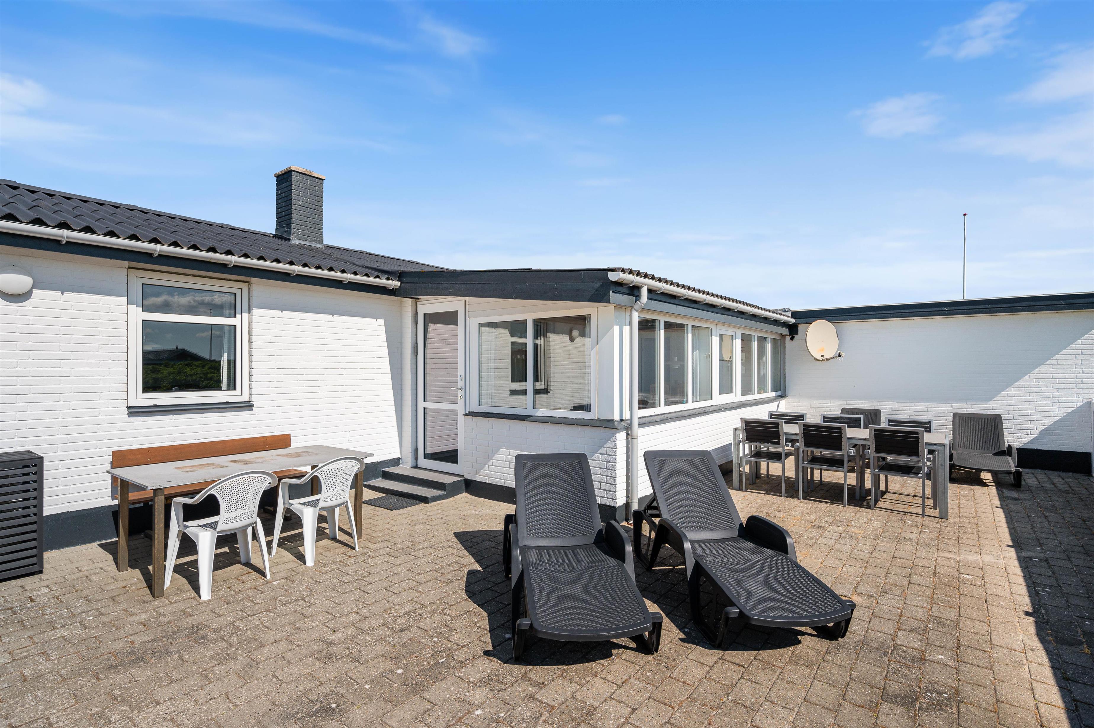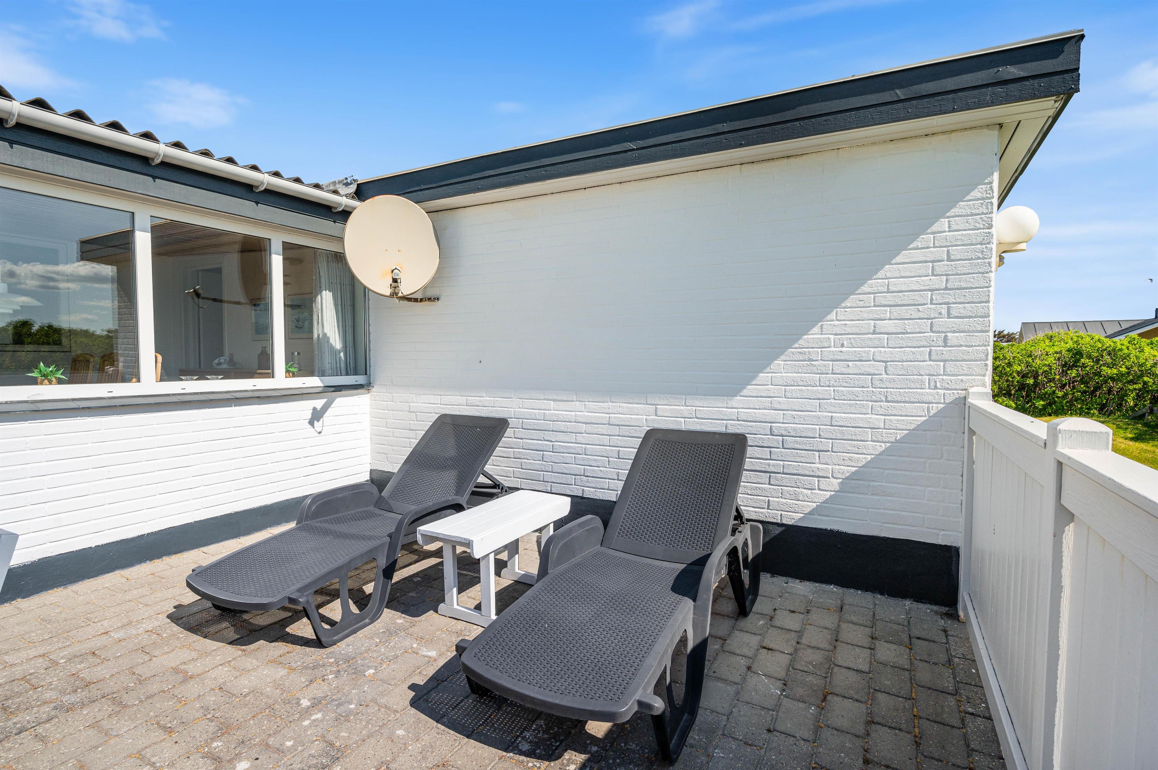 Uden for udestuen er der en stor, syd-østvendt terrasse. Liggestole og havemøbler er der selvfølgelig sørget for, så I kan nyde jeres ophold til fulde. Her er også grill til rådighed, så I kan tilberede jeres måltider over de glødende kul. Terrassen er aflukket, hvilket gør den ideel til børnefamilier og hundeejere, så de små ikke forvilder sig ud på egen hånd.
